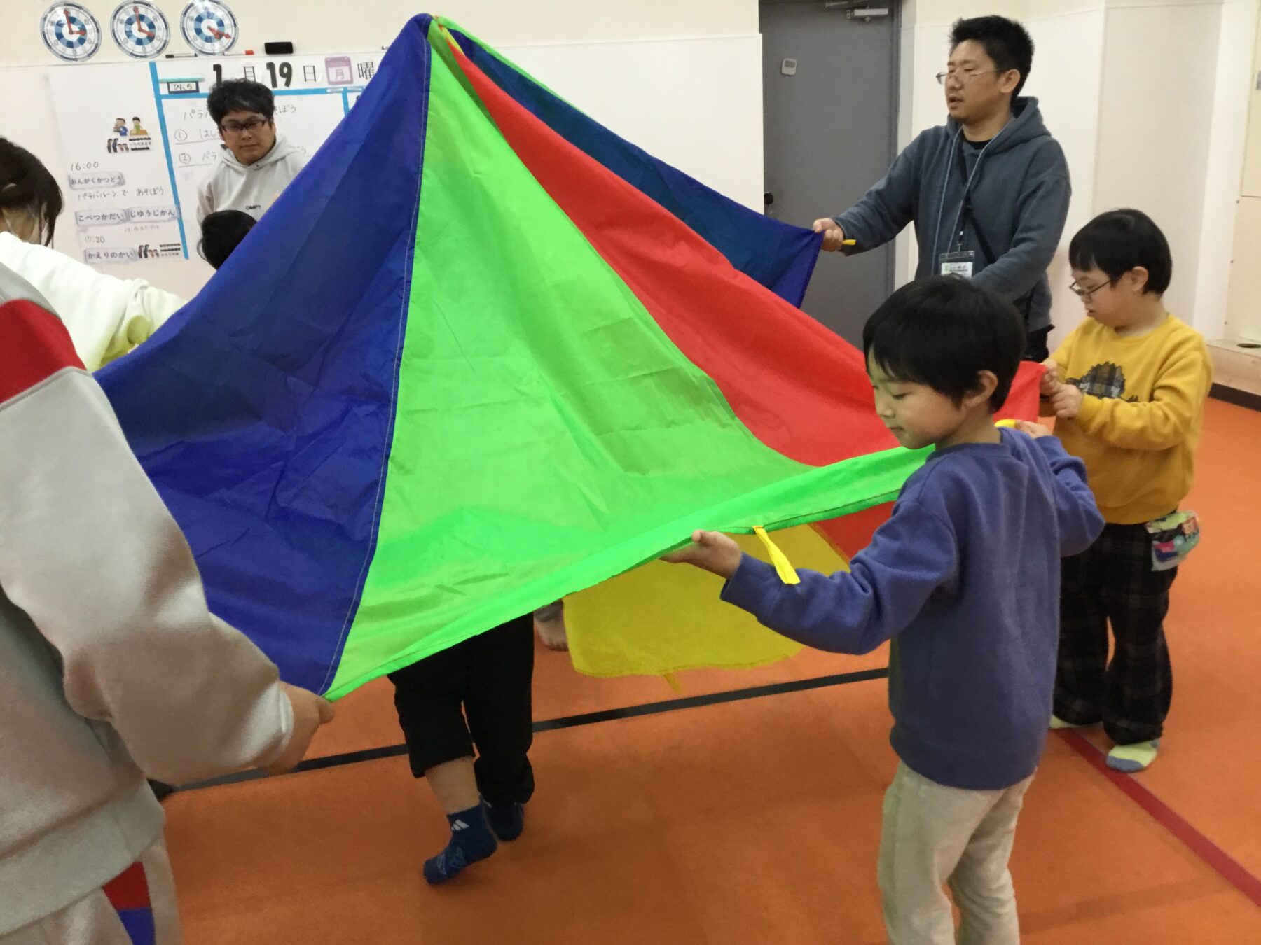 本日は、運動活動「パラバルーンで遊ぼう!」を行いました(^^♪