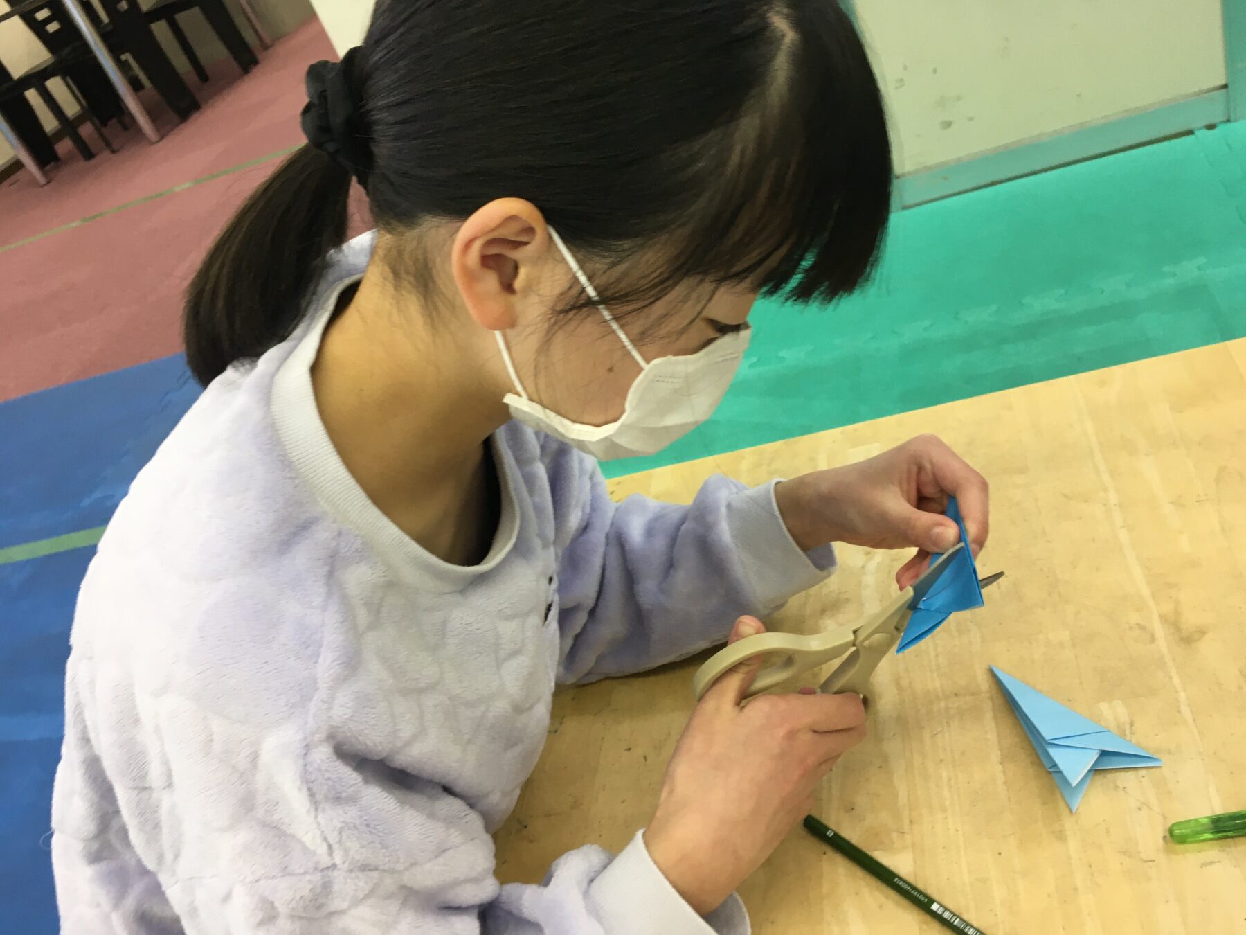 折り紙でハサミに自由に切り込みを入れていきましょう。