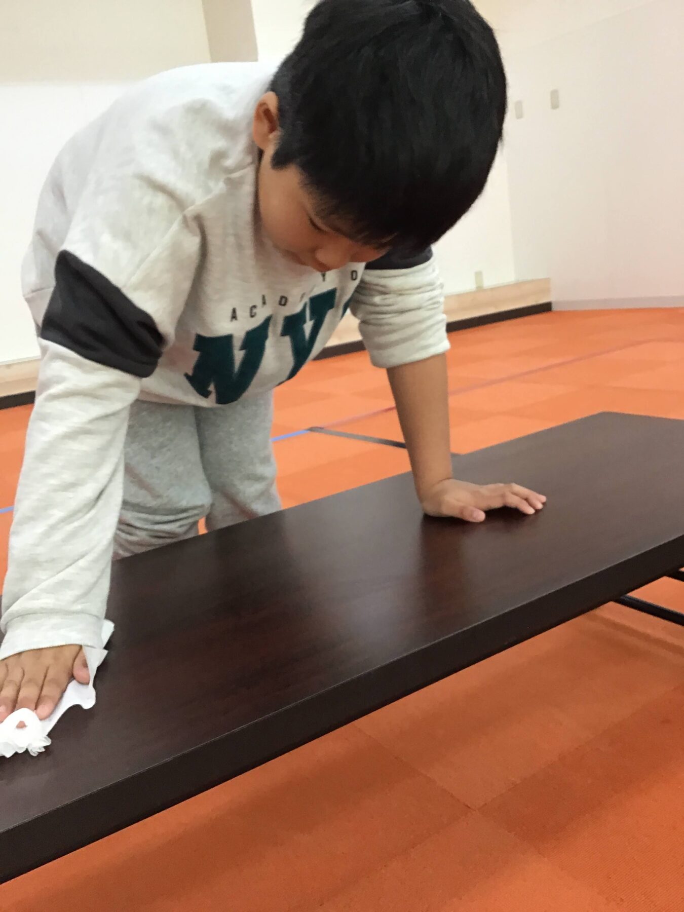 おやつの前にテーブル拭きのお当番をしてくれました(^^♪ ありがとう