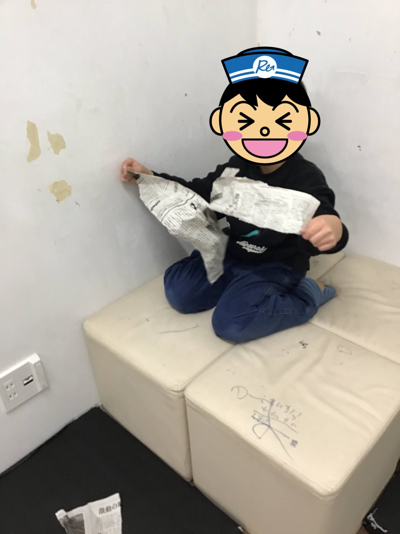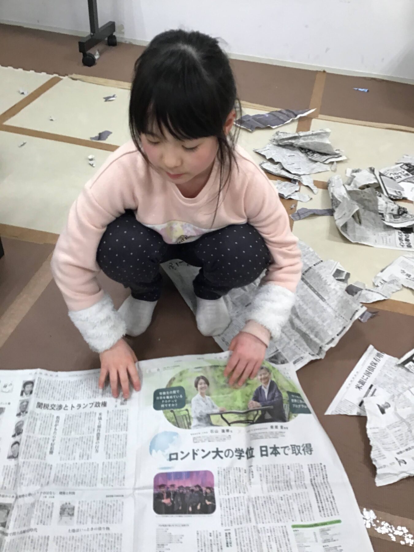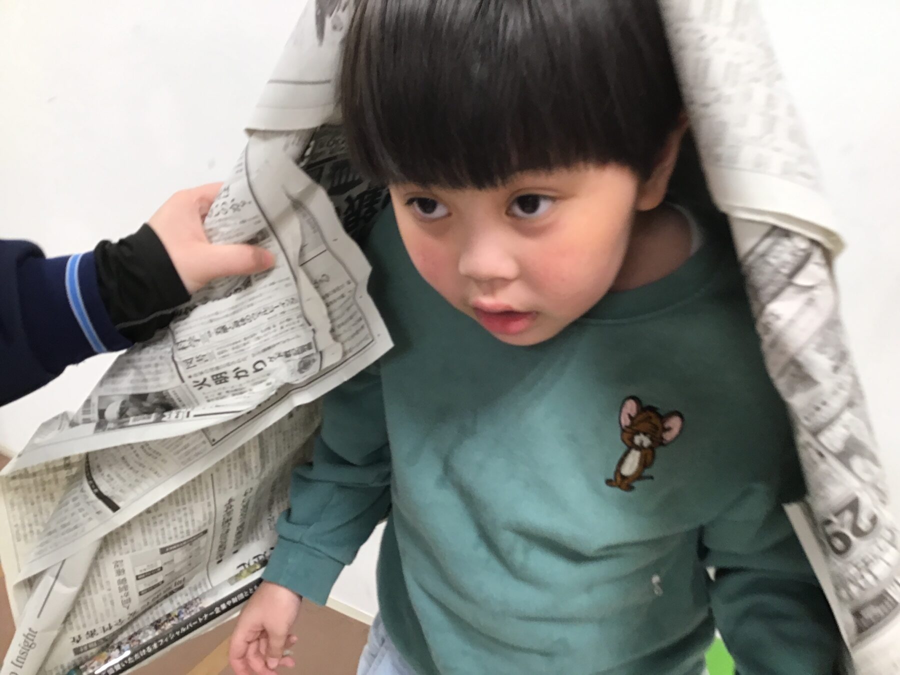 新聞紙を破ってみたり、丸めてみたり、折ってみたりと各々すきなかたちで新聞紙で遊ぶことを楽しまれていました😄