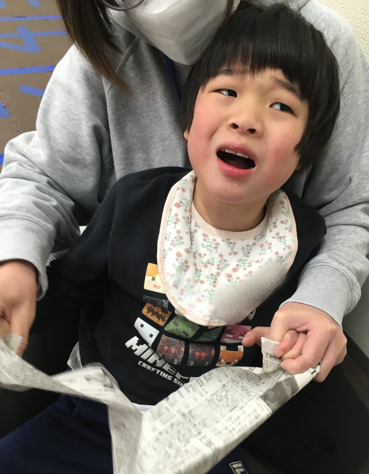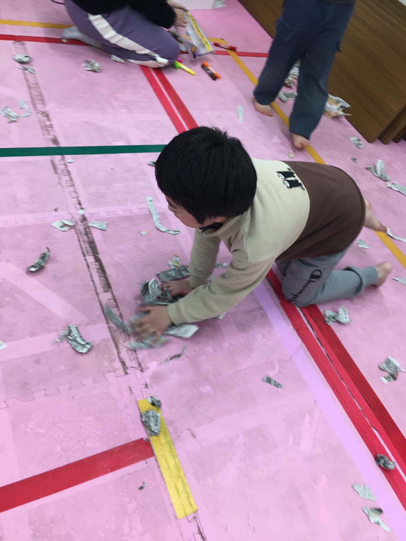 まずは新聞紙をちぎって……。