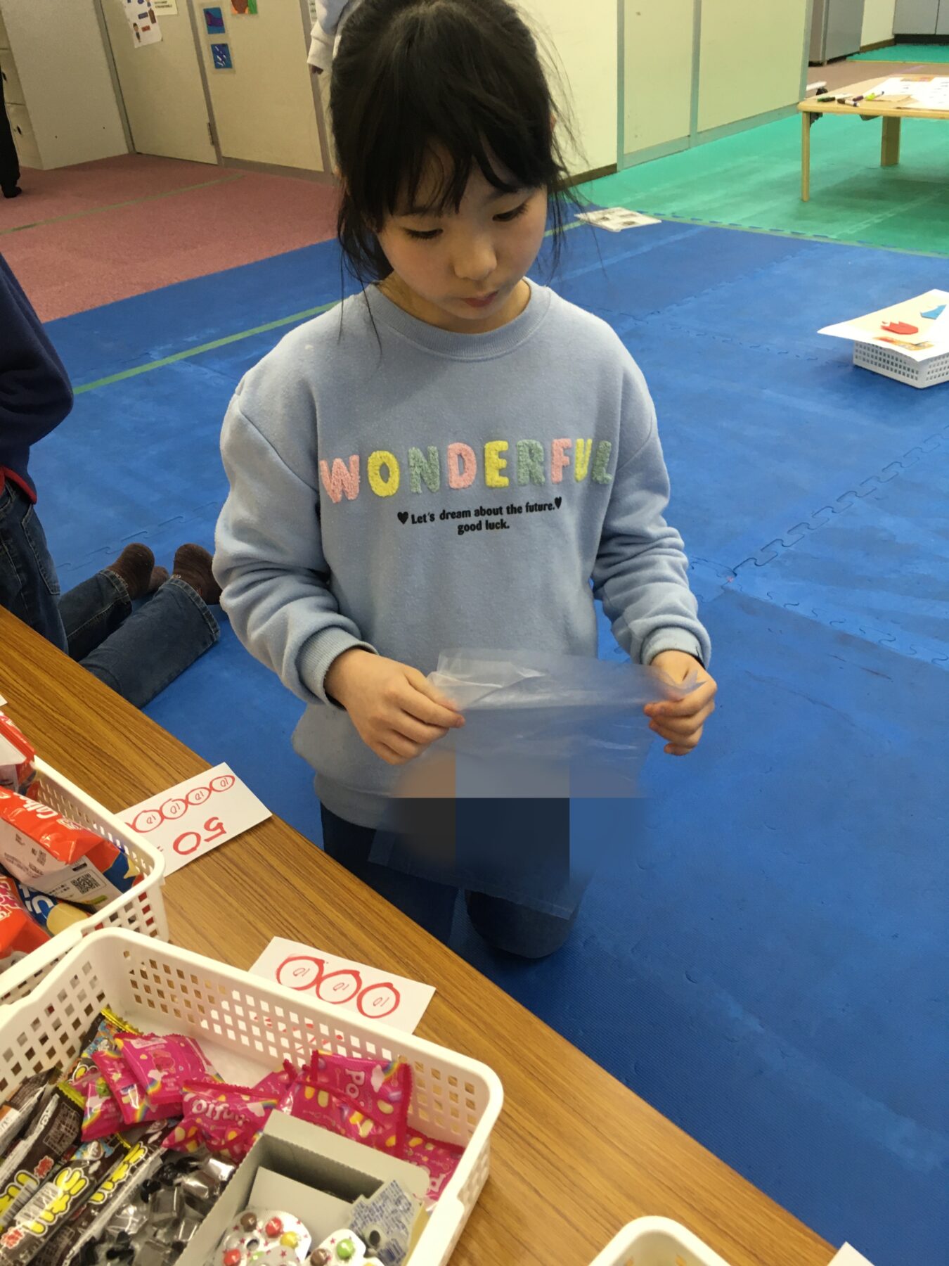 10円10枚、100円で好きなお菓子やジュースを選んでお買い物をしました。