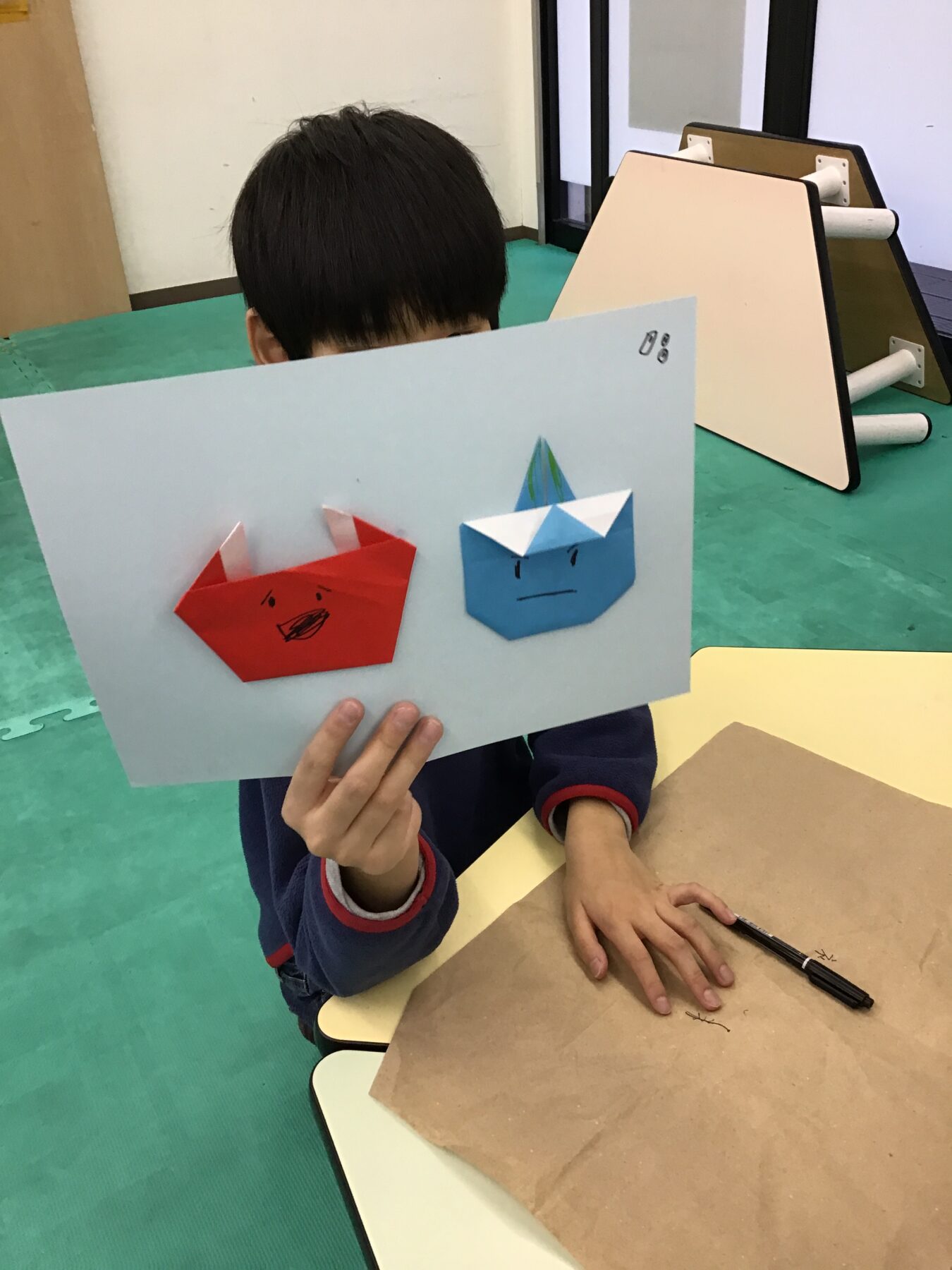 リッキーガーデン仙台西多賀(放課後等デイサービス)🍫👹駄菓子屋リッキーと折り紙でオニを折りました👹🍫