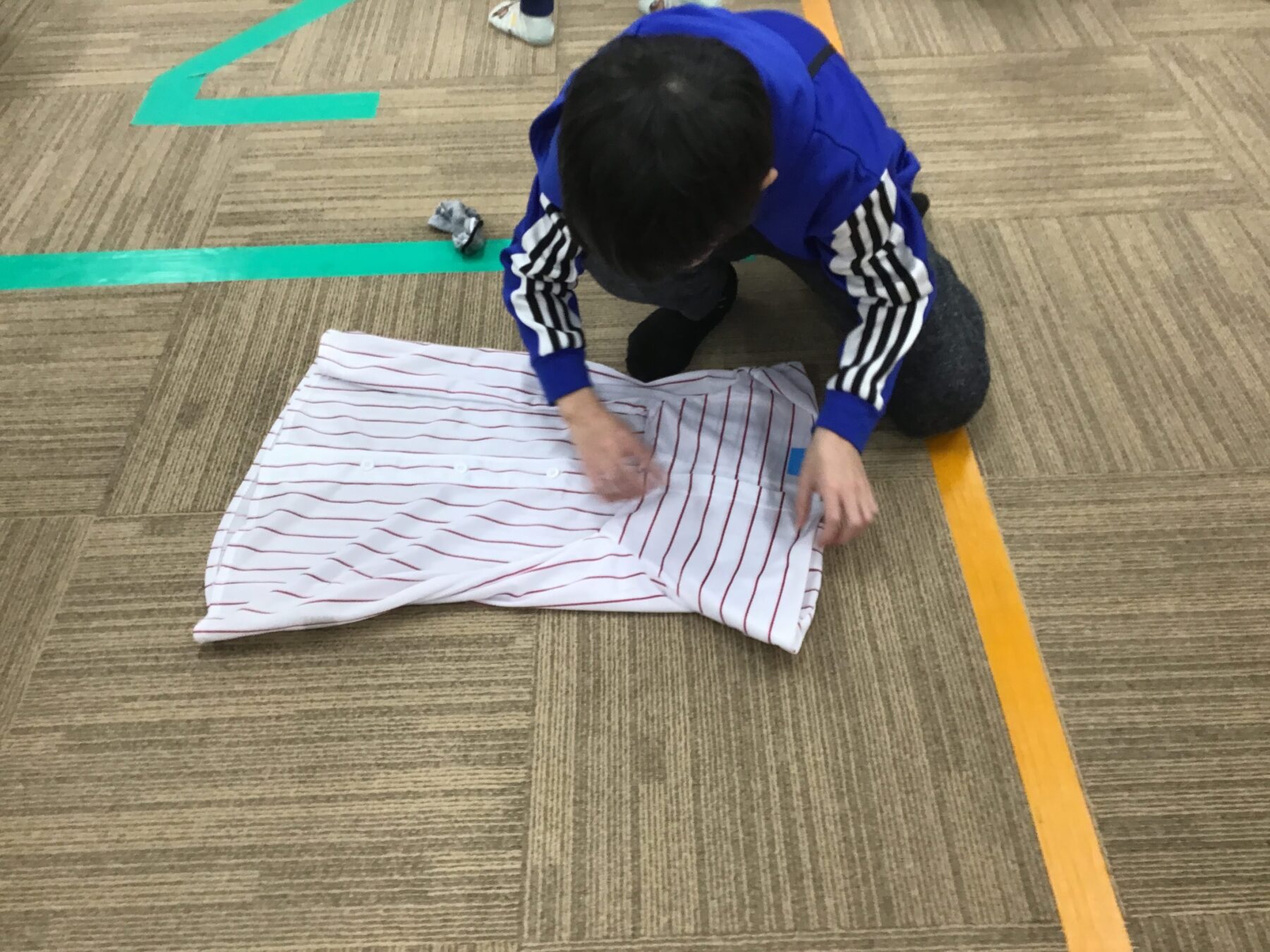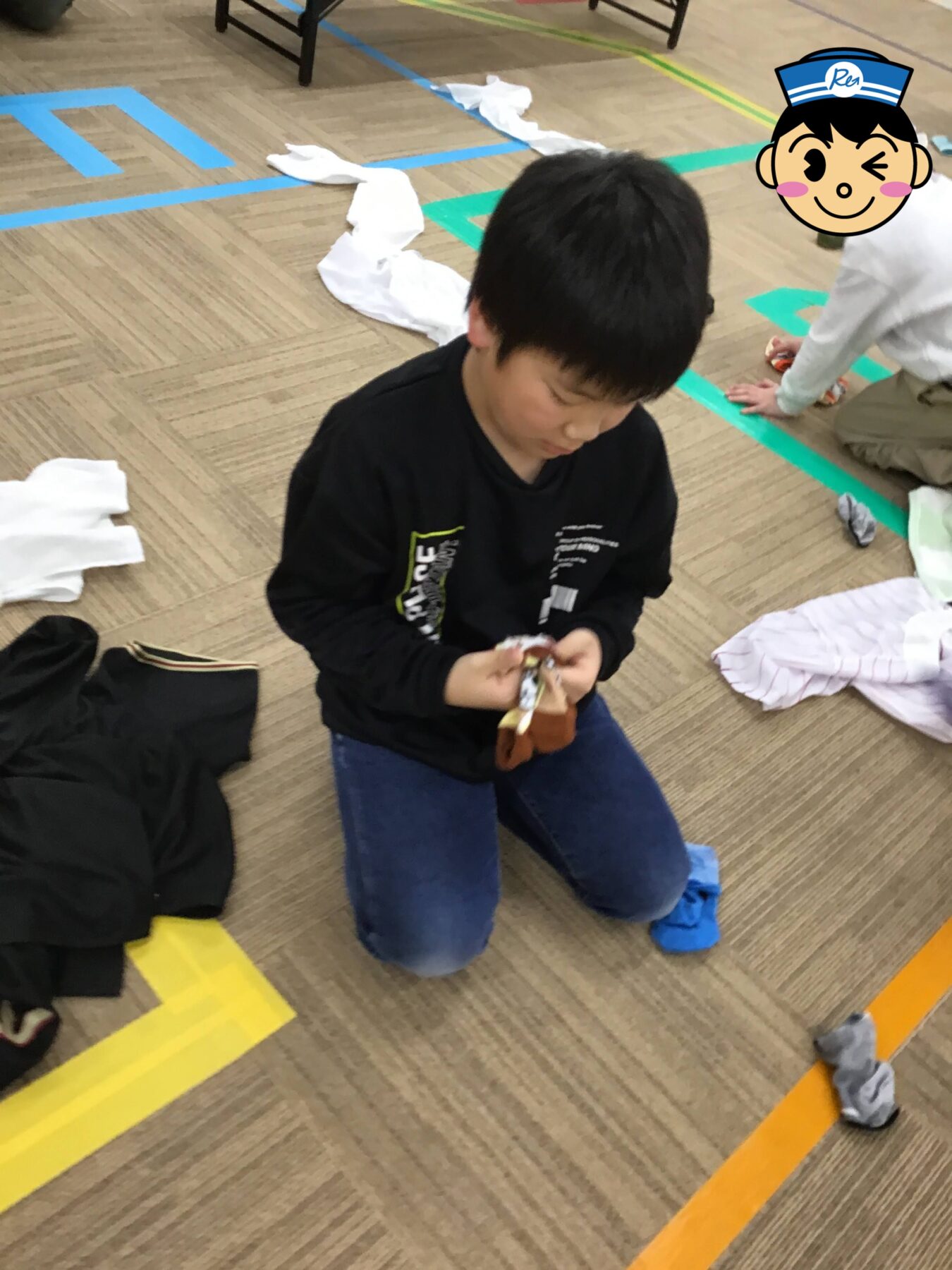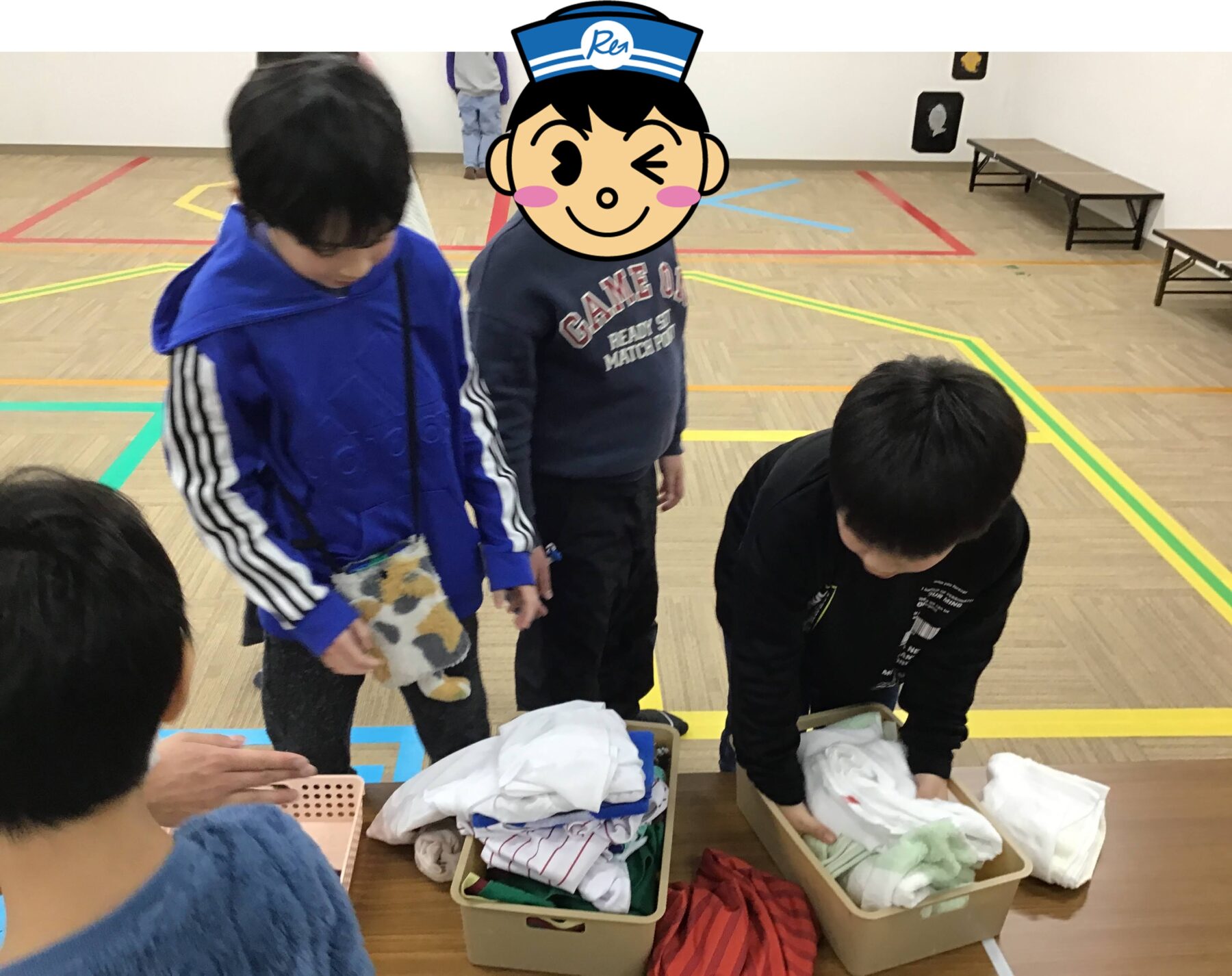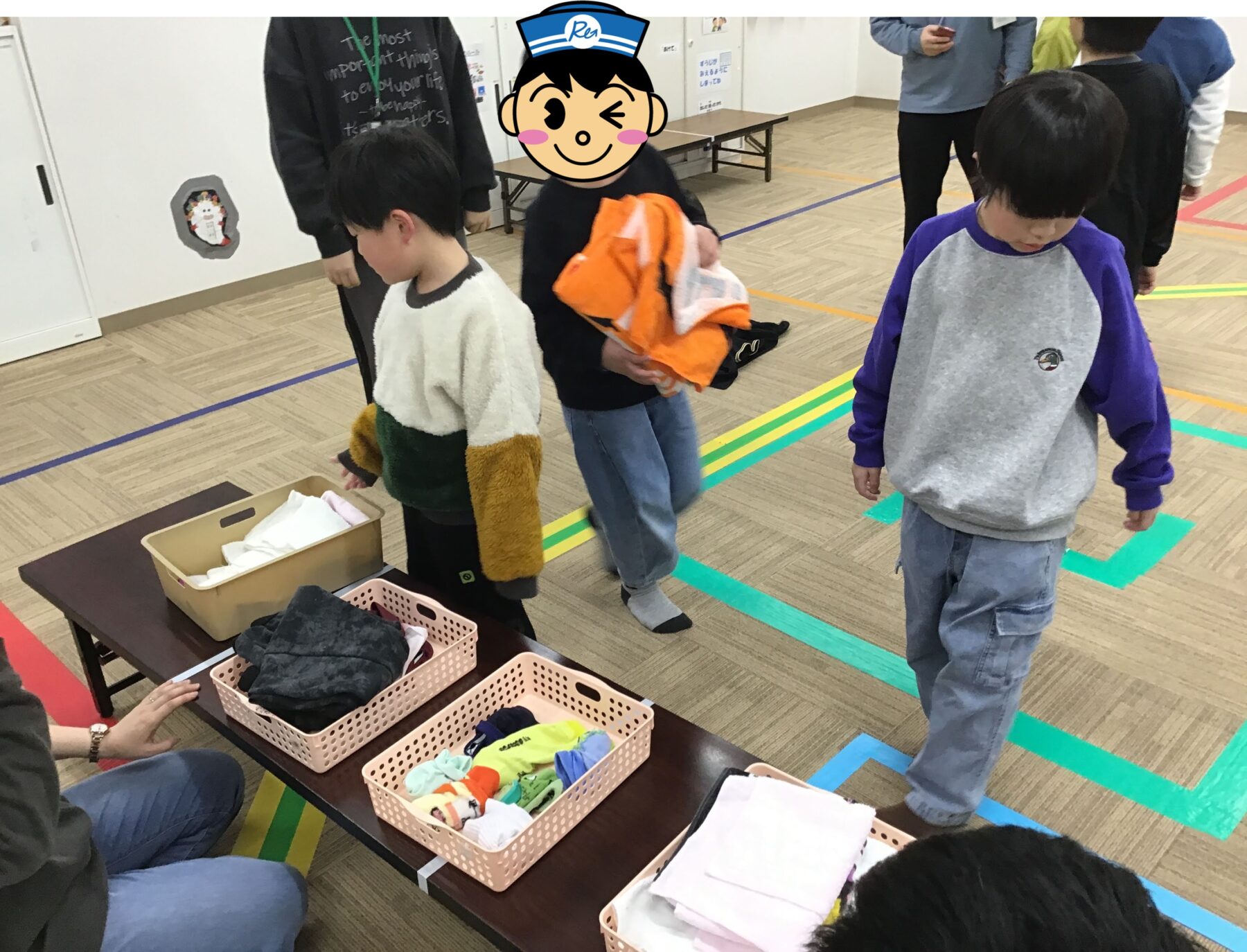 今回はチームに分かれてフロア内の洗濯物を畳んで片付けてみよう!