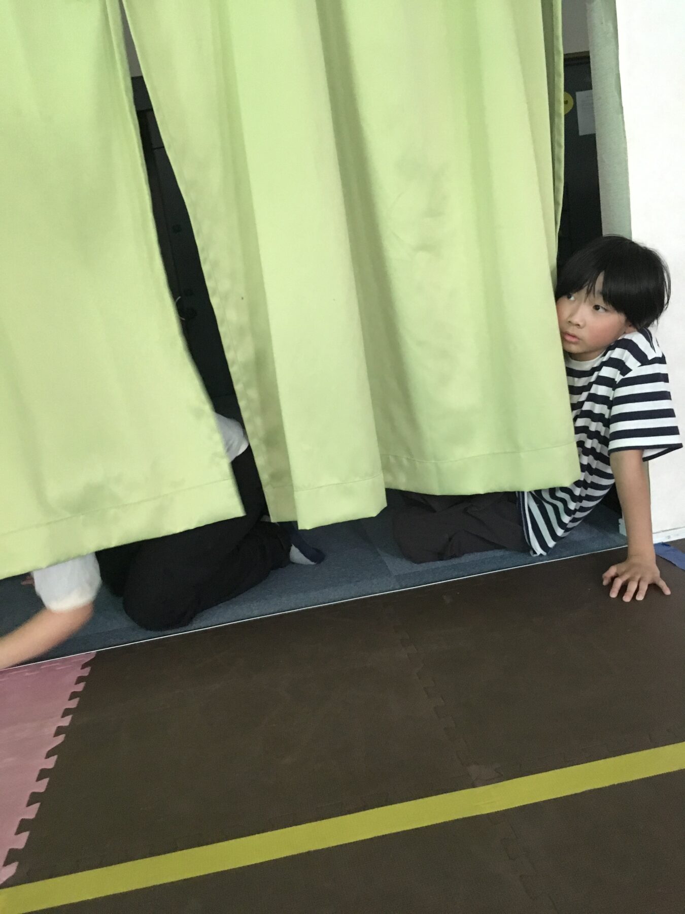 鬼が怖くなった人はカーテンに隠れていてもいいよ。