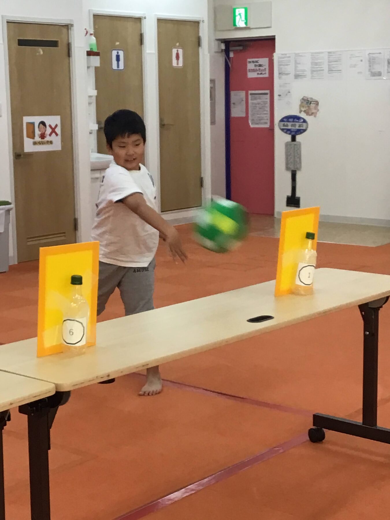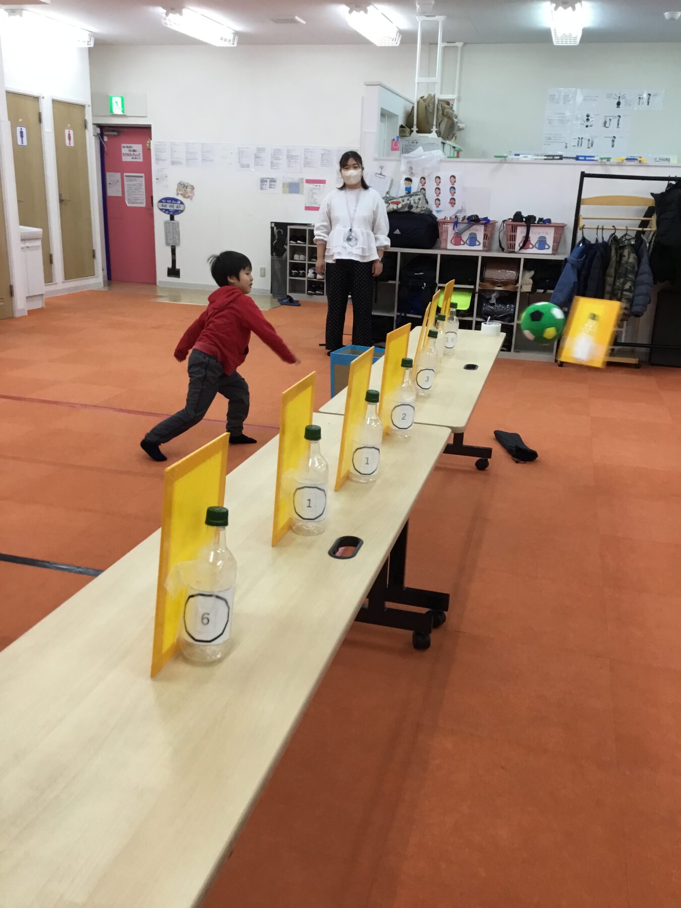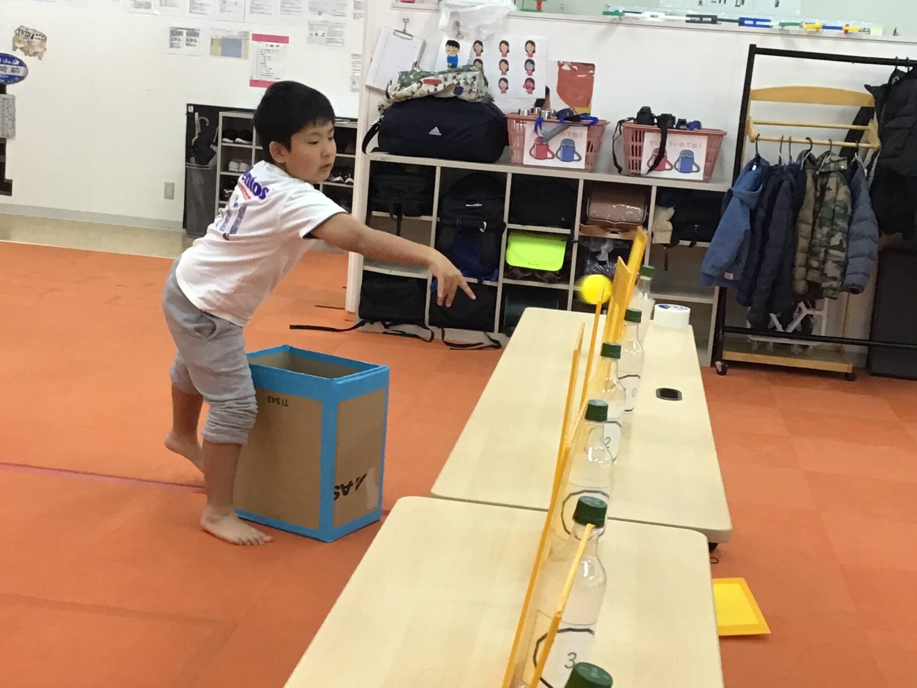 運動活動「ペットボトルで的当てをしよう」
