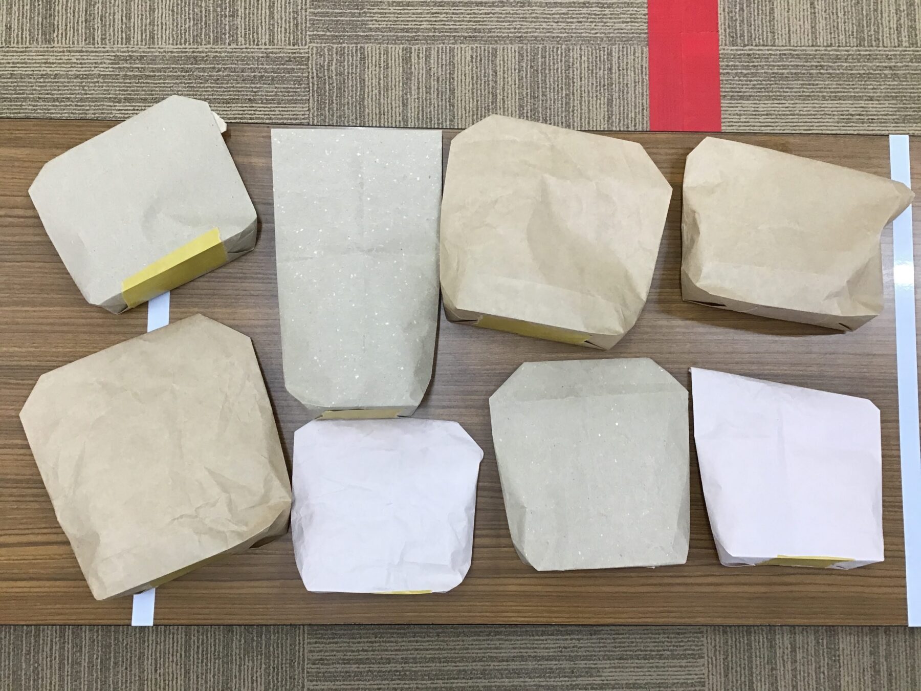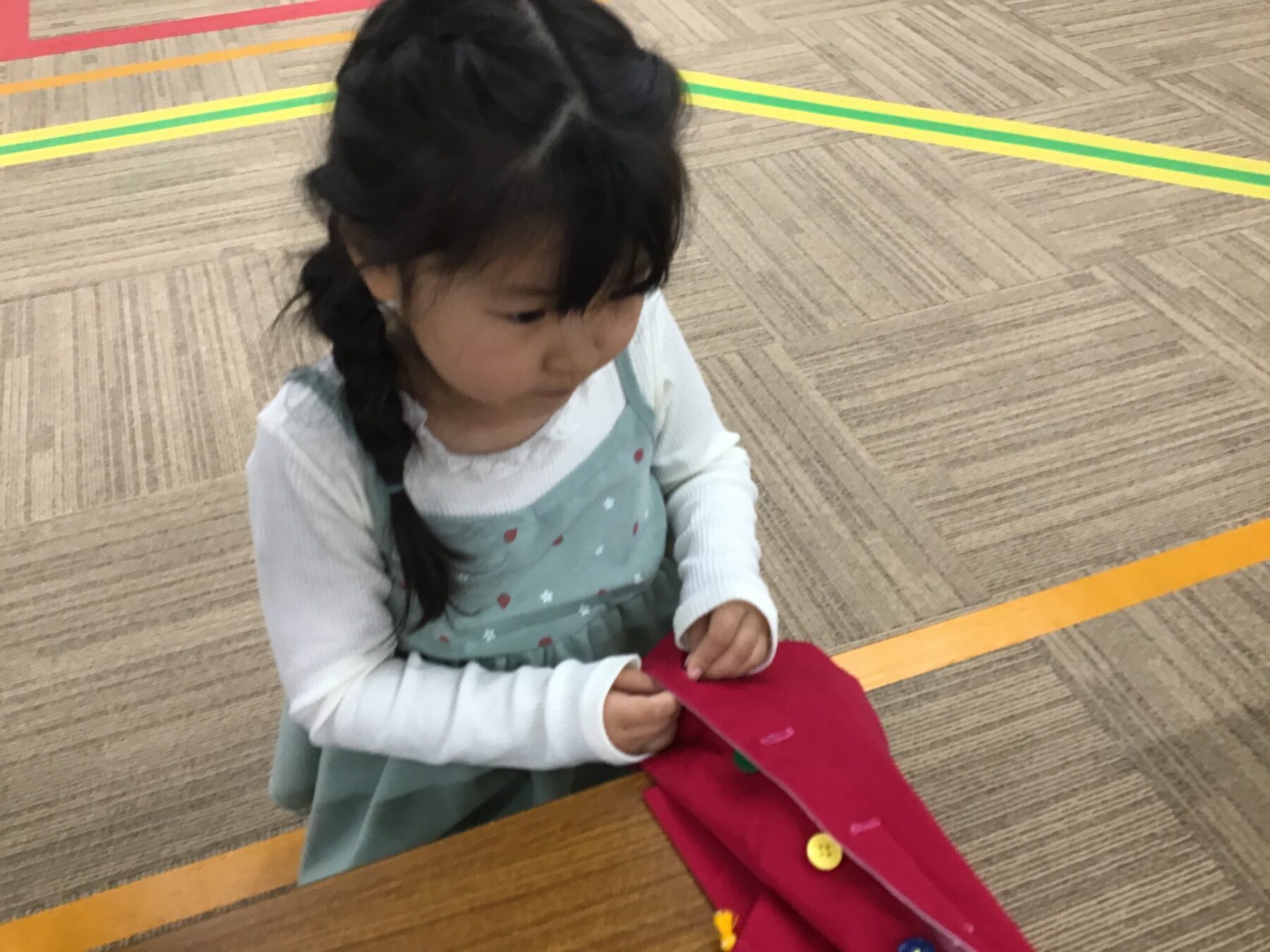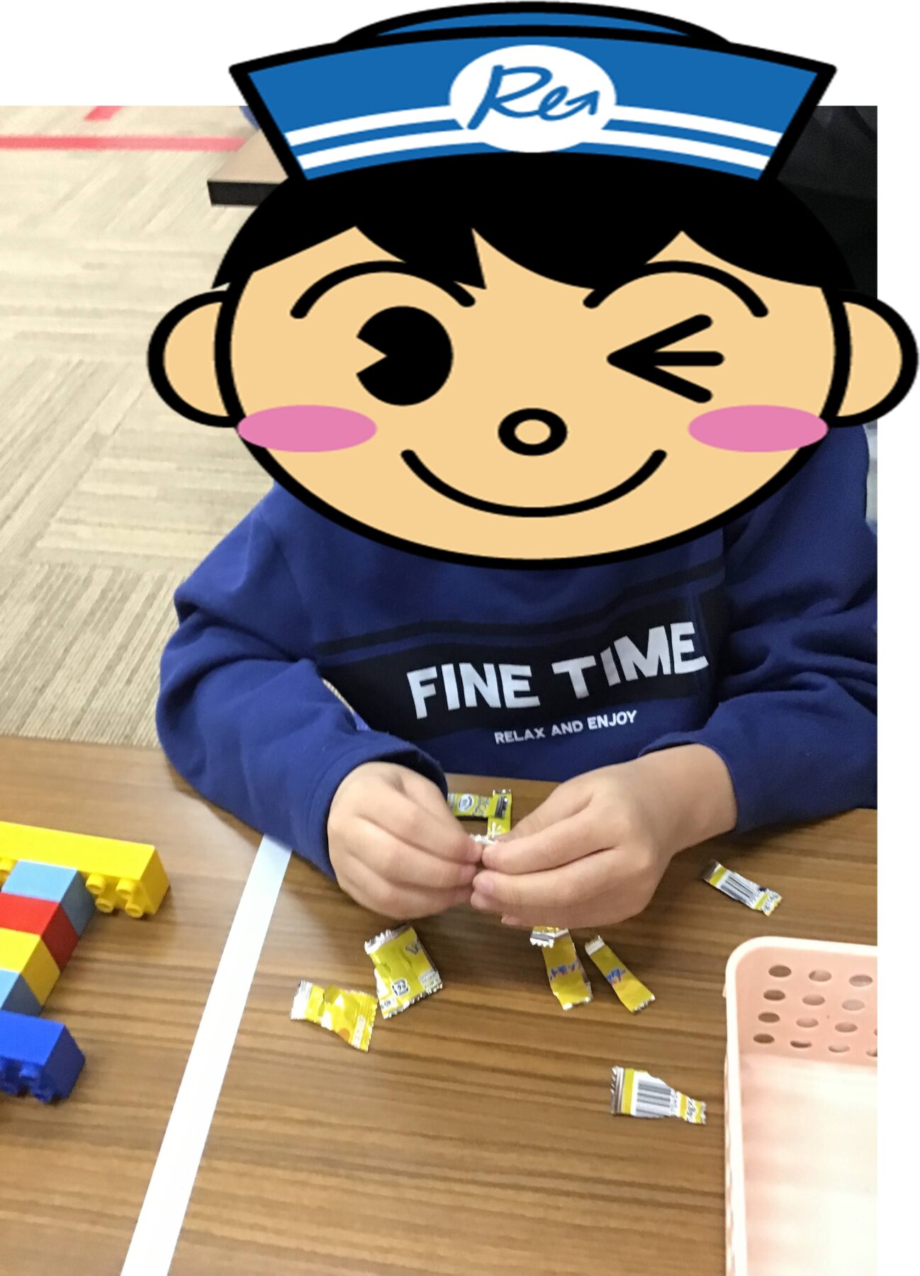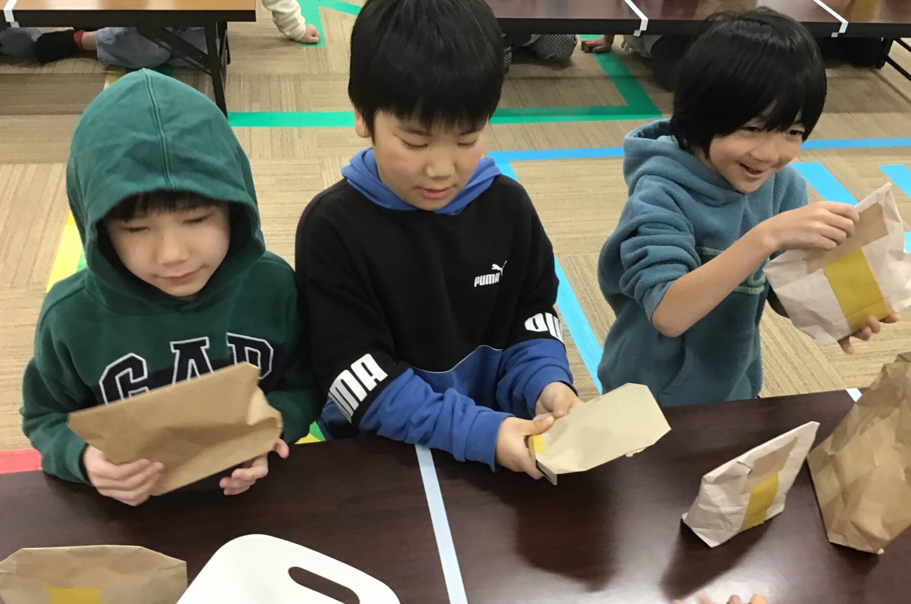 袋の大きさや重さ、感触を確かめて吟味するお友だち🎵