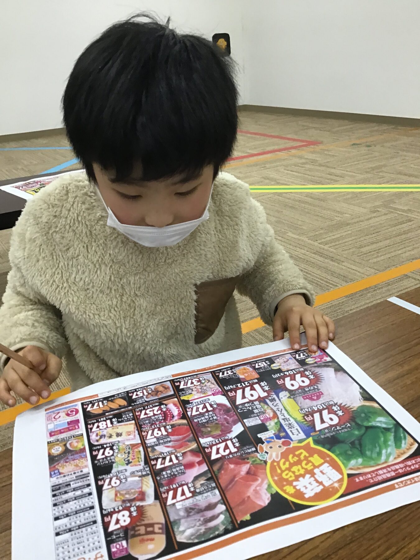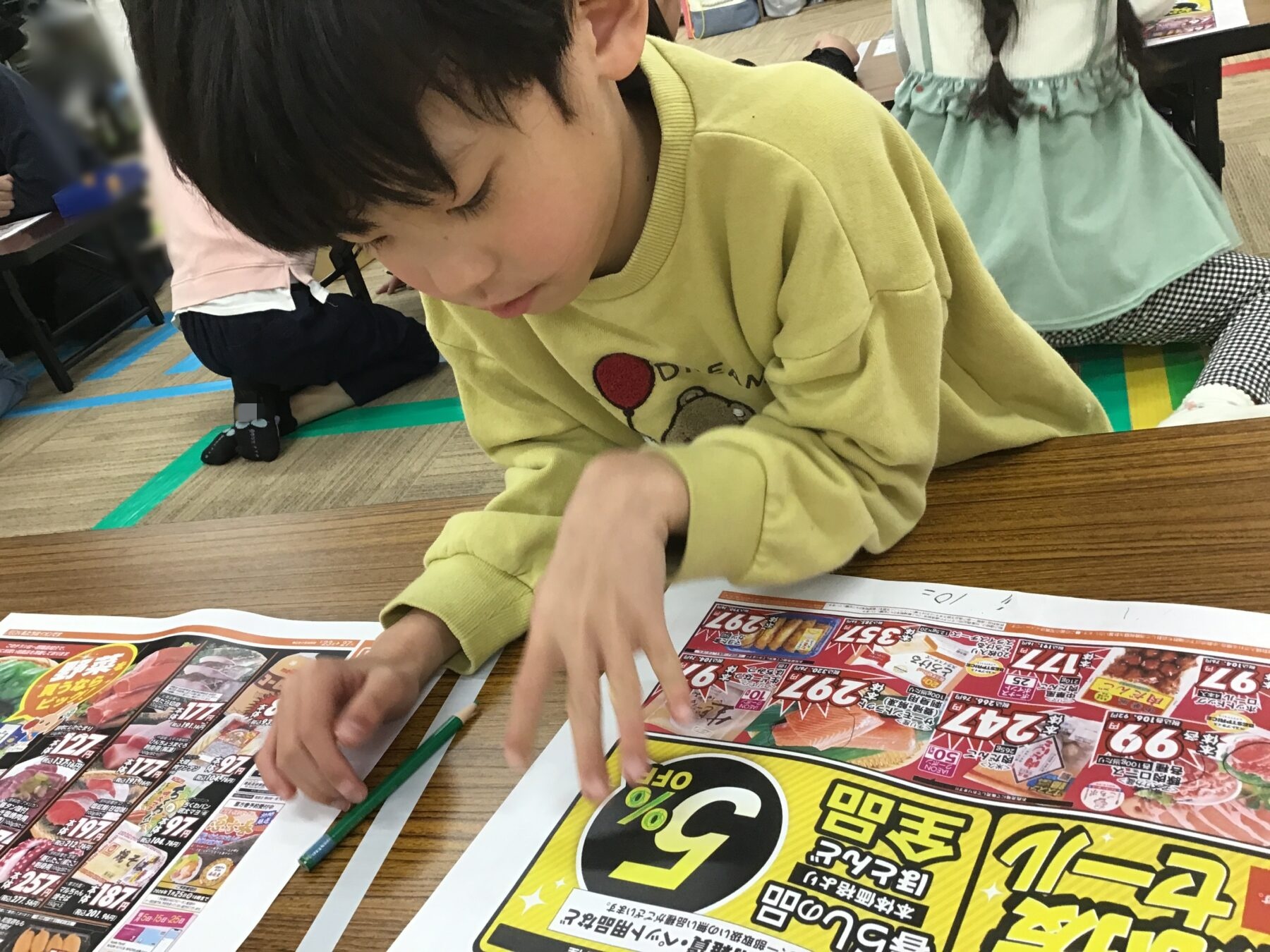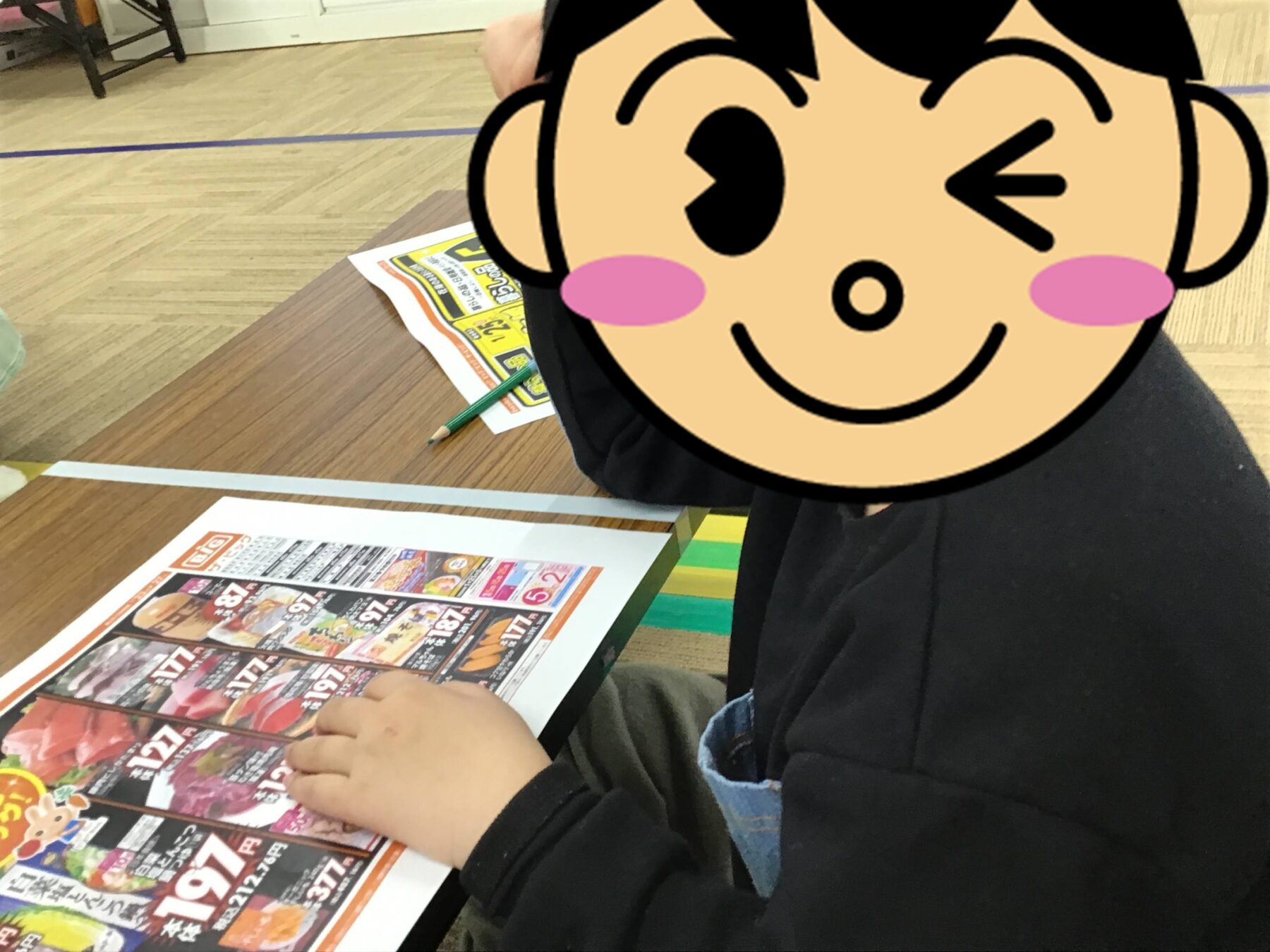 スーパーのチラシの中からお題の文字や数字を探しました👀