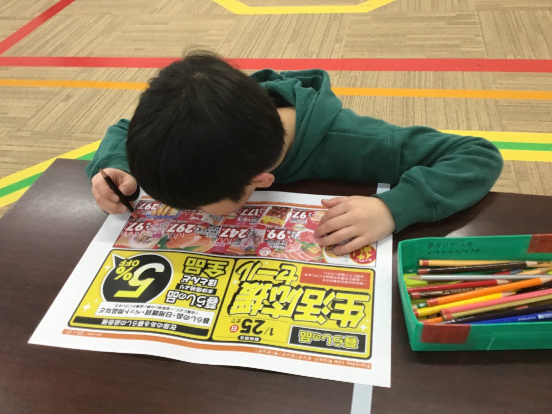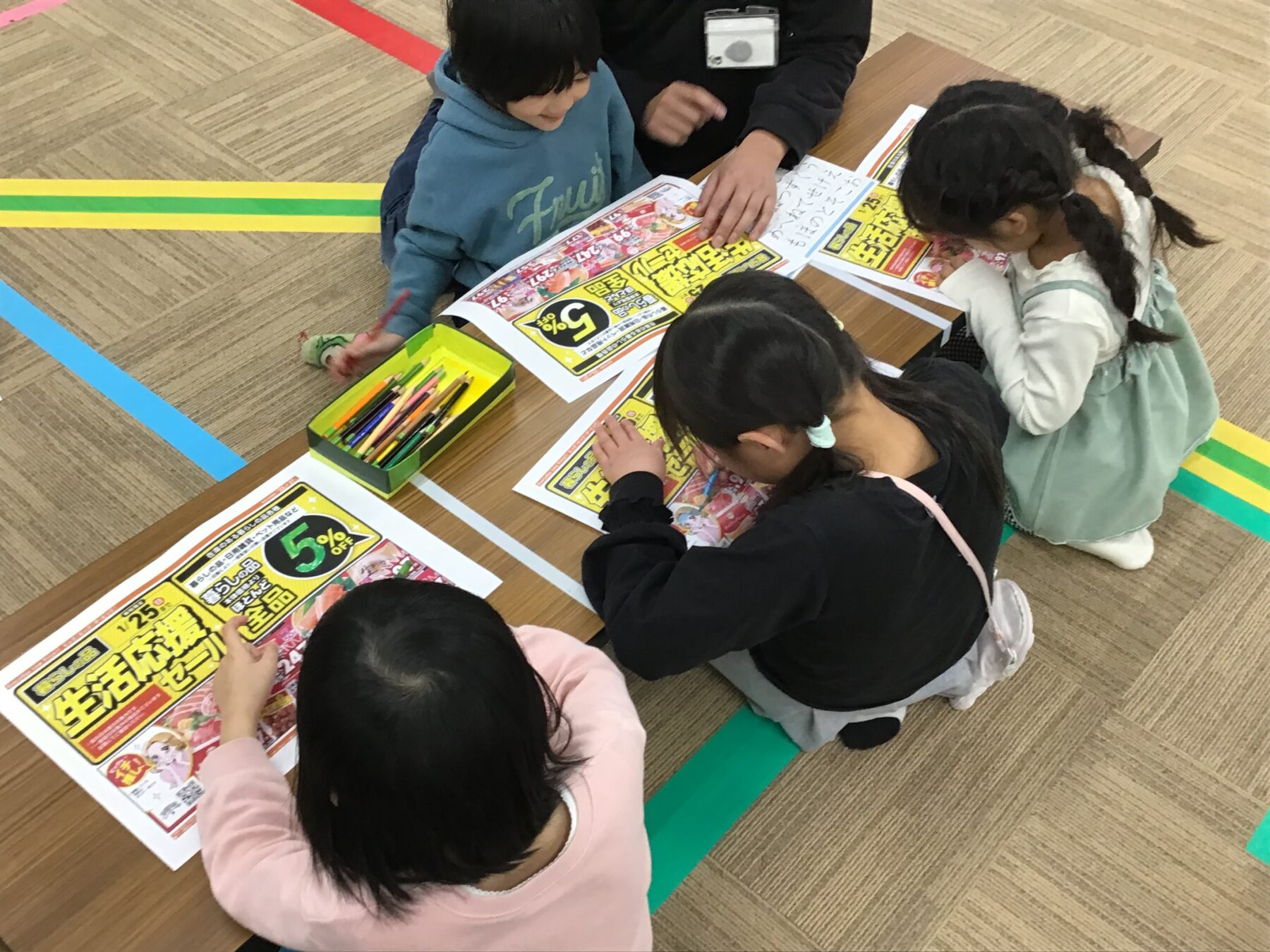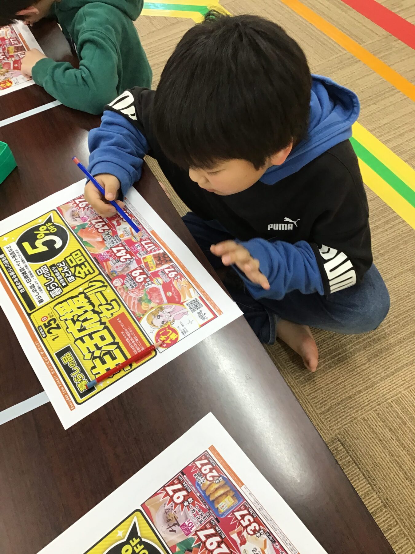 スーパーのチラシの中からお題の文字や数字を探しました👀
