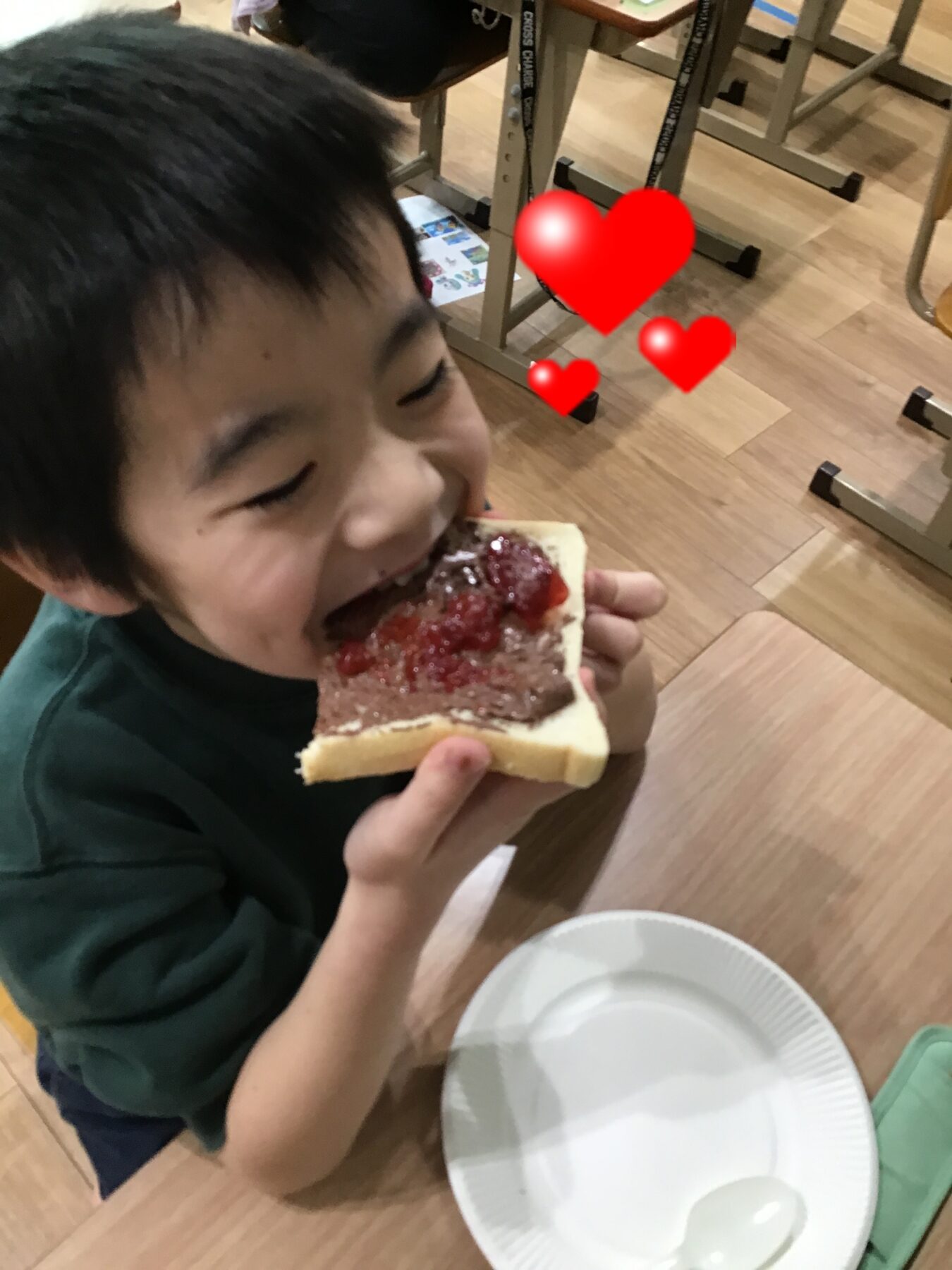 パンにチョコレートクリーム・ホイップクリーム・いちごジャムの