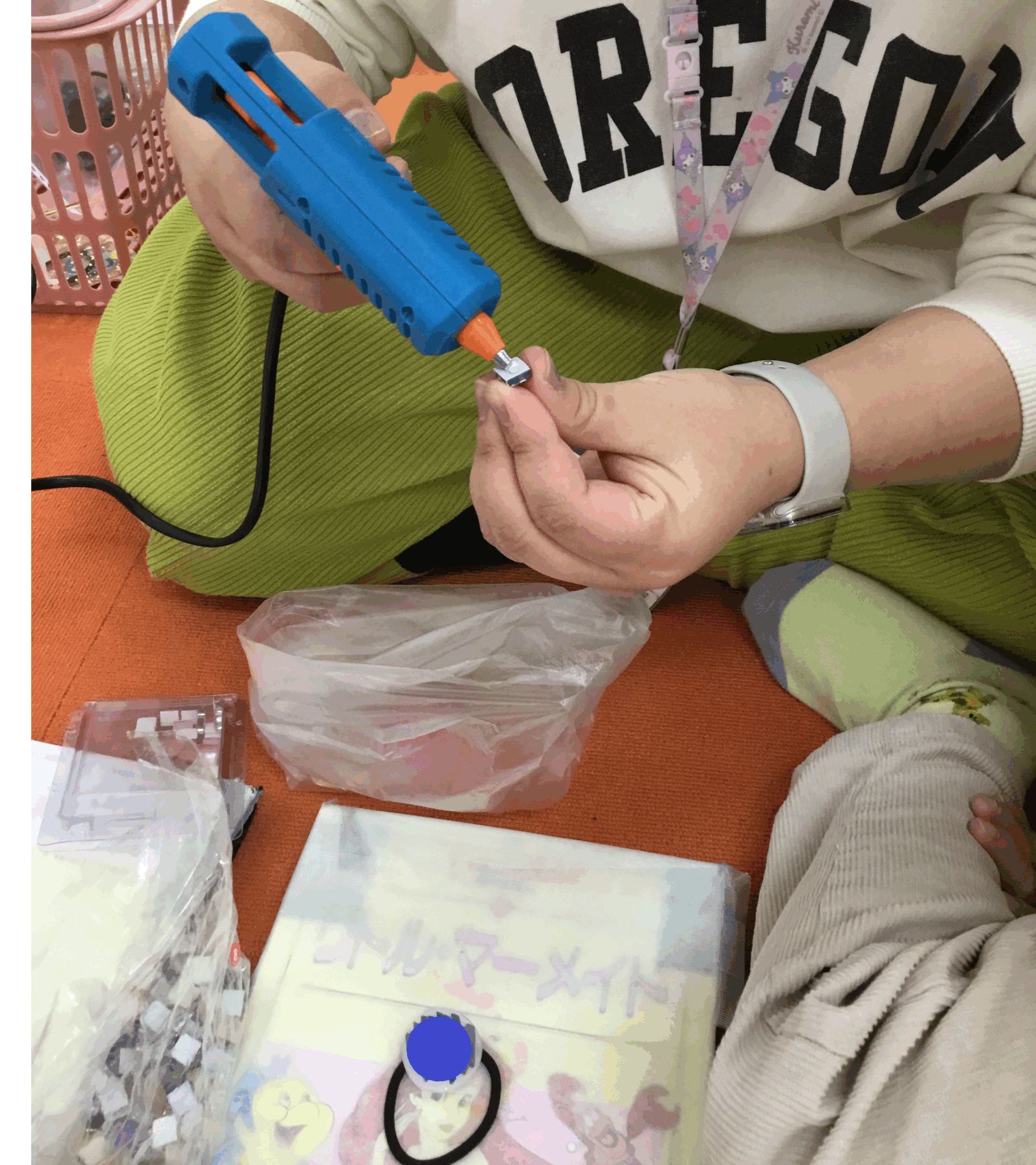飾りのビーズを選んでサポーターがグルーガンで接着!!