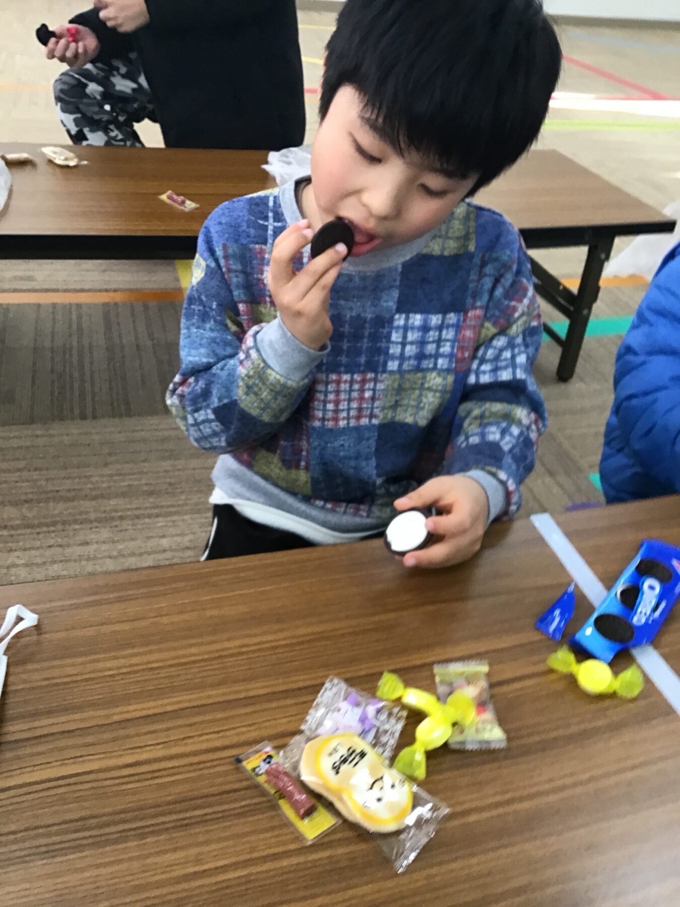 中身はいろいろなお菓子がバラバラに入っております。日々のおやつをランダムで入れることでお子さんたちもおやつを引く時はウキウキワクワク!
