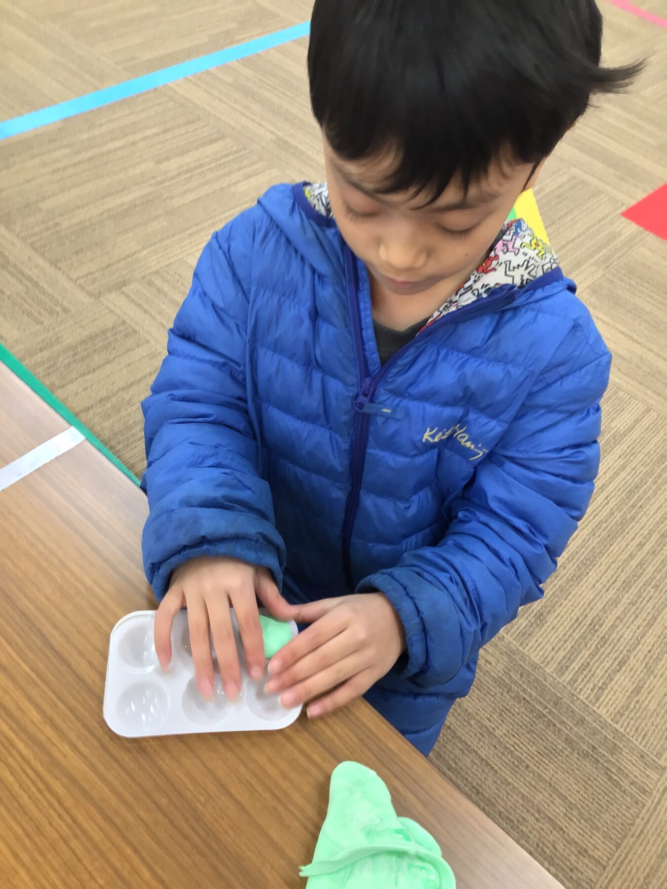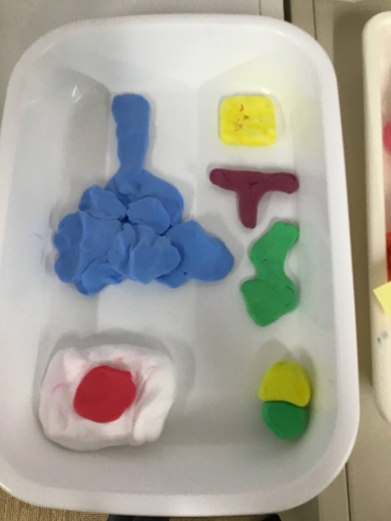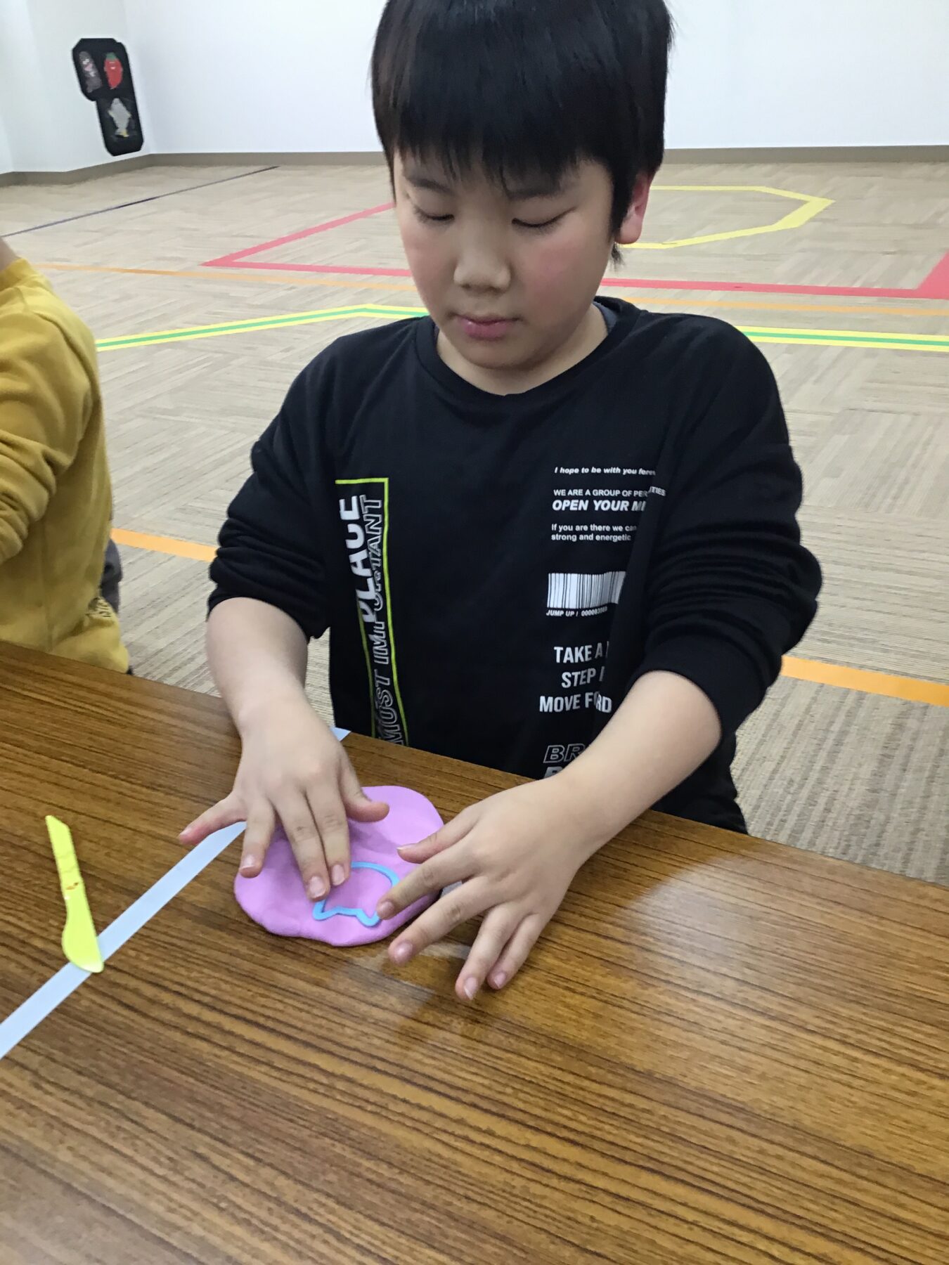 キャラクターなどのイラストに型はめしたりと紙粘土の感触を楽しみながら活動に取り組んでおりました。