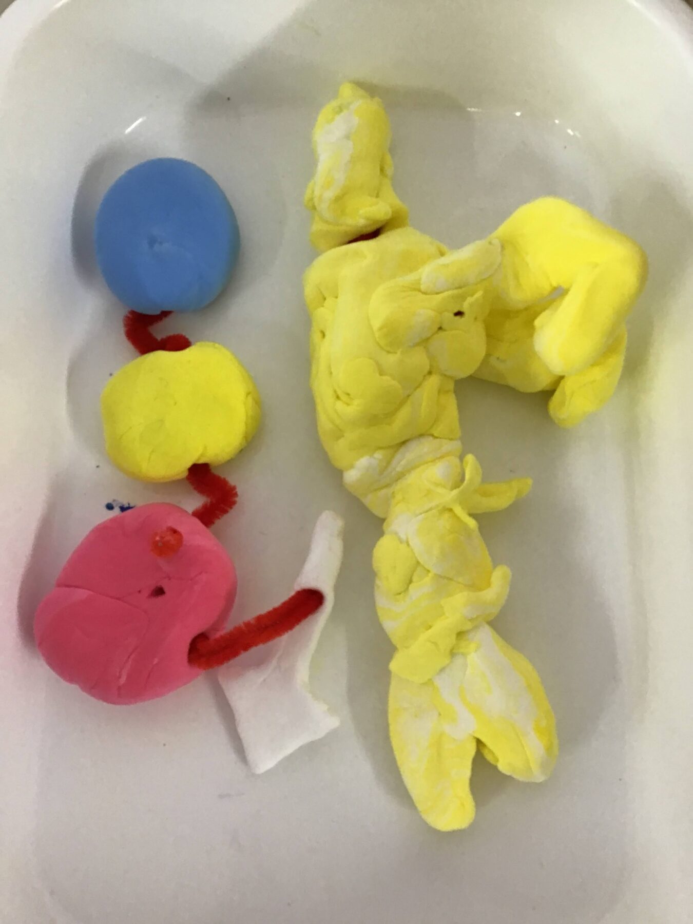本日の活動は【運動・感覚:紙粘土でオリジナル作品作り】を行いました。