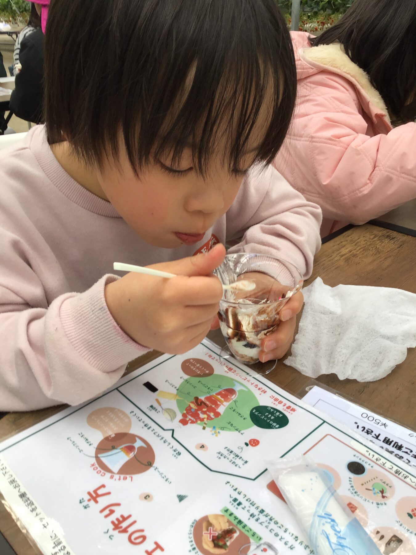 イチゴを摘んだら、へたを取ってパフェを作ろう!🍨🍓🍫