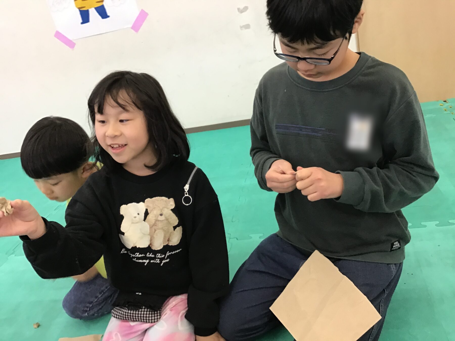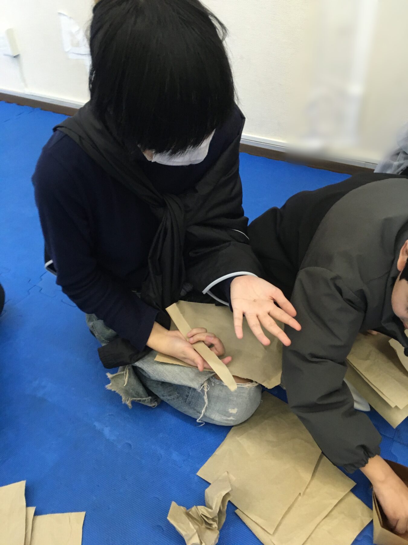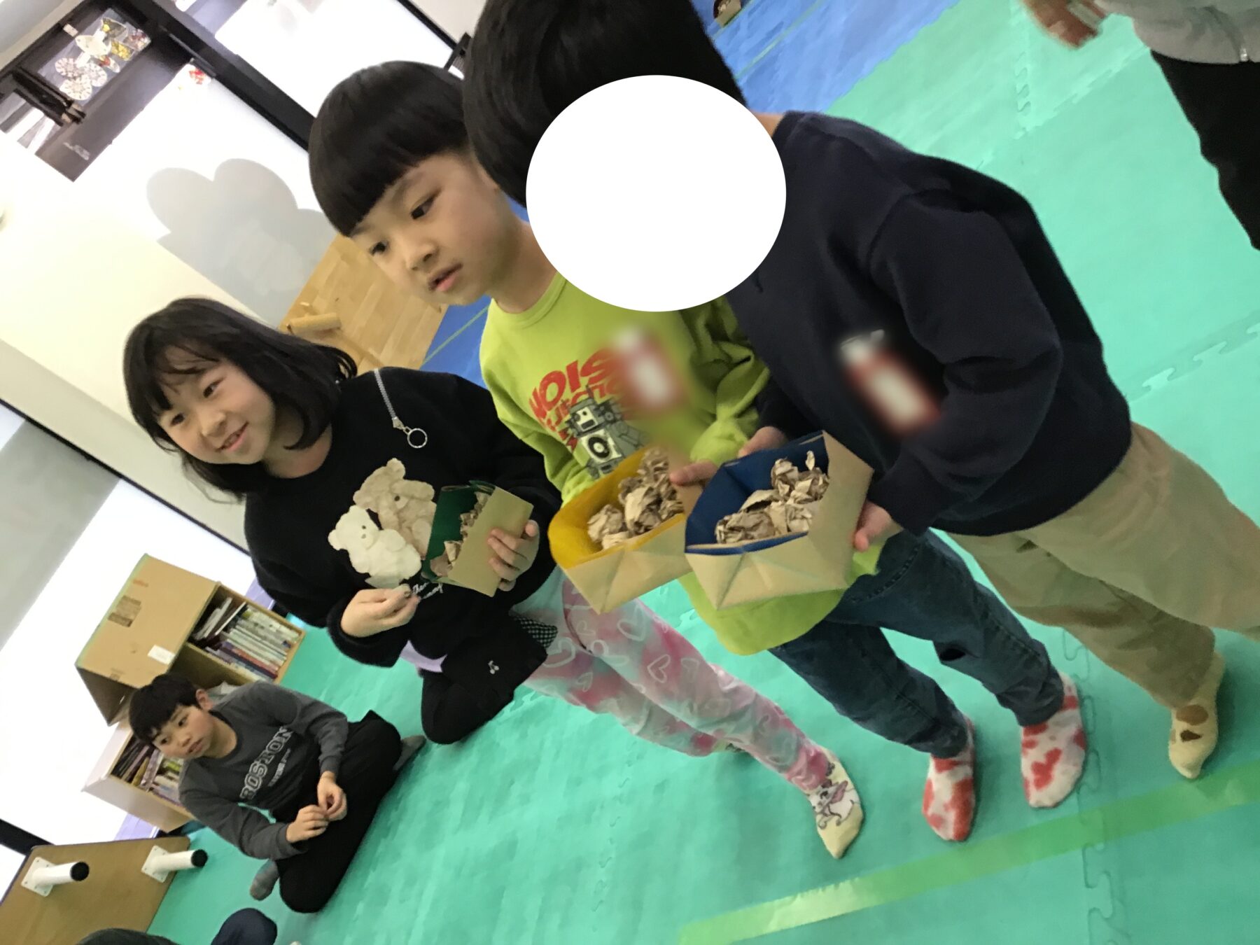 その後はみんなで新聞紙お豆づくり!