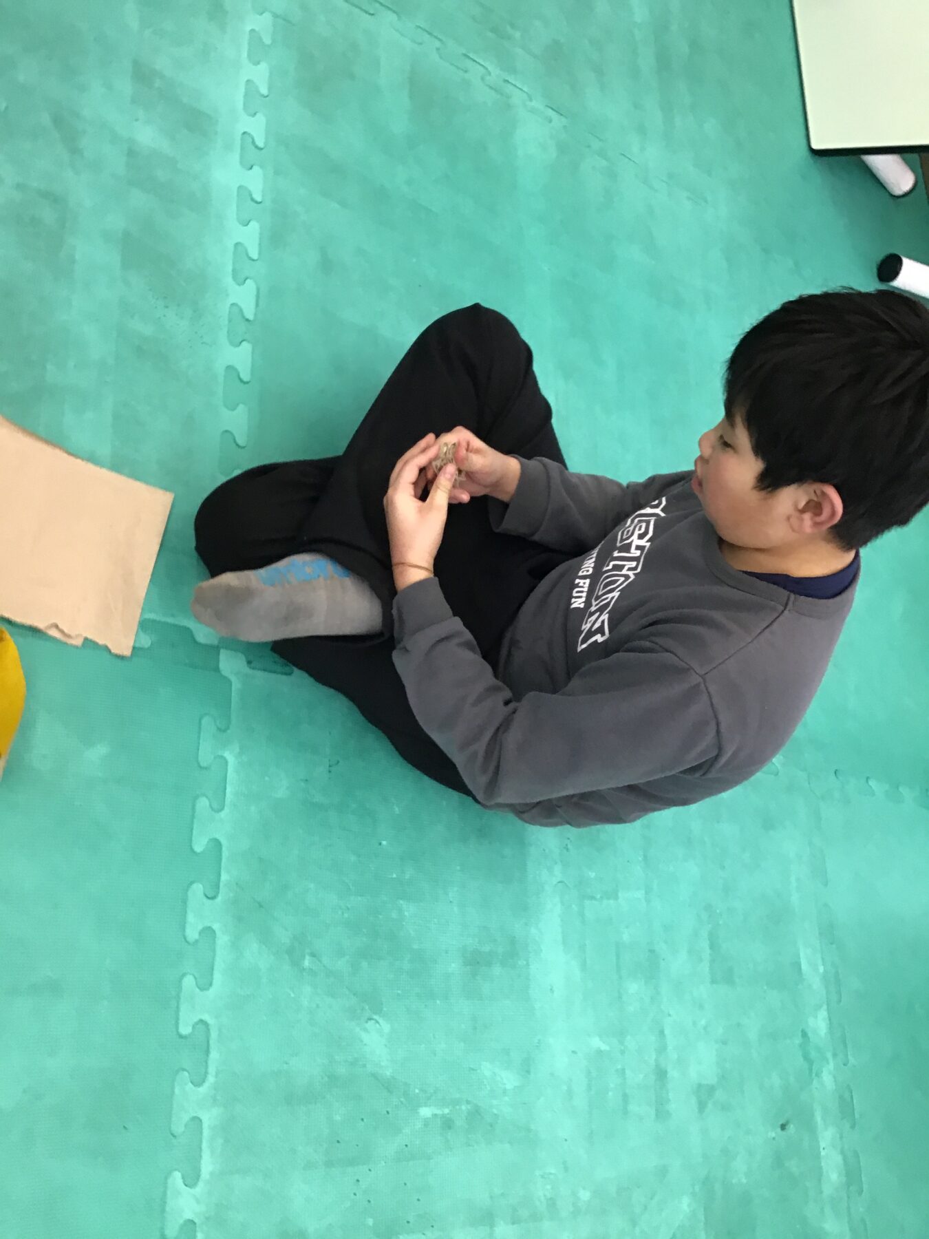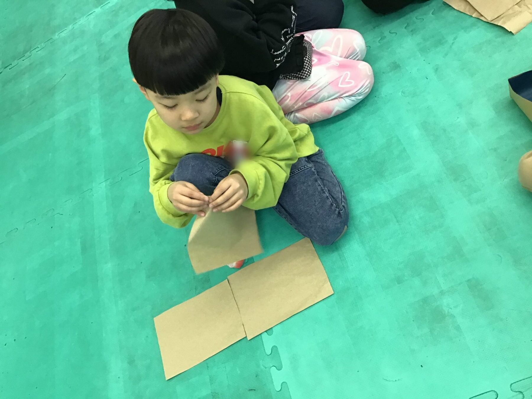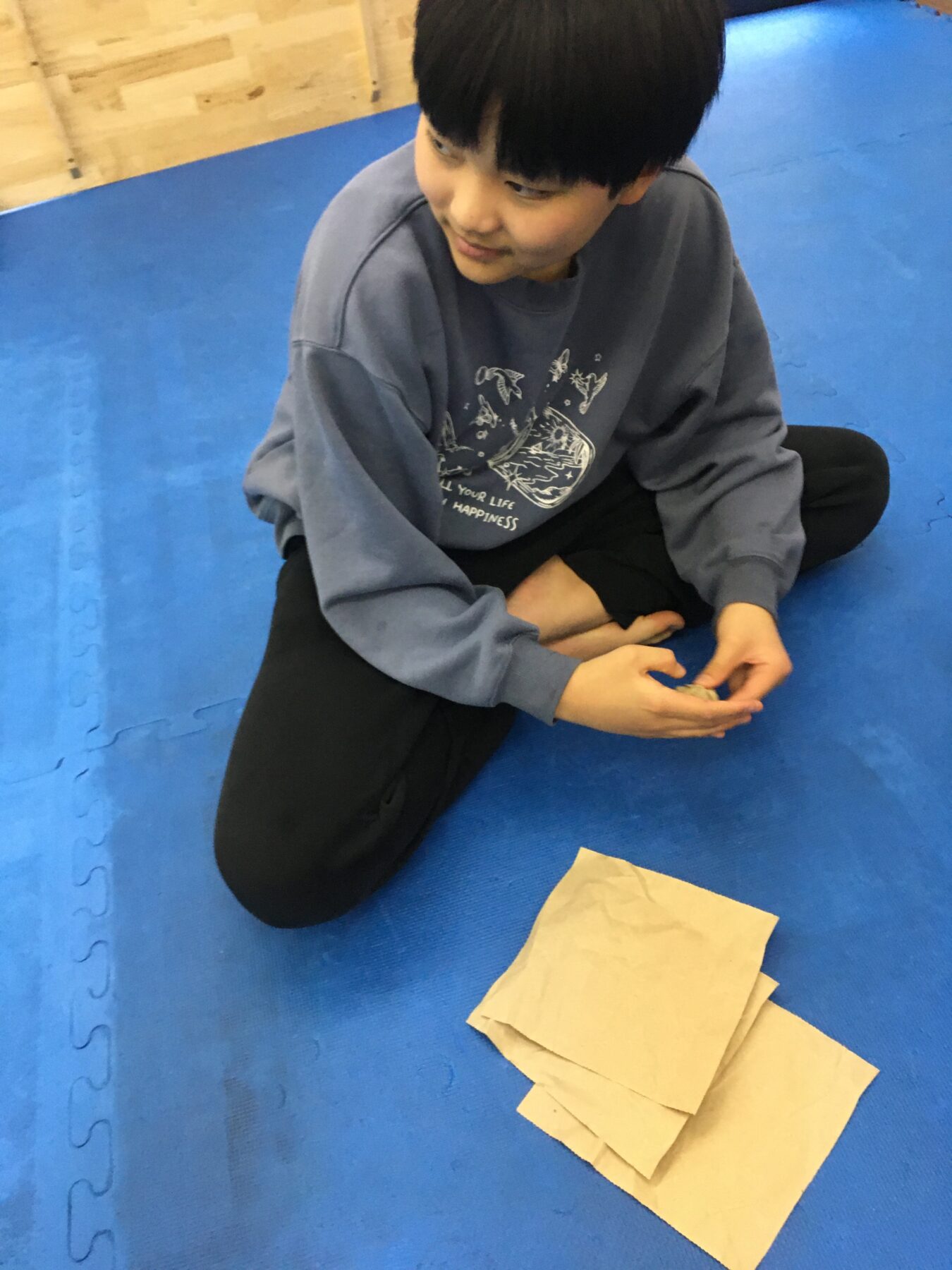 その後はみんなで新聞紙お豆づくり!