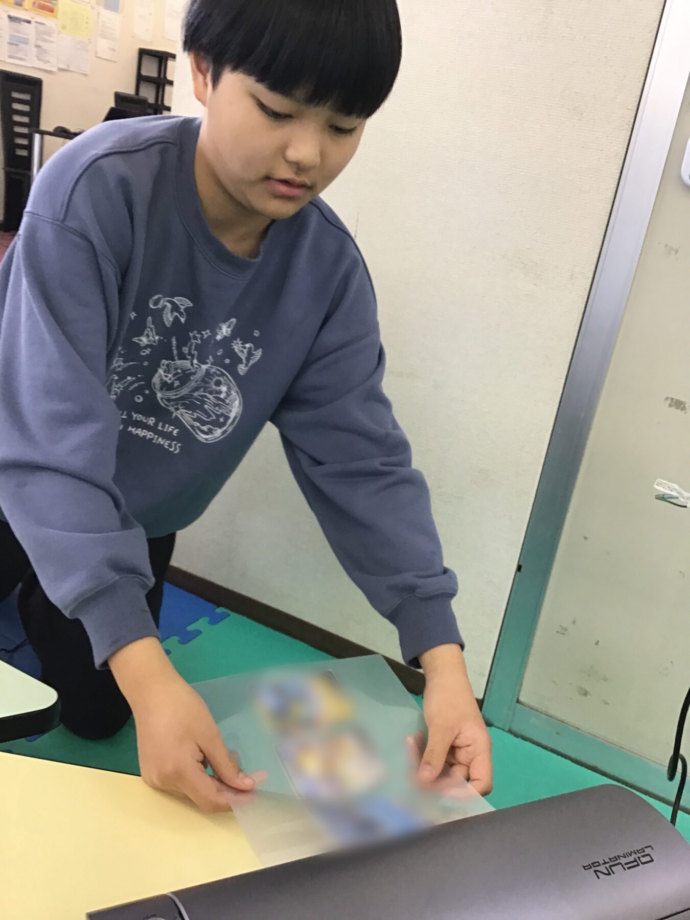 ラミネートにかけて、切って…