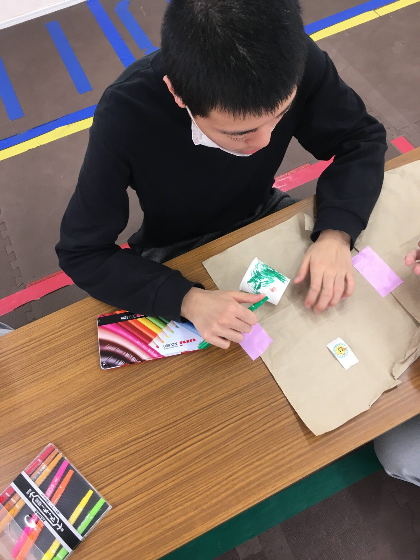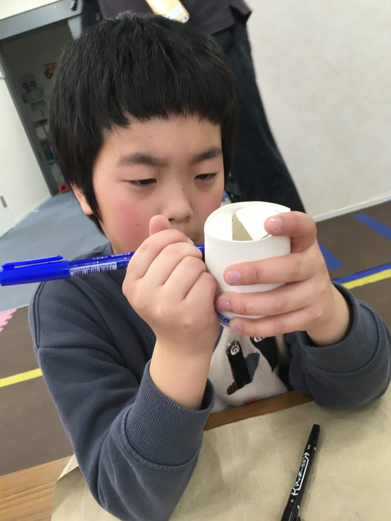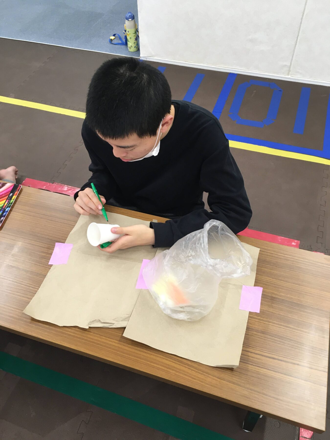 最初に紙コップに名前を書いてね。