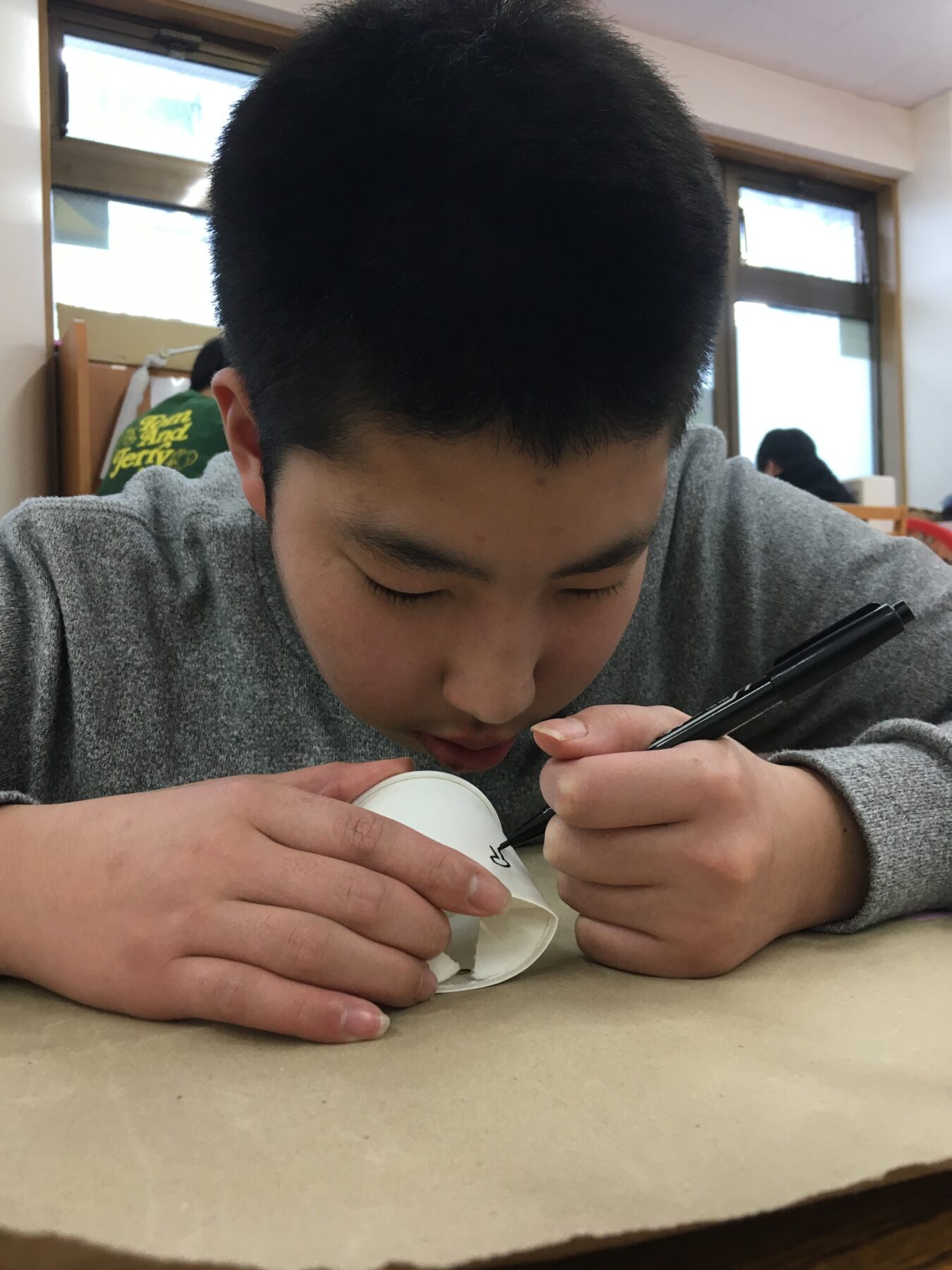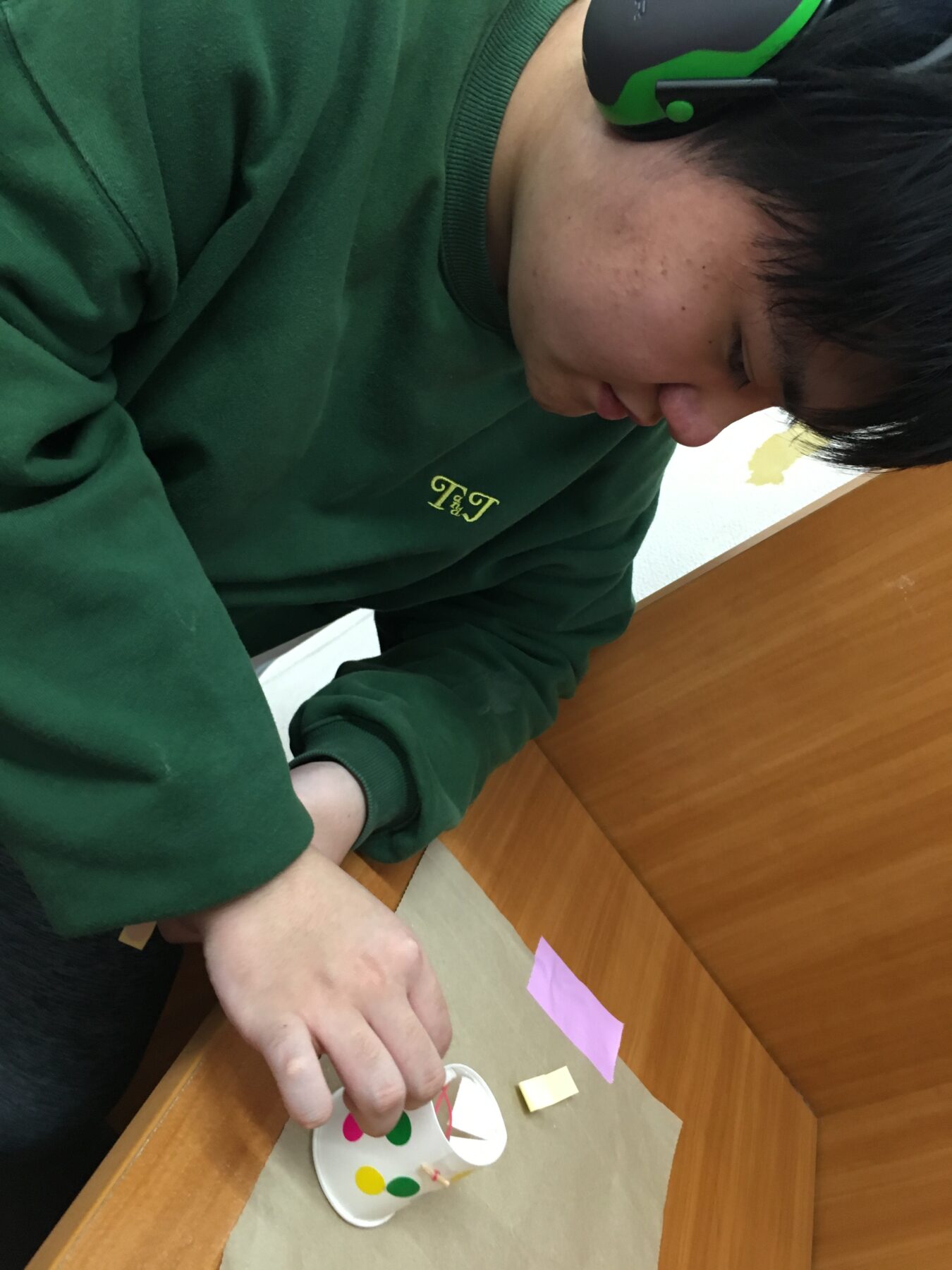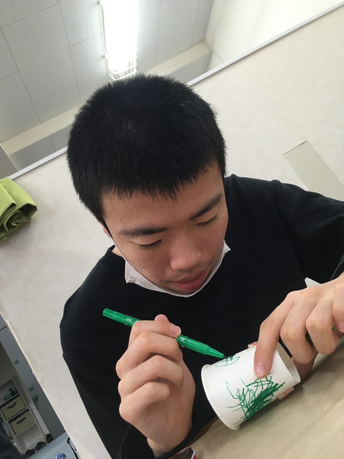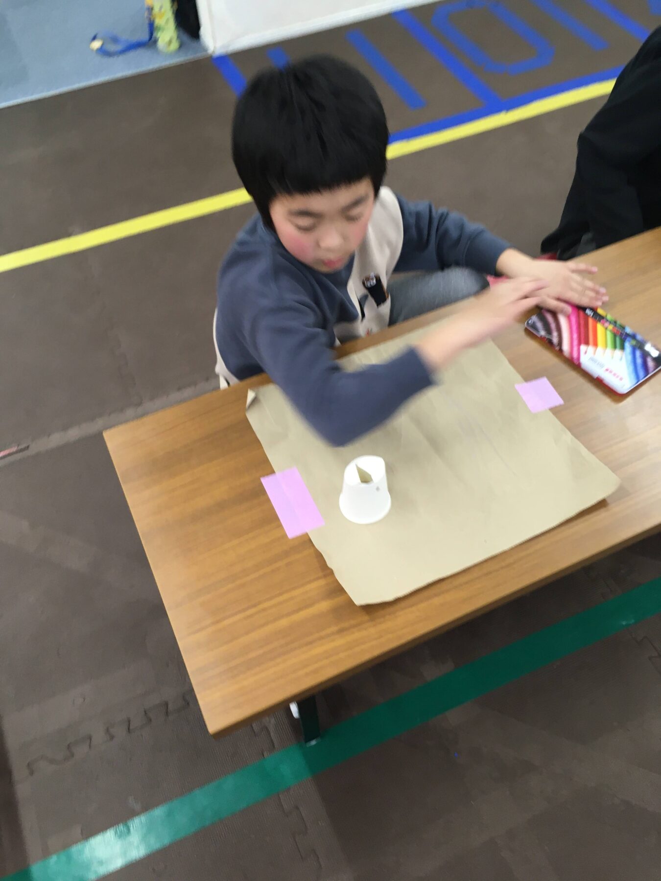 最初に紙コップに名前を書いてね。