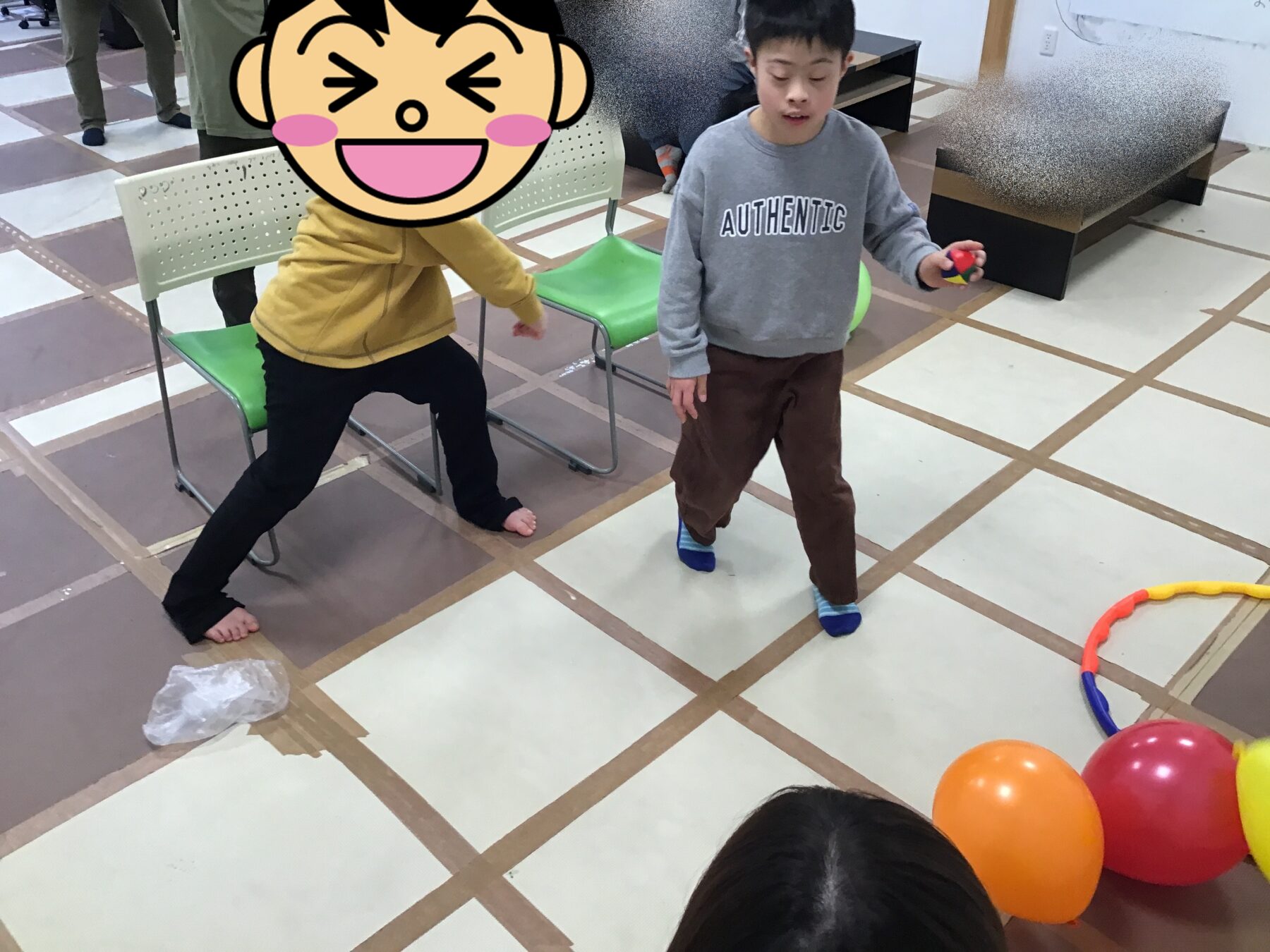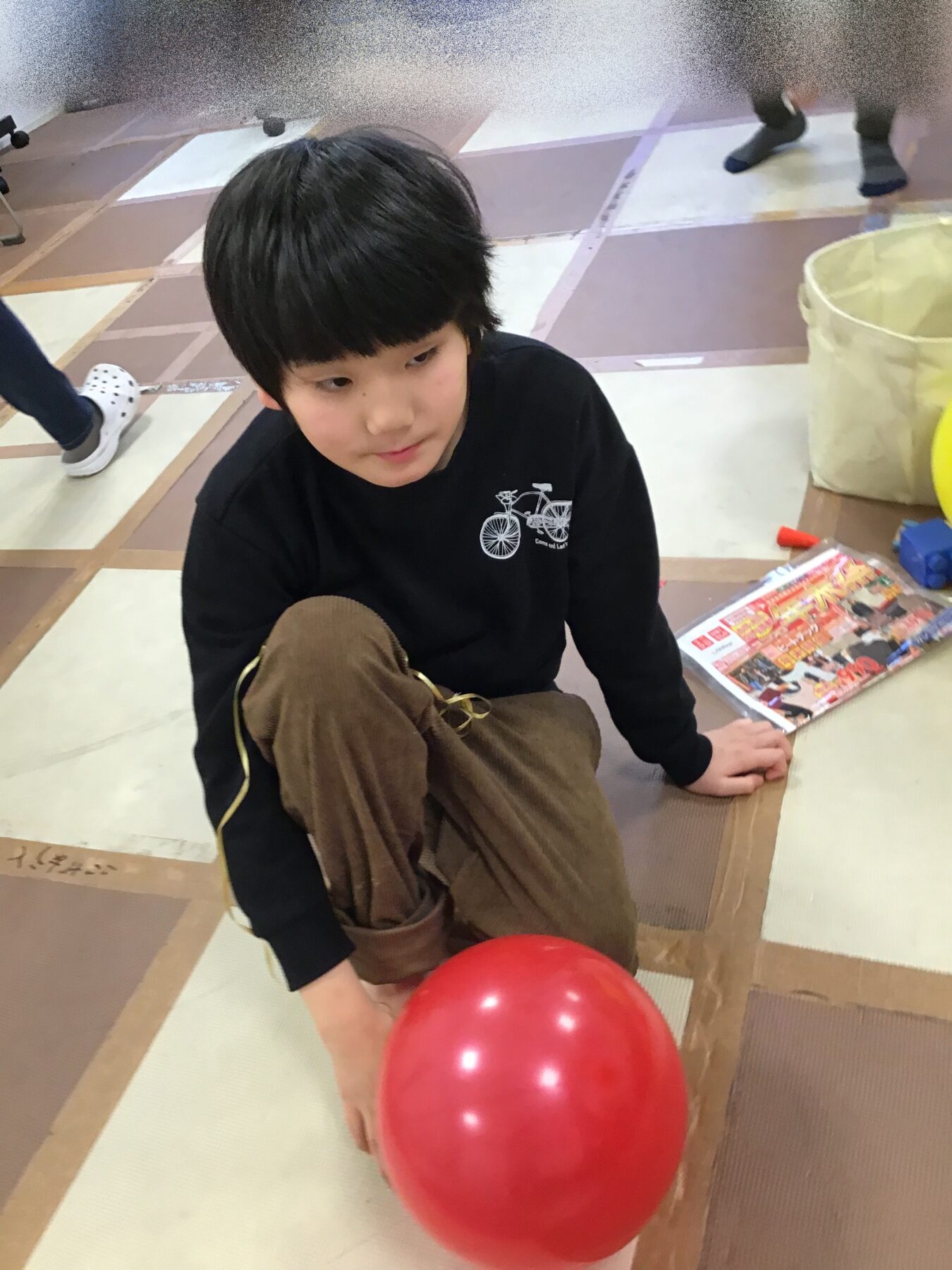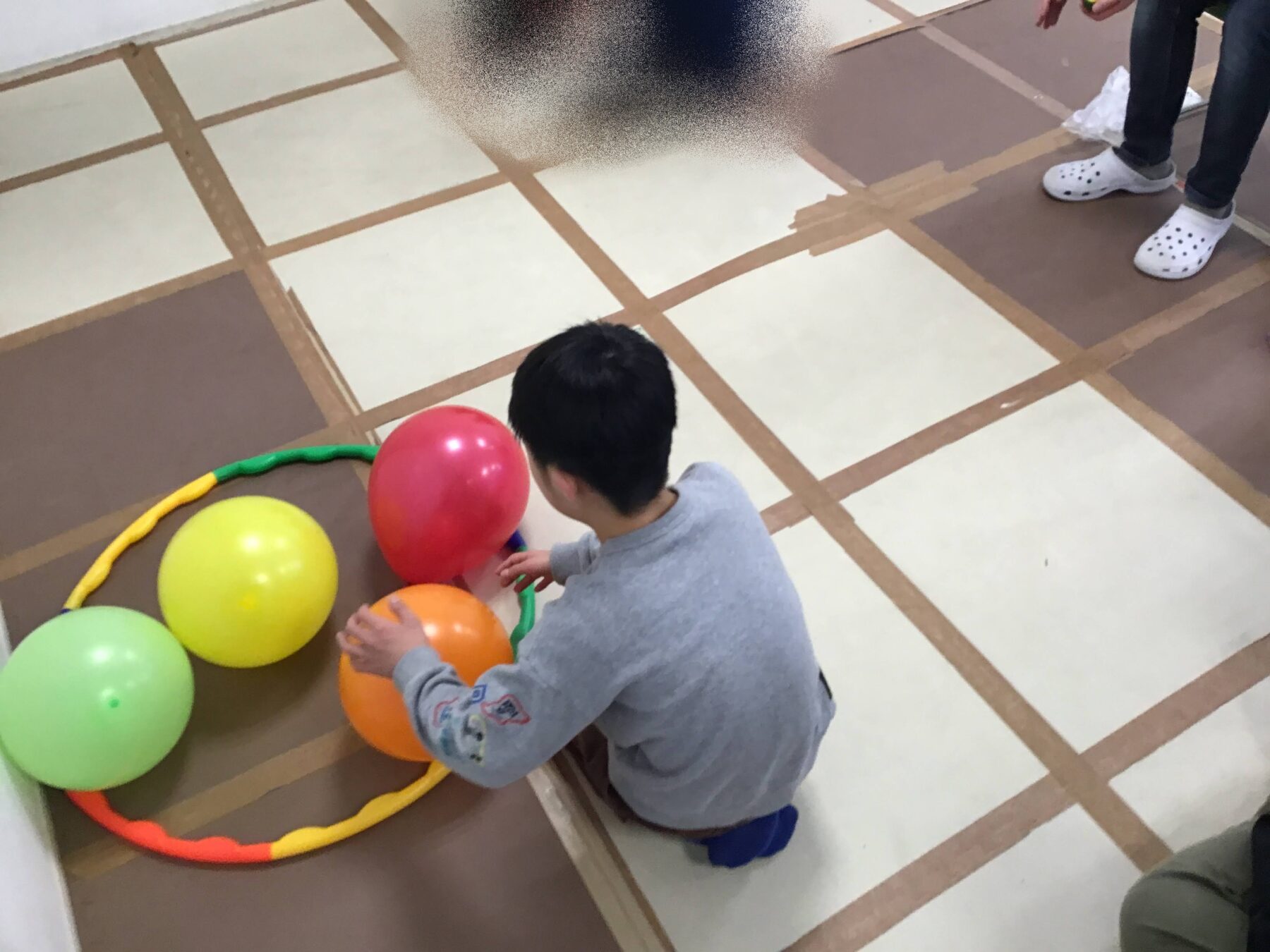 フラフープ内にある風船にお手玉を投げて何個外に出るのか競いました!