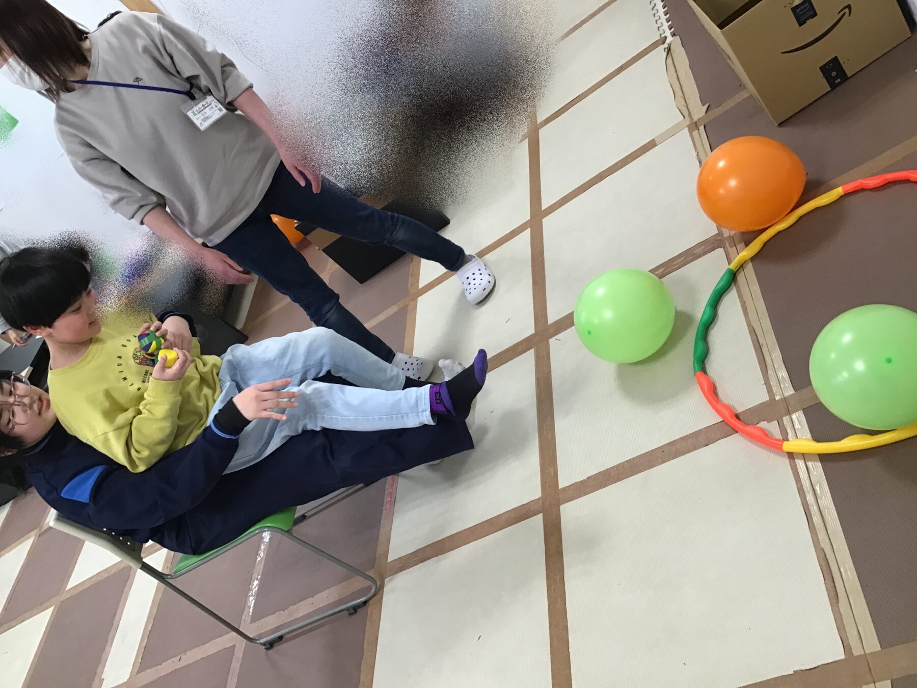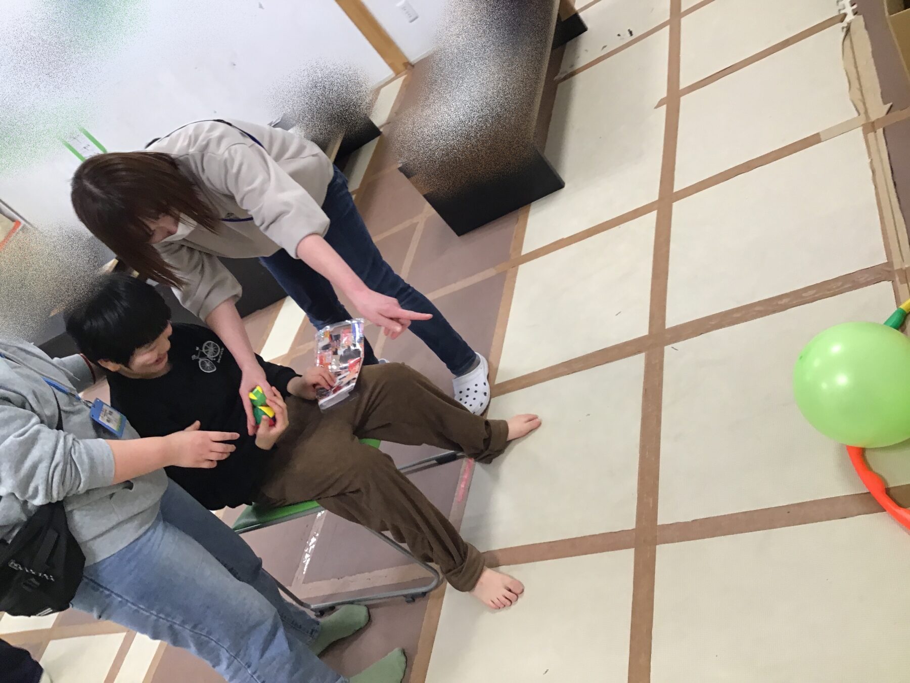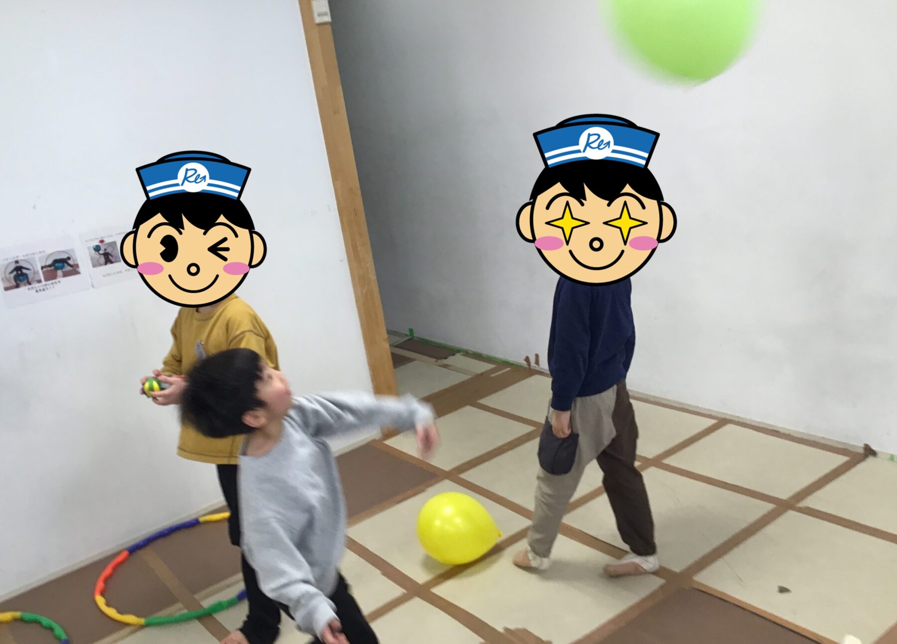 フラフープ内にある風船にお手玉を投げて何個外に出るのか競いました!