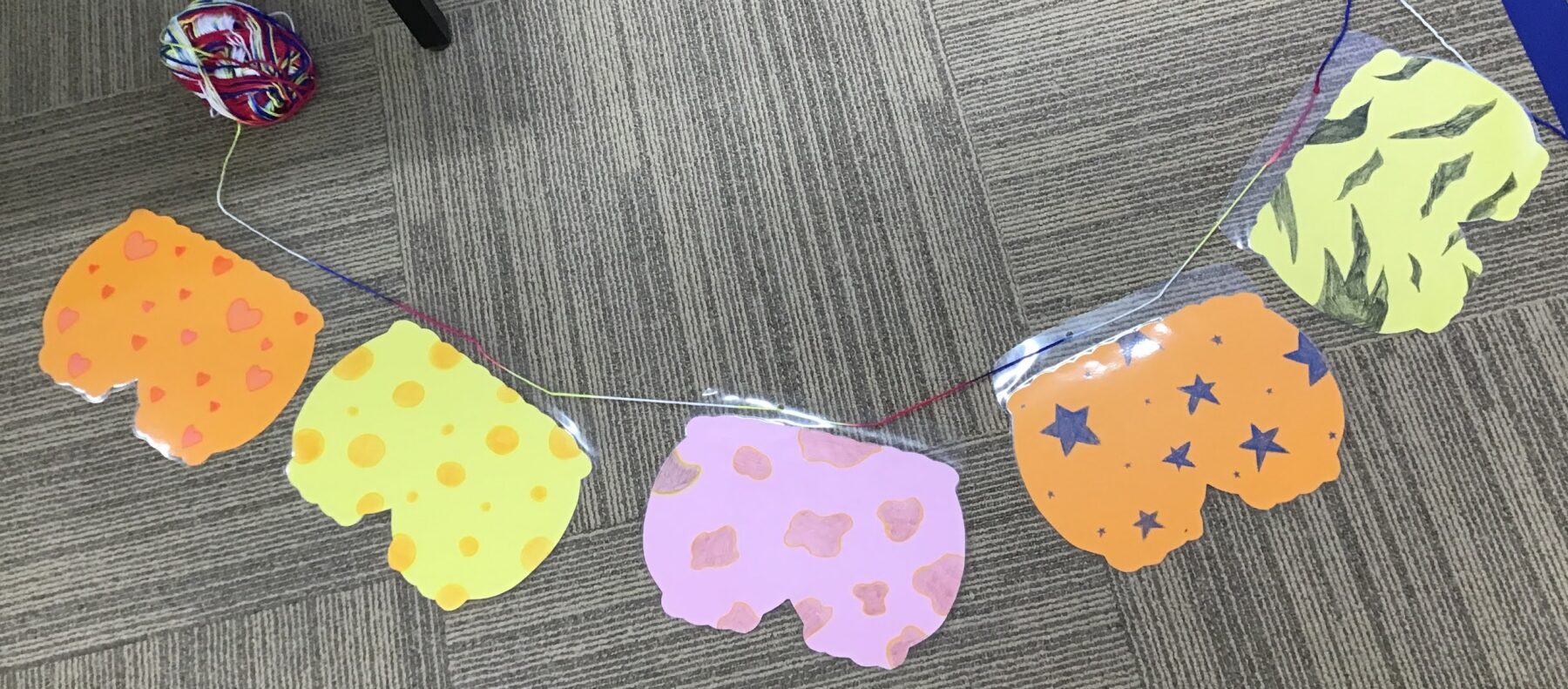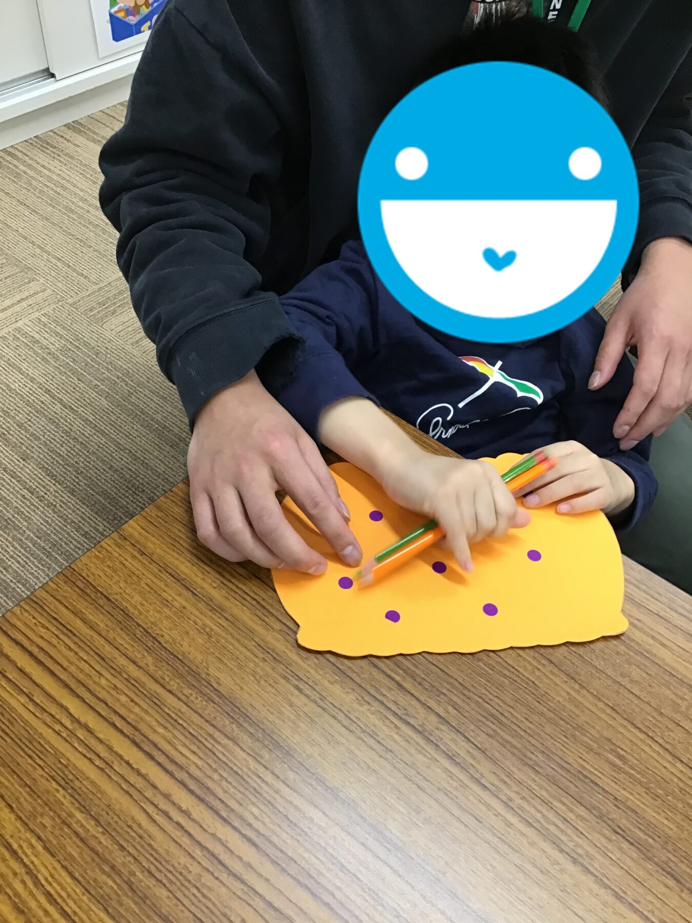 色鉛筆やペン、シールを使って鬼のパンツに模様をつけてもらいました!