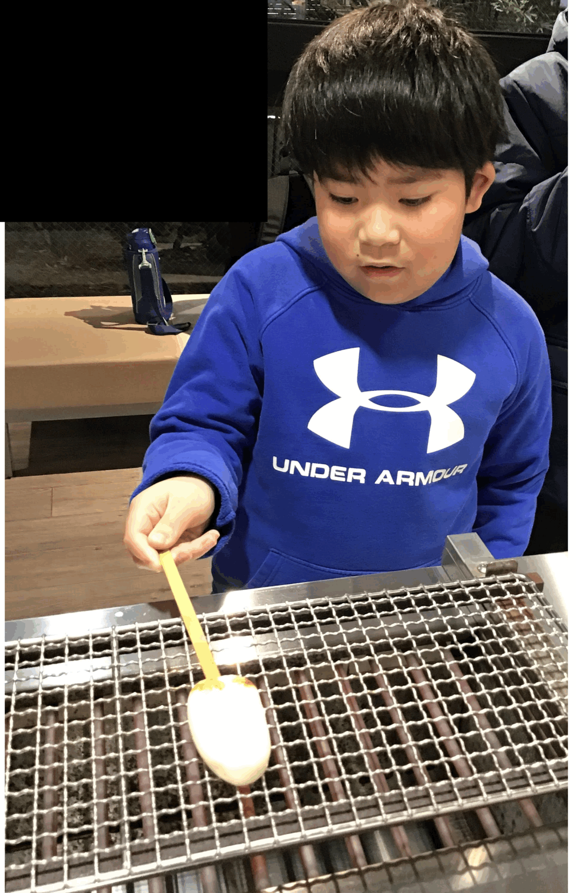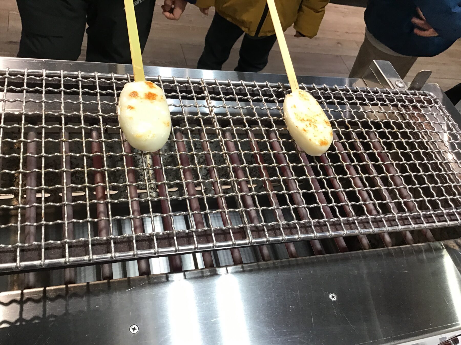 かまぼこを焼き炉の中央に置いたら、表面・裏面を2分ずつ焼きます♪