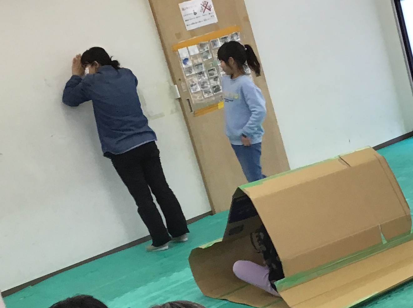 「だるまさんがころんだ」の声に合わせて、動いたり、隠れたり。