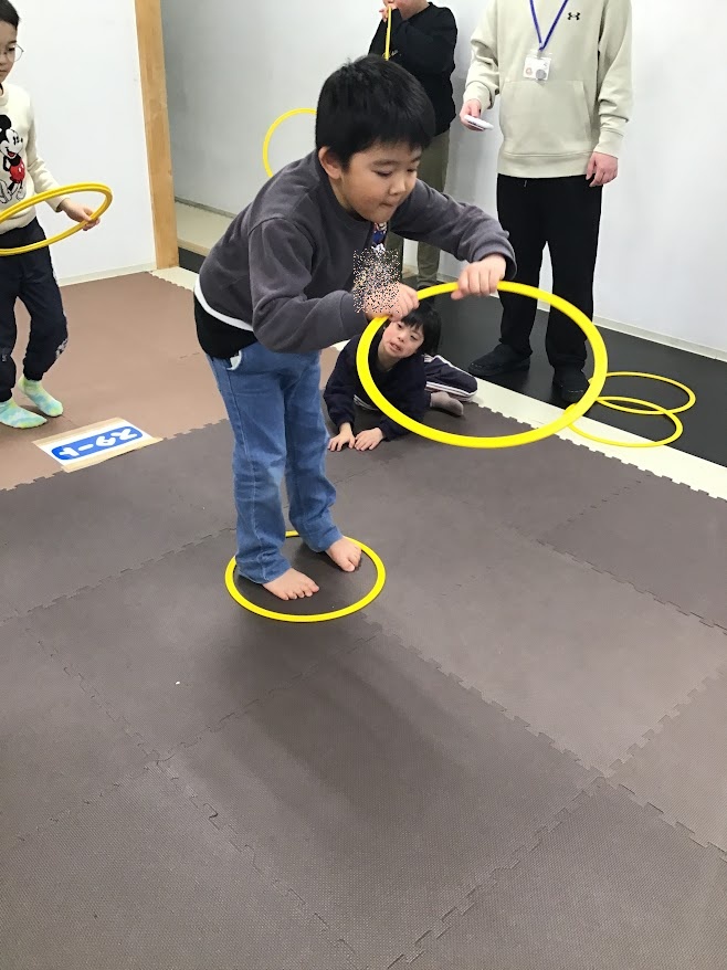 輪っかで島を作って渡り、ゴールを目指すゲームをしました!