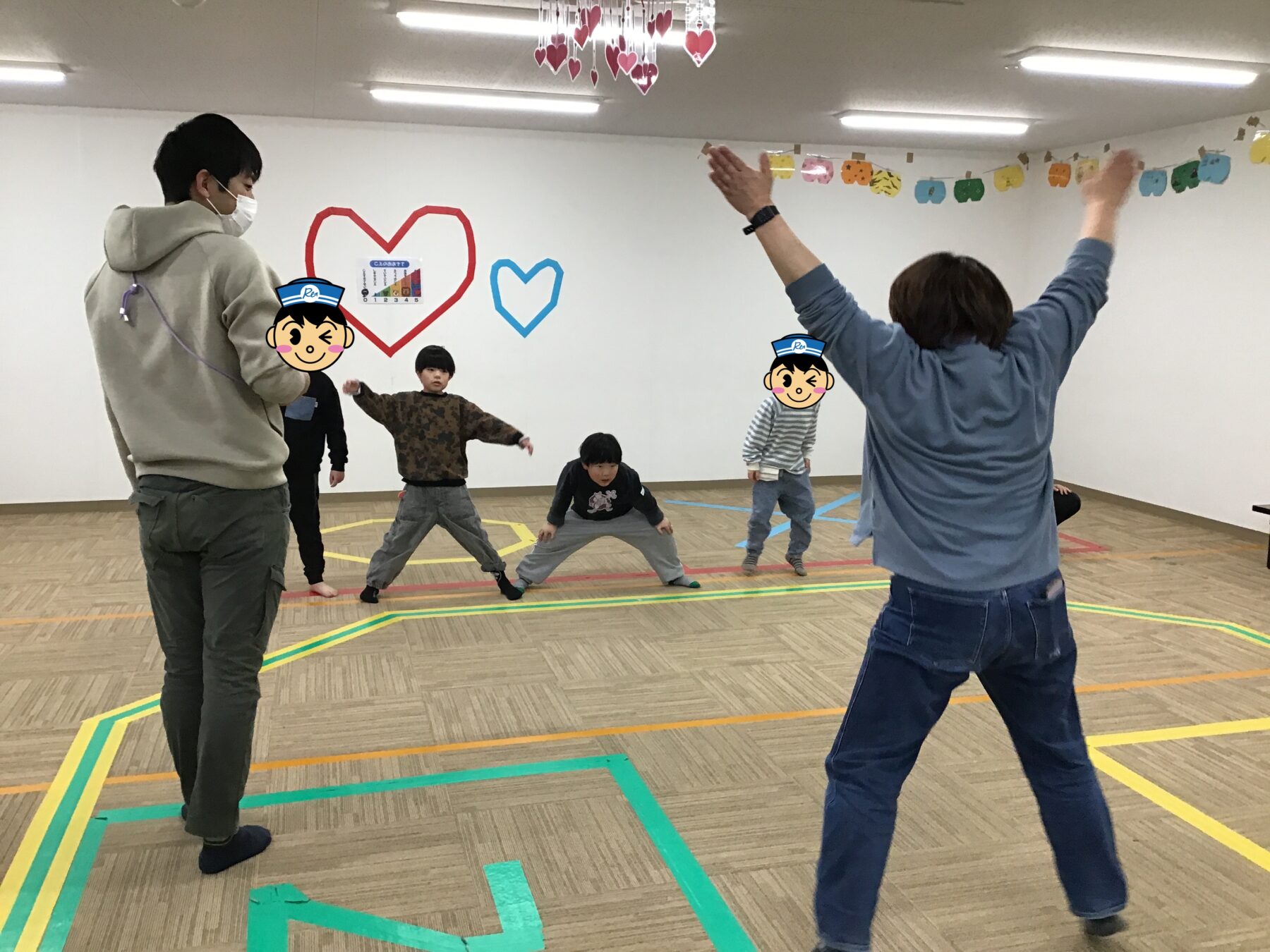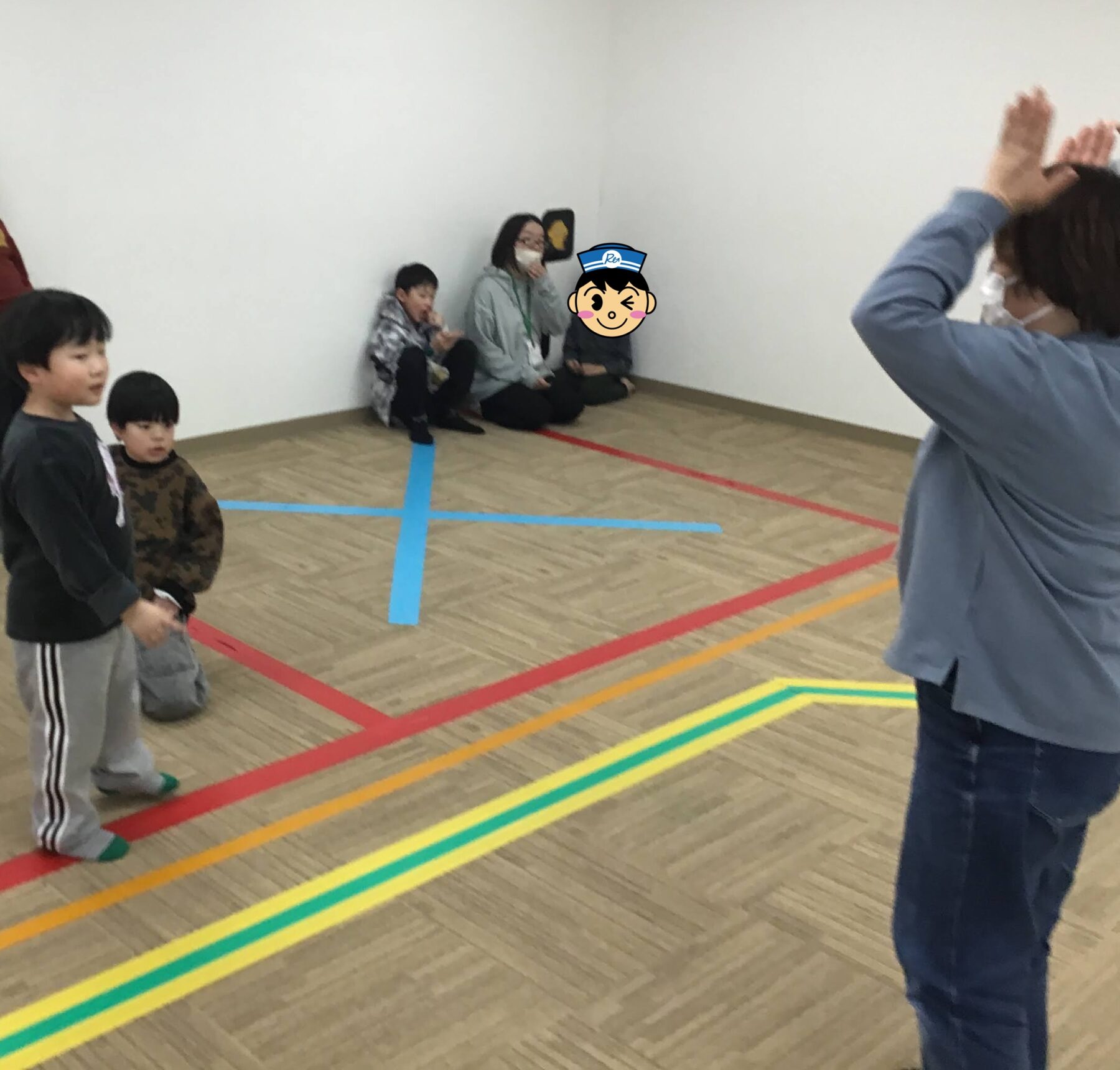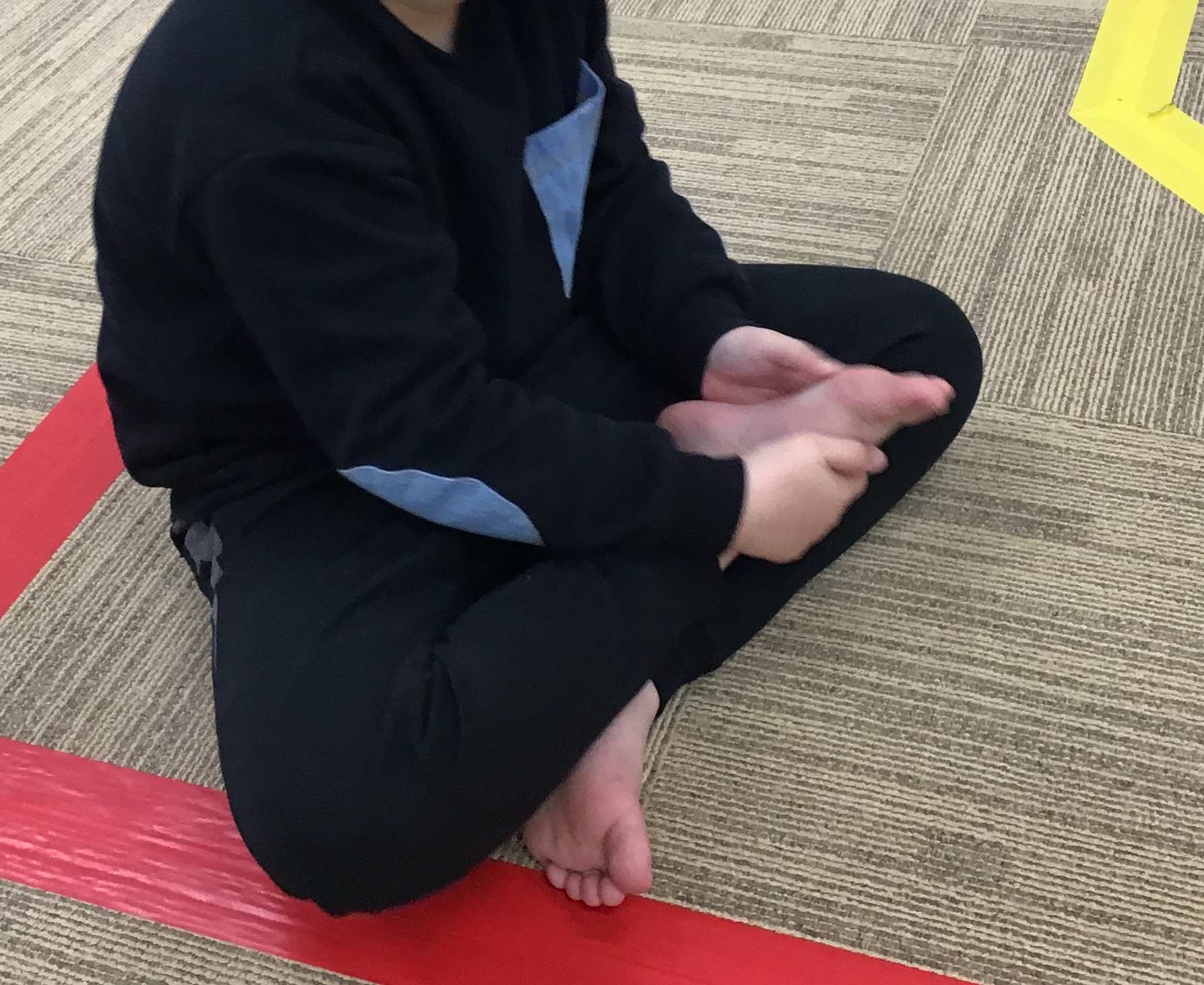 足やみぞおち、頭などに自分で触れながら簡単なトレーニングを行いました。