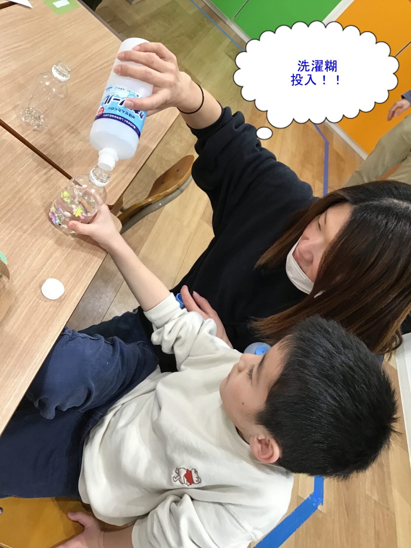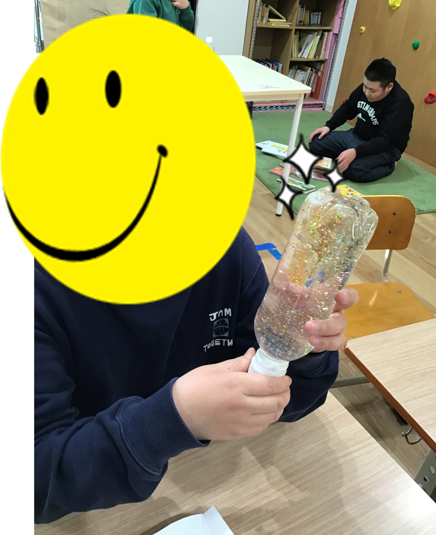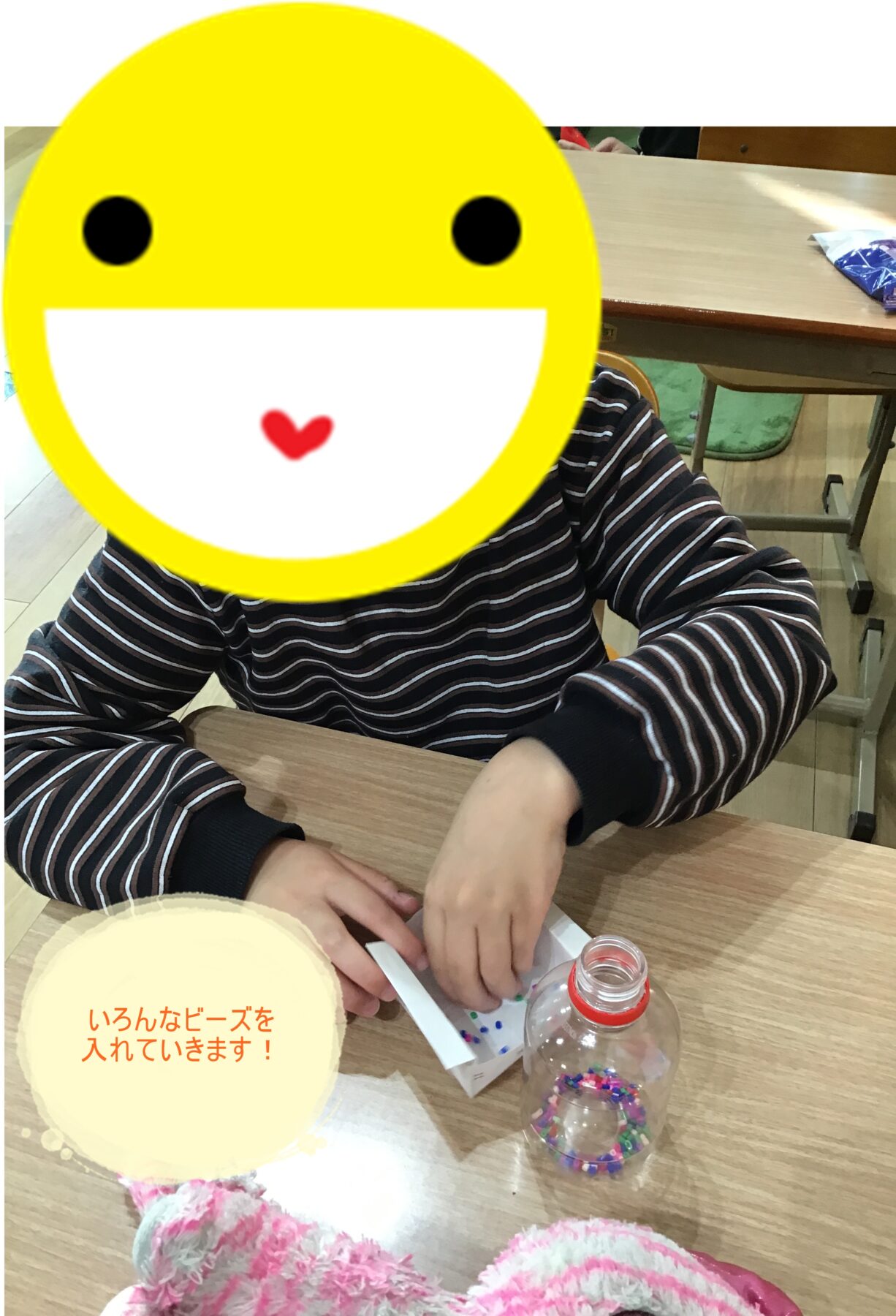 ペットボトルにお好みのビーズやラメを入れて、洗濯糊を入れたら完成です✨
