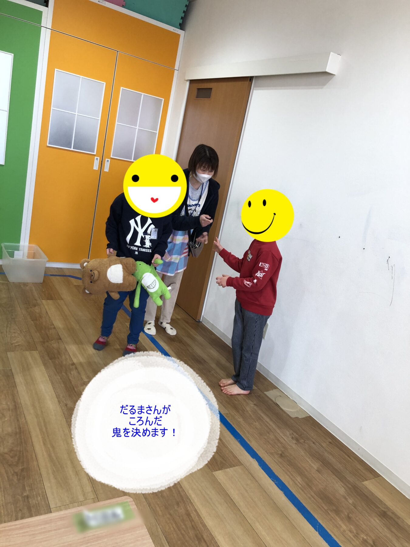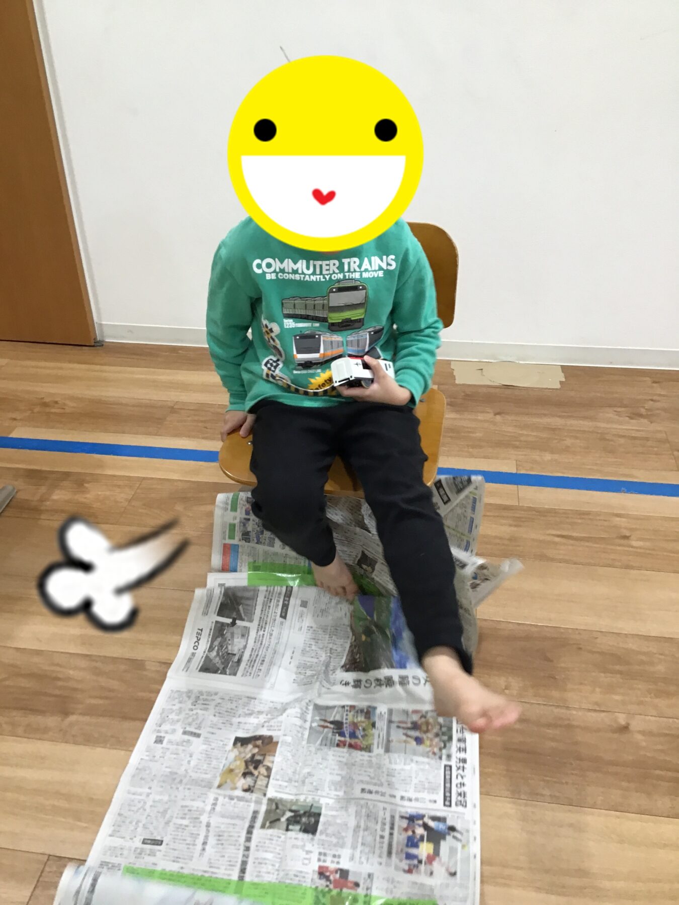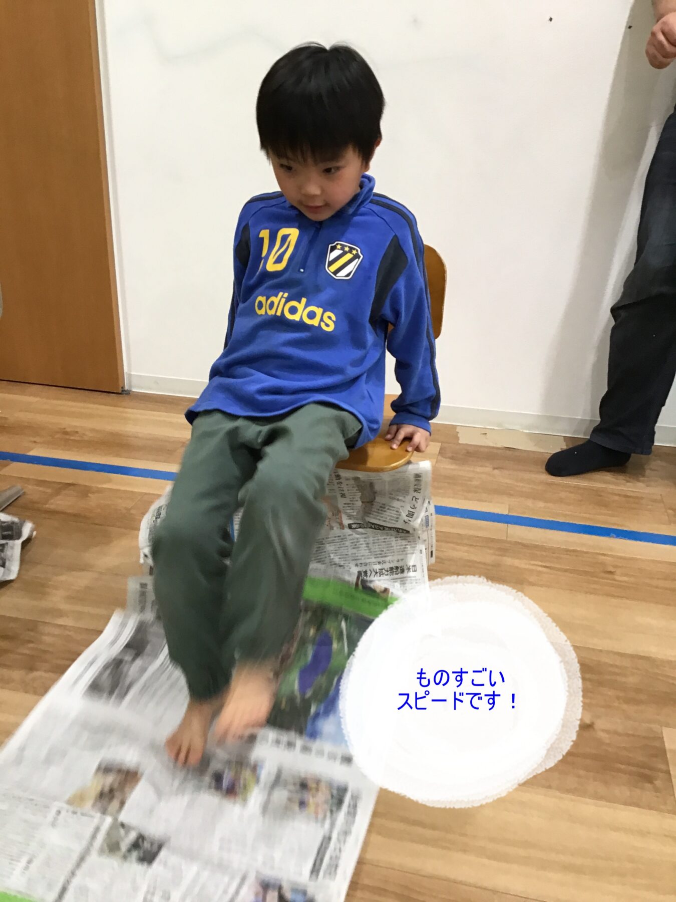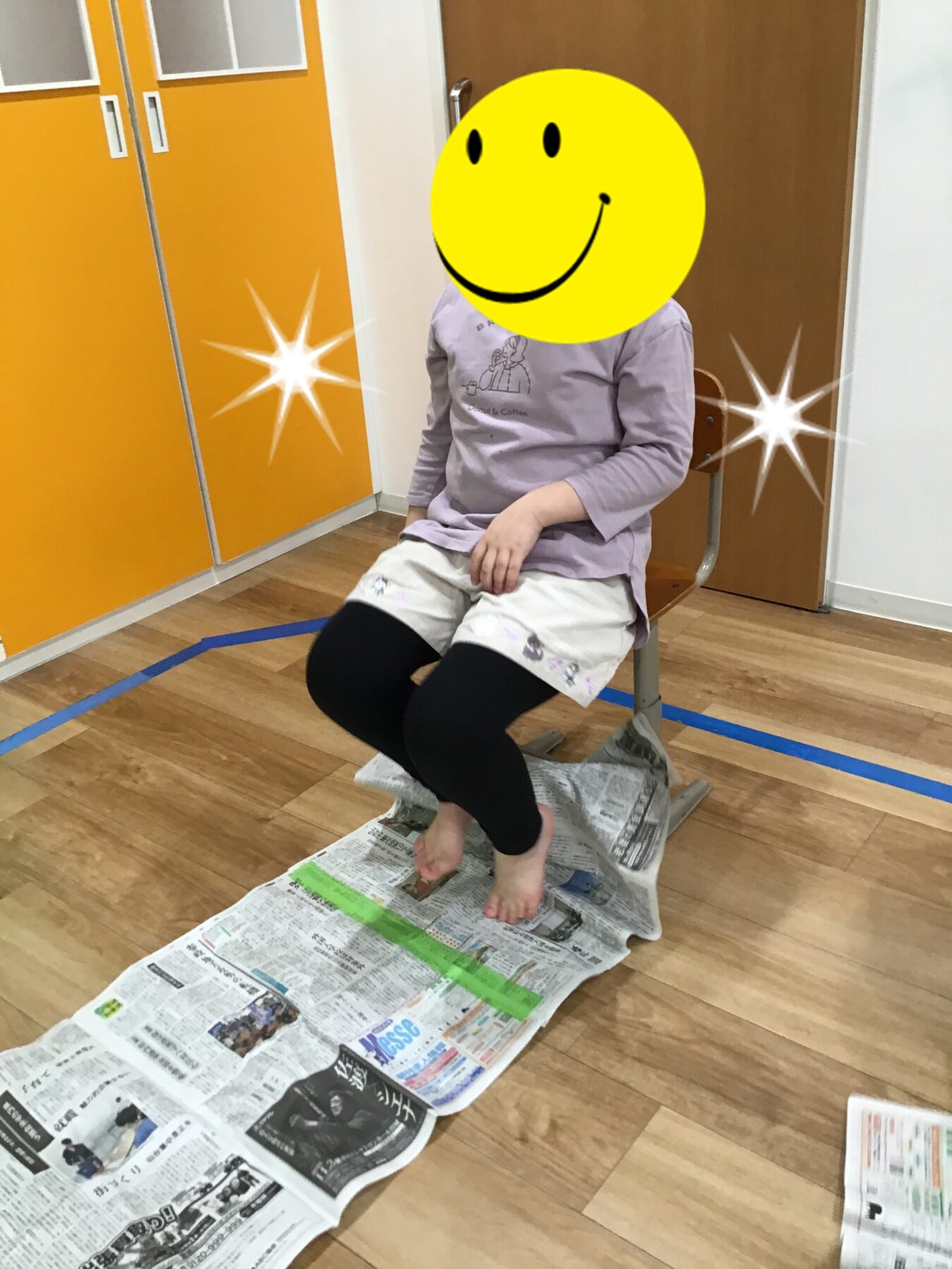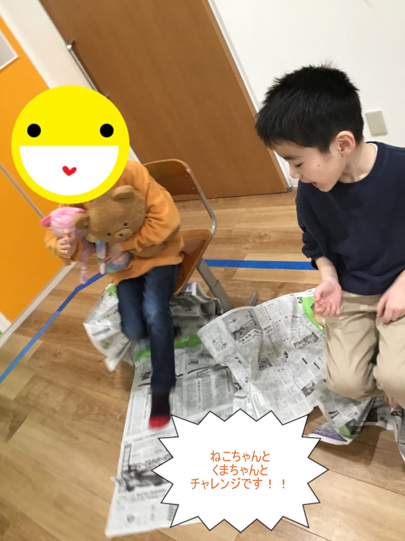 今日のメイン活動は「新聞紙たぐり寄せゲーム」です💡