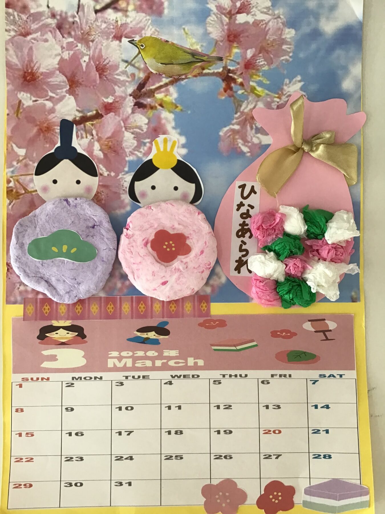 リッキーガーデン仙台南(放課後等デイサービス)ひなまつりカレンダー制作🎎🍡🌸