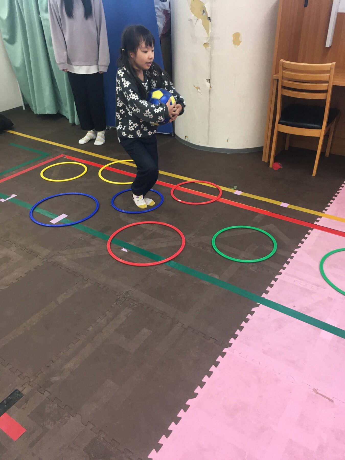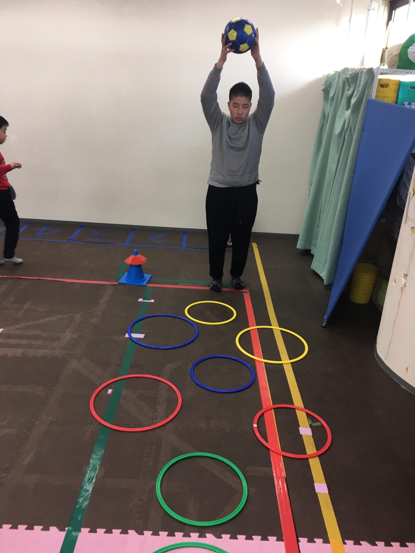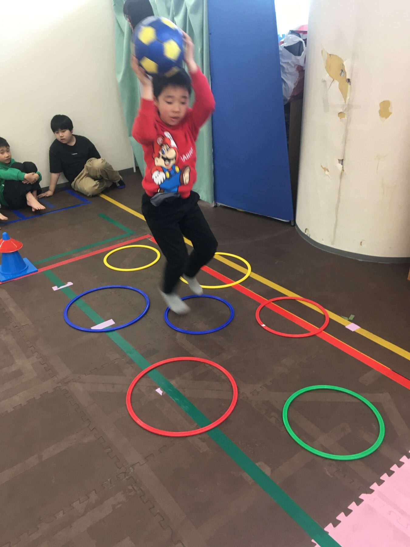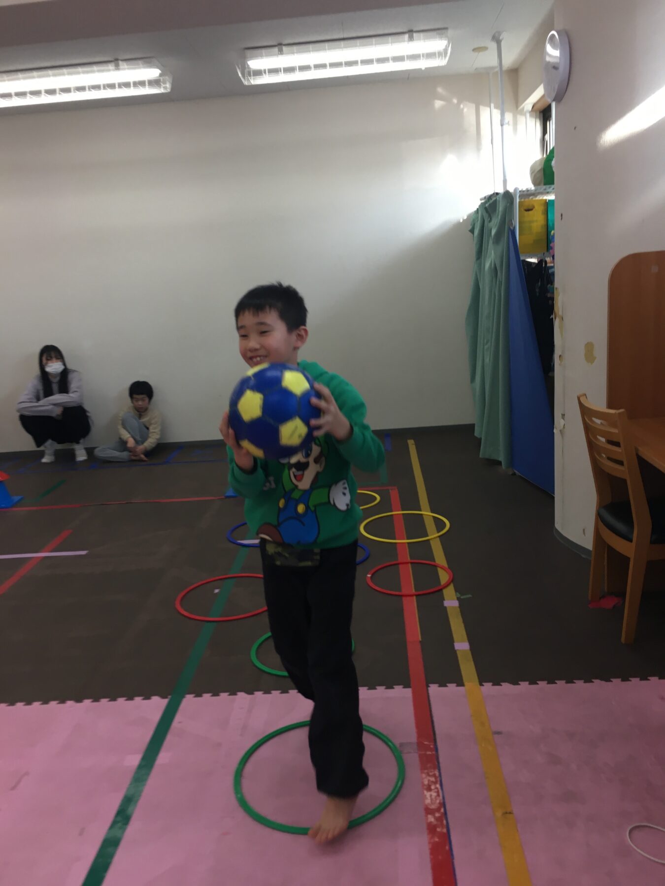 本日は週に1度の定番活動【体幹・サッカーボール運動⚽】を行いました😊