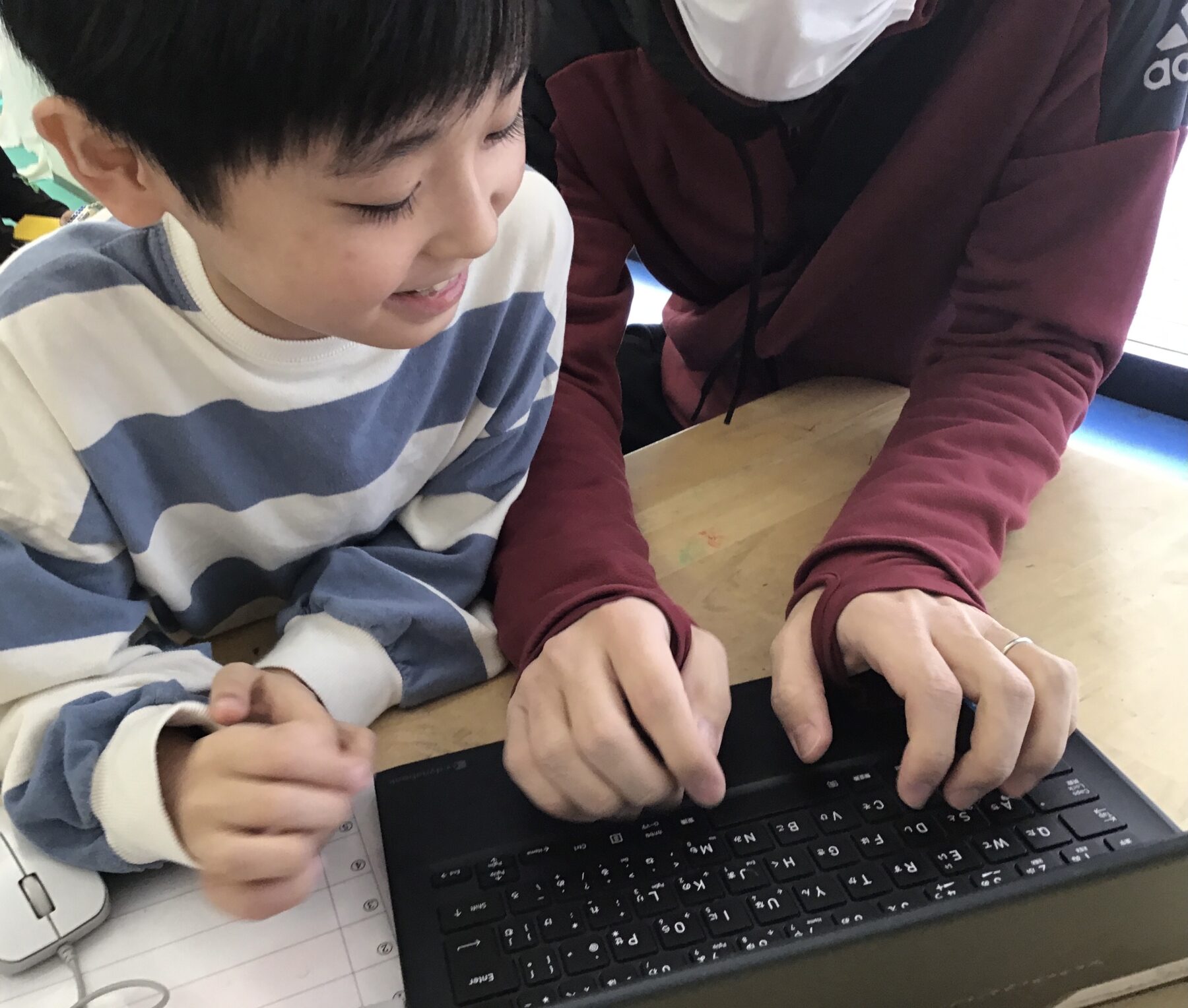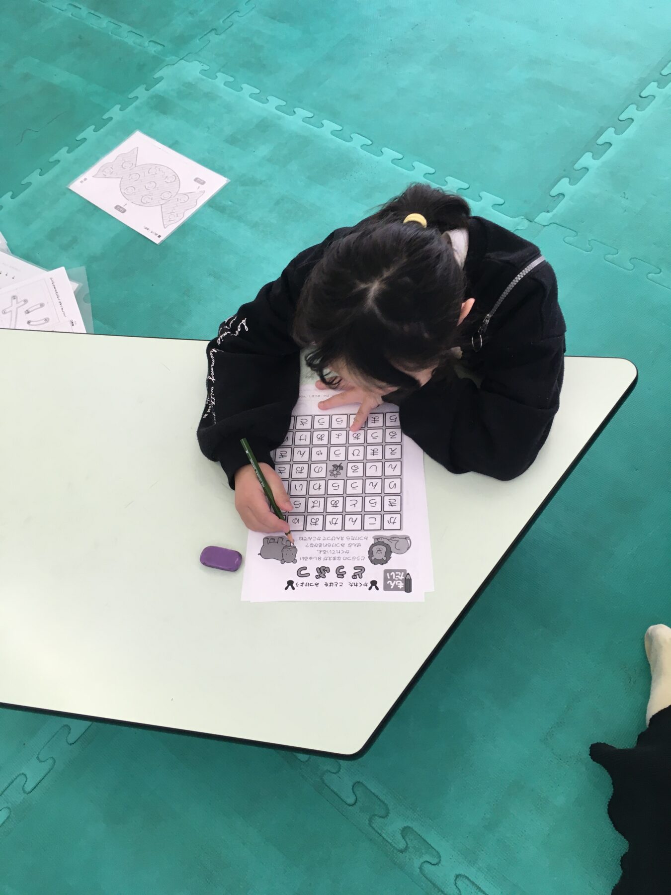 宿題に取り組むお友達、リッキーの課題に取り組むお友達。