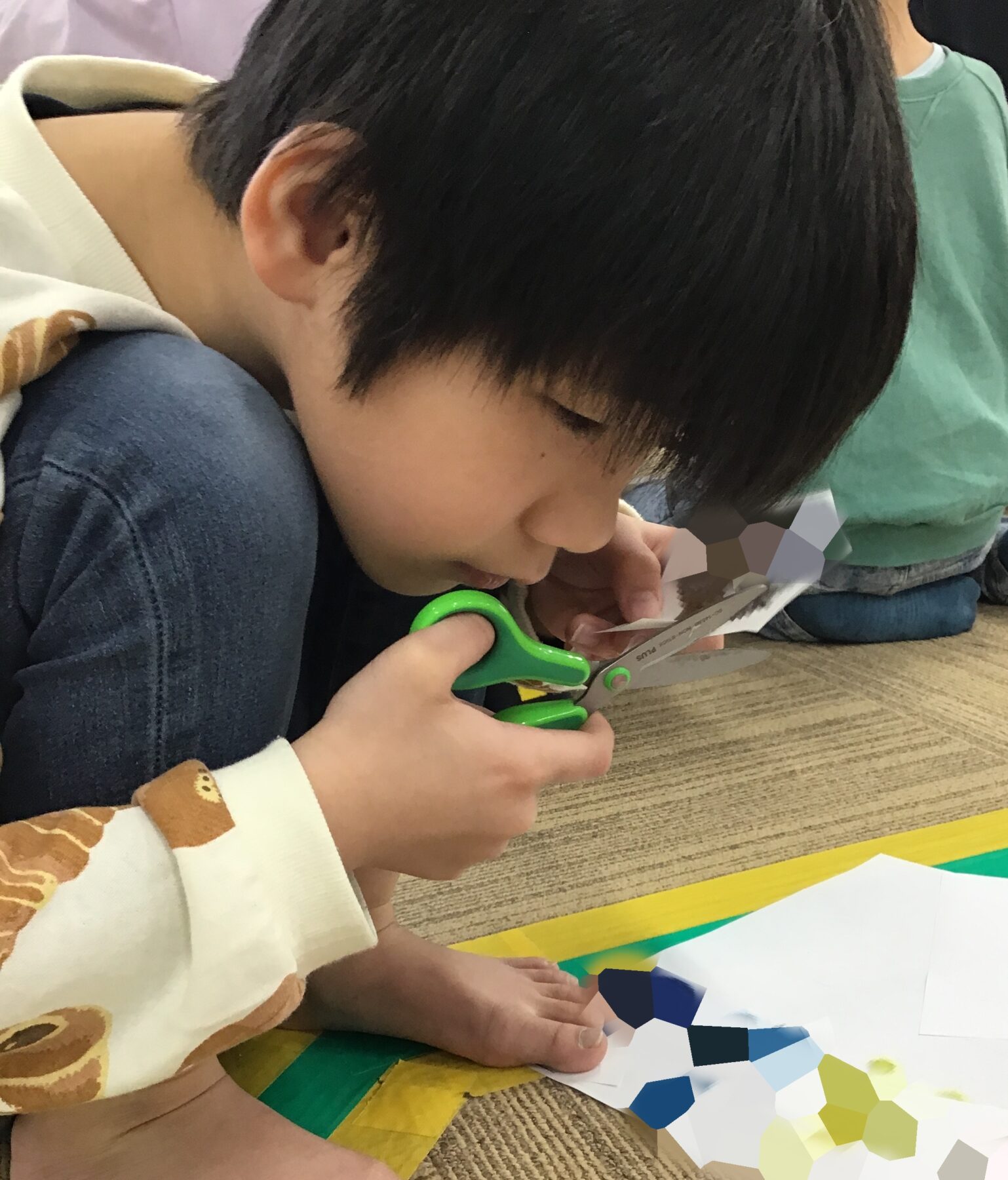 色鉛筆で色を塗ったり、イラストを描いたり、中には好きなキャラクターのイラストを貼るお友だちも。