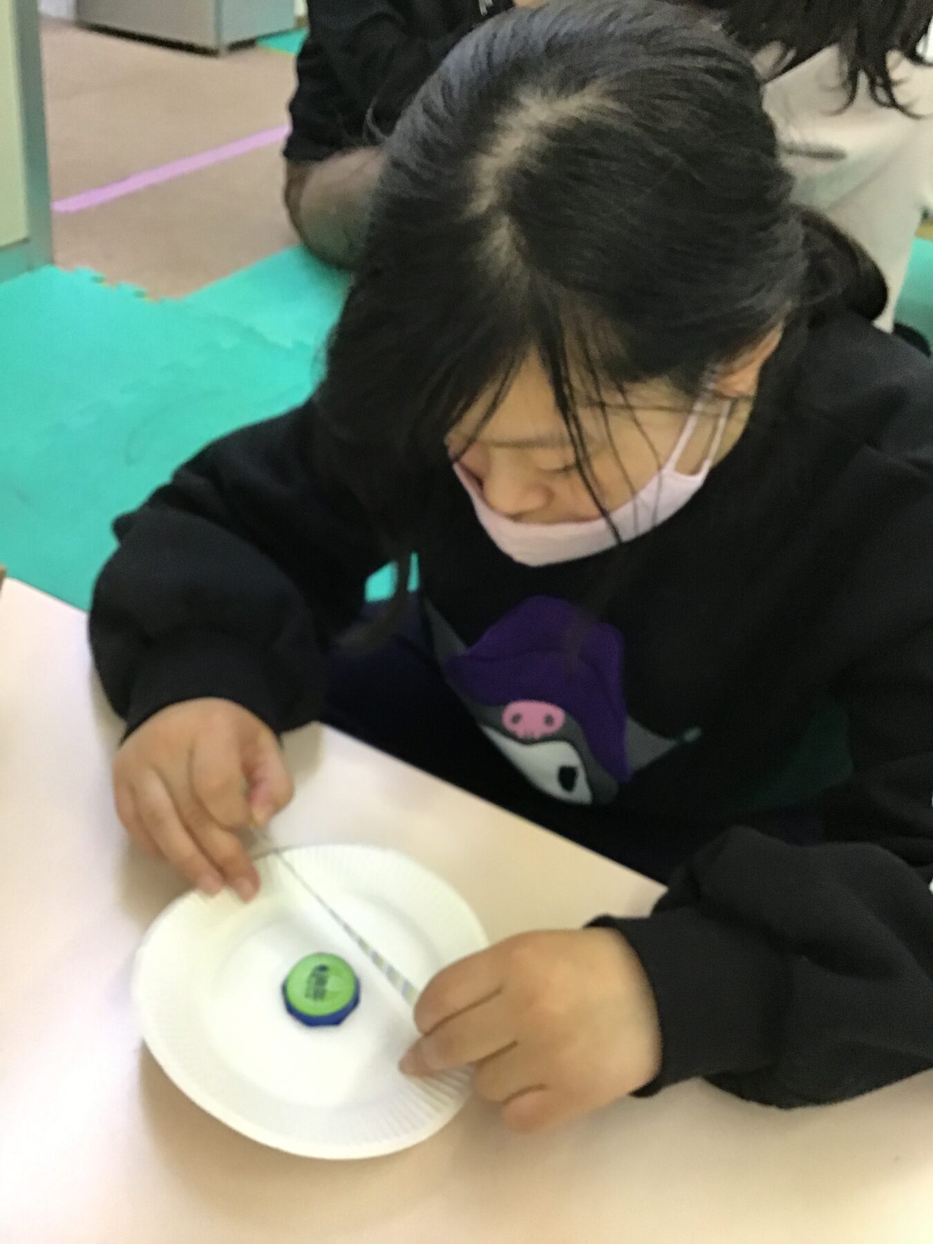 手先の巧緻性の向上や、デザインを考える創造性、駒を回して遊ぶ事で指先の運動などを目的とした活動です。