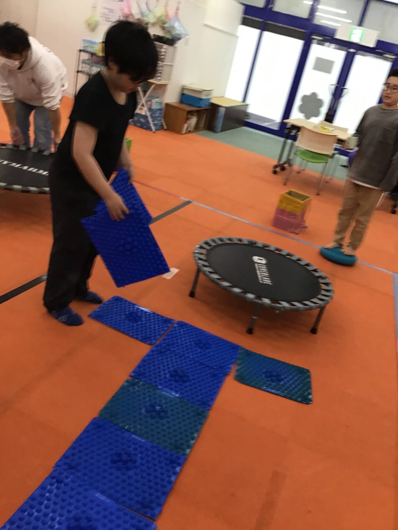 マットはどこに置こうかな?トランポリンはどこに置こうかな?