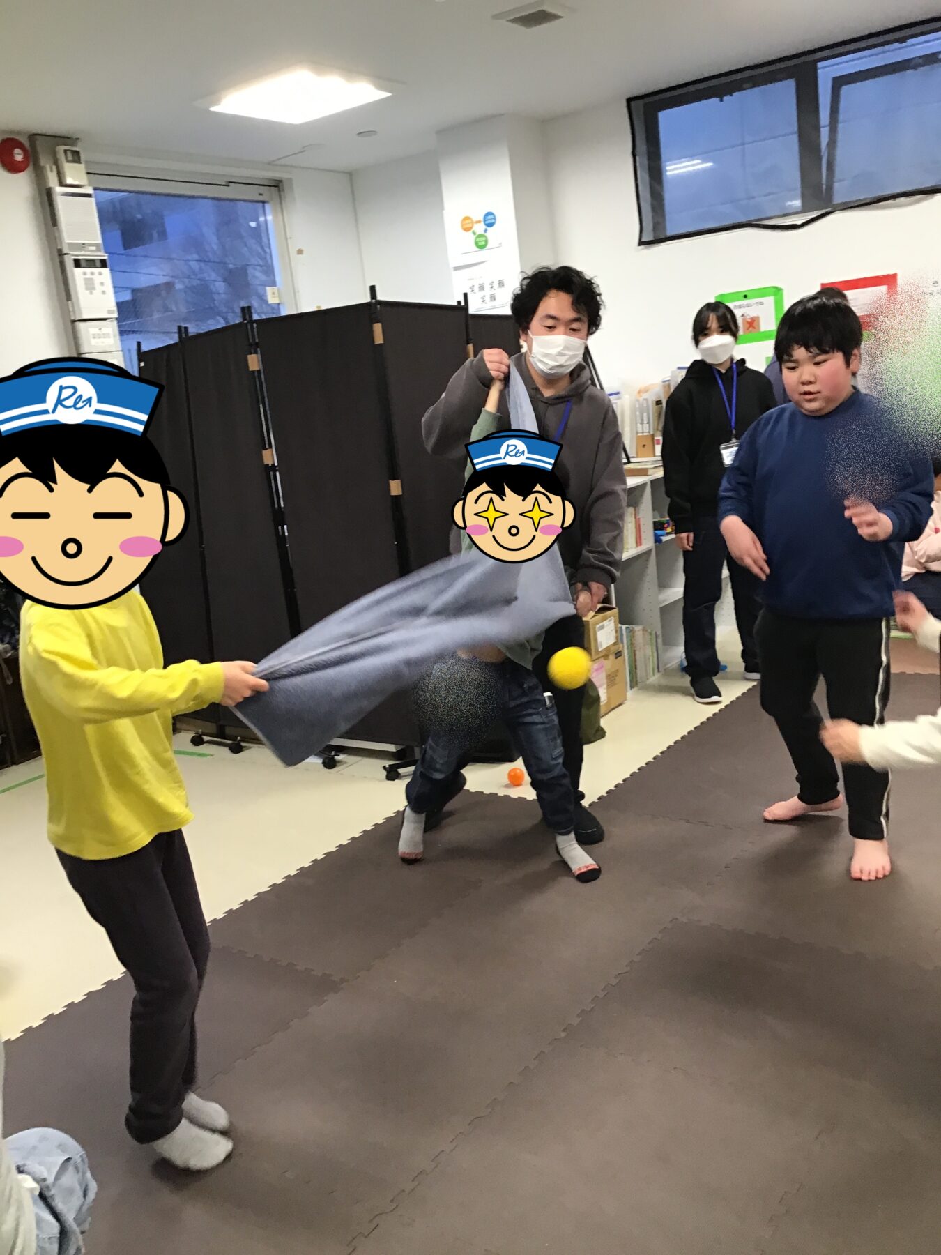 ▼活動「タオルでボール飛ばし」