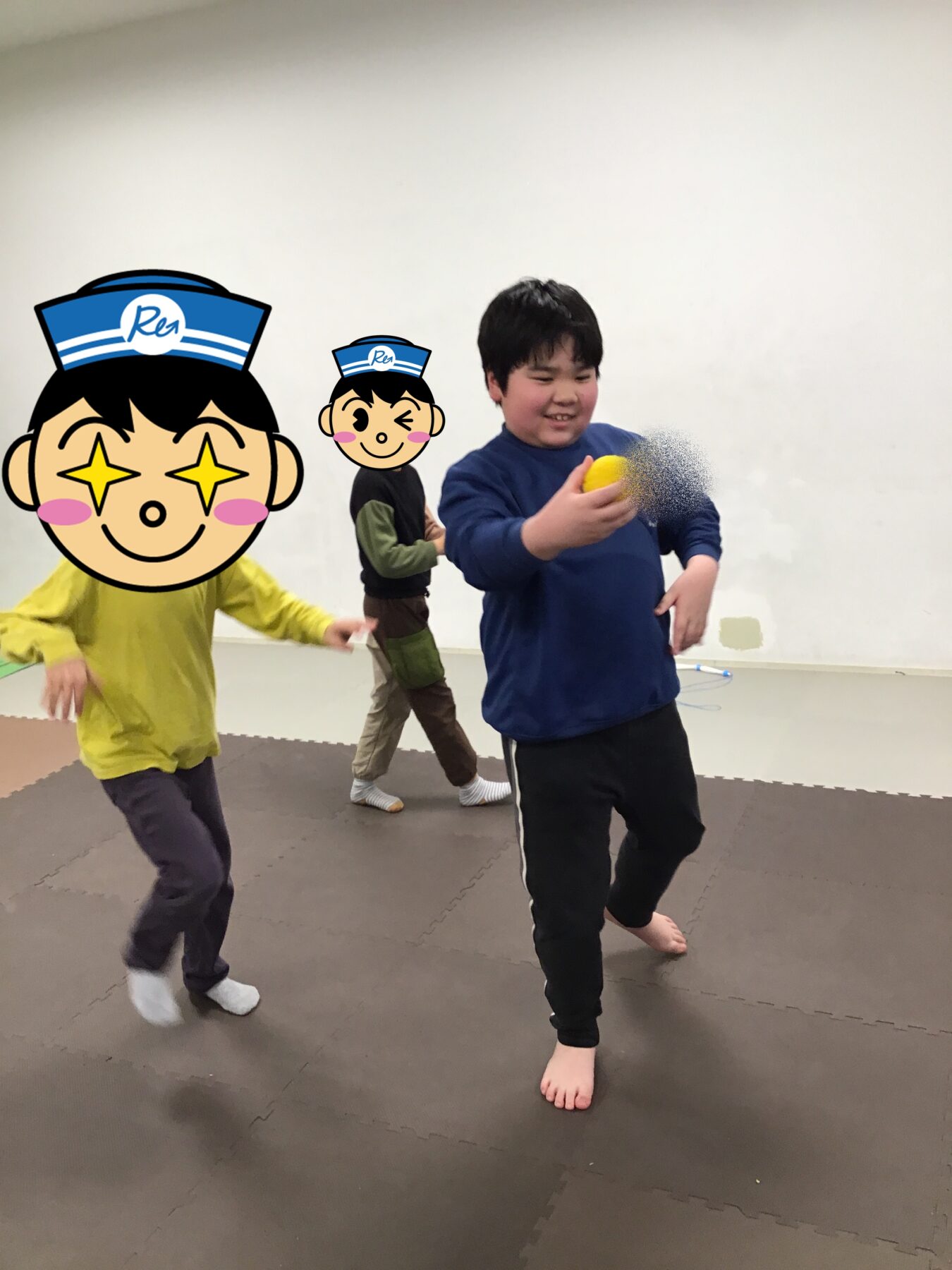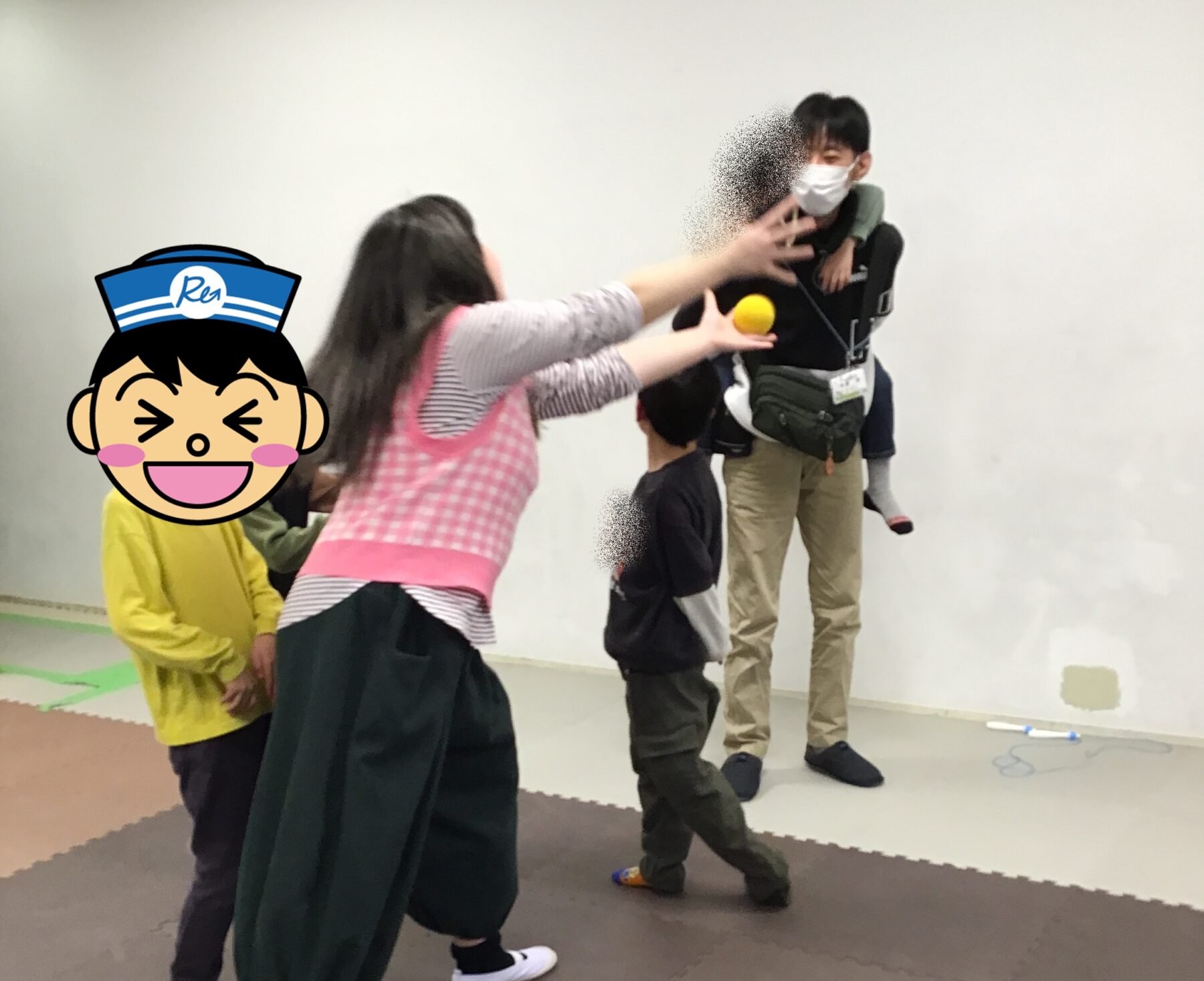 二人組で息を合わせてボールを飛ばして、それ以外のお友達がボールをキャッチする活動を行いました!