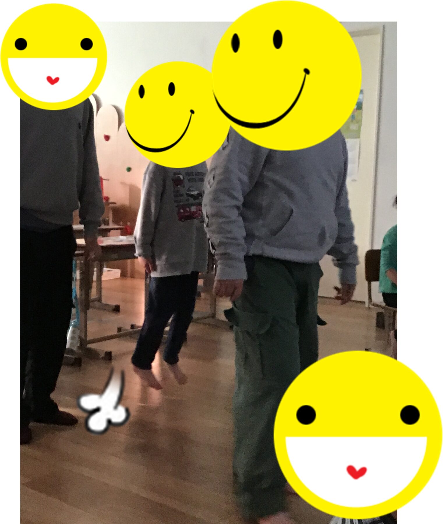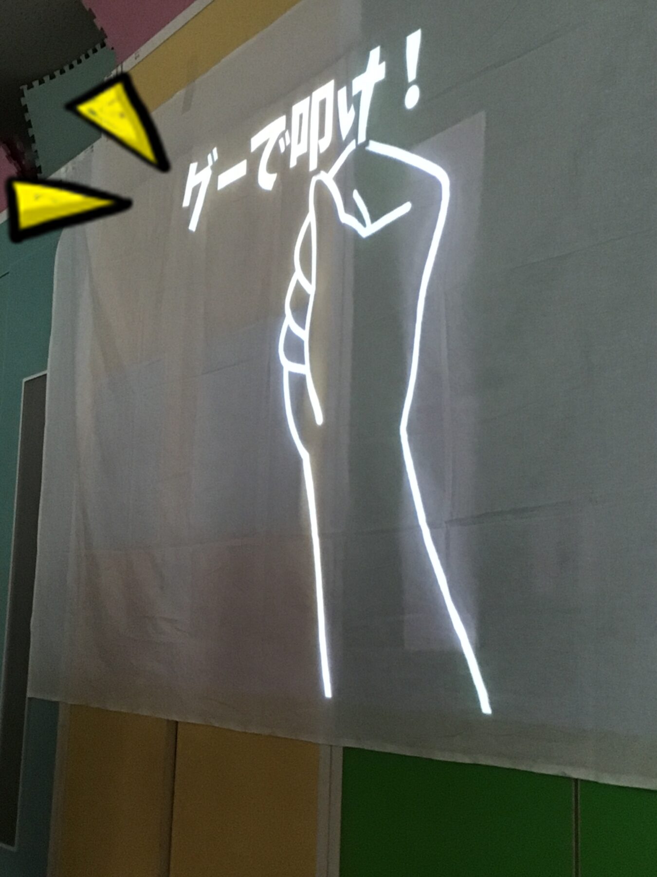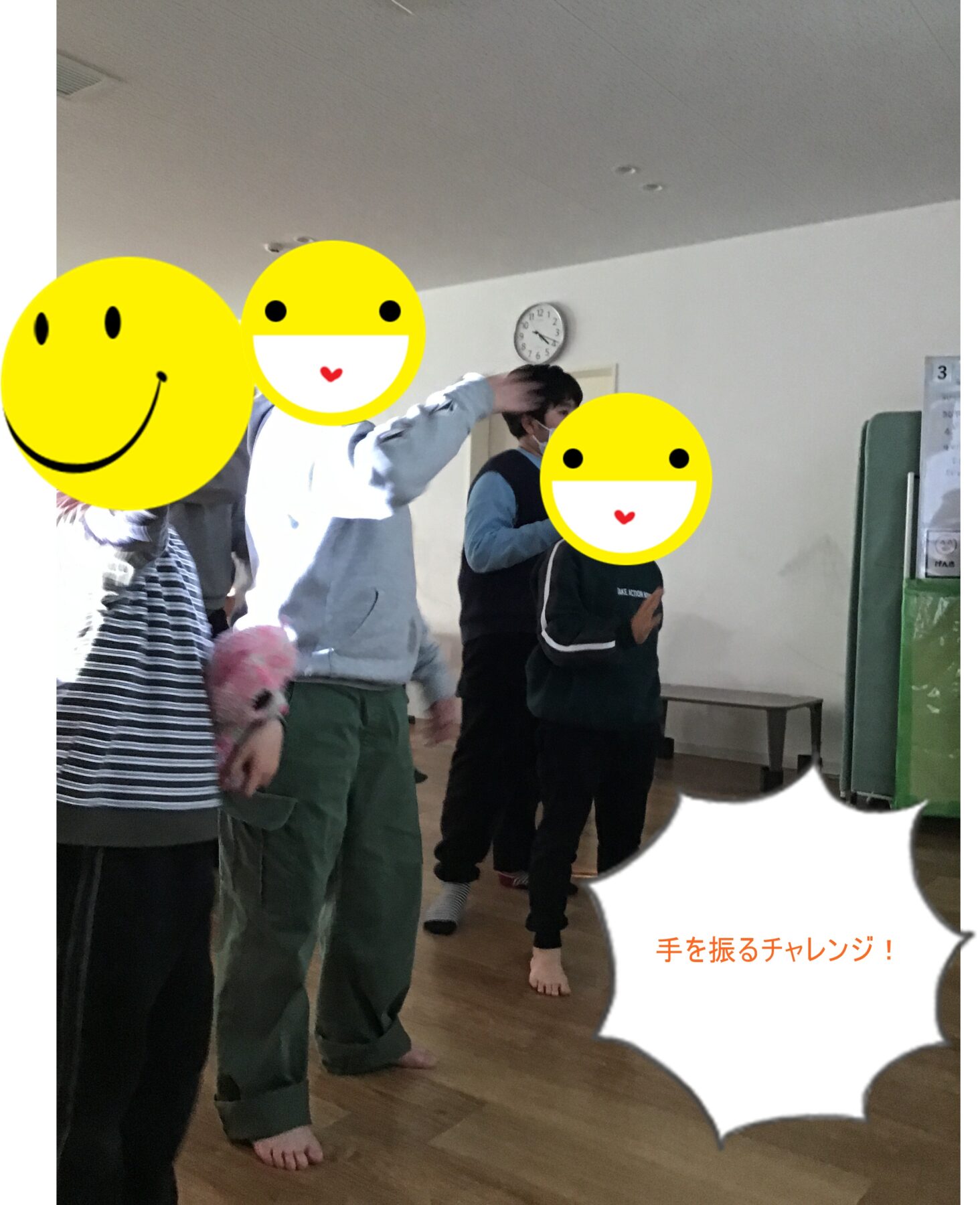 本日の活動では、正面に動画を映し、出てきた動画の真似をしていただきました!