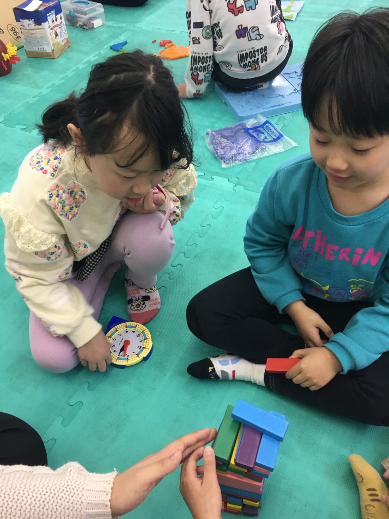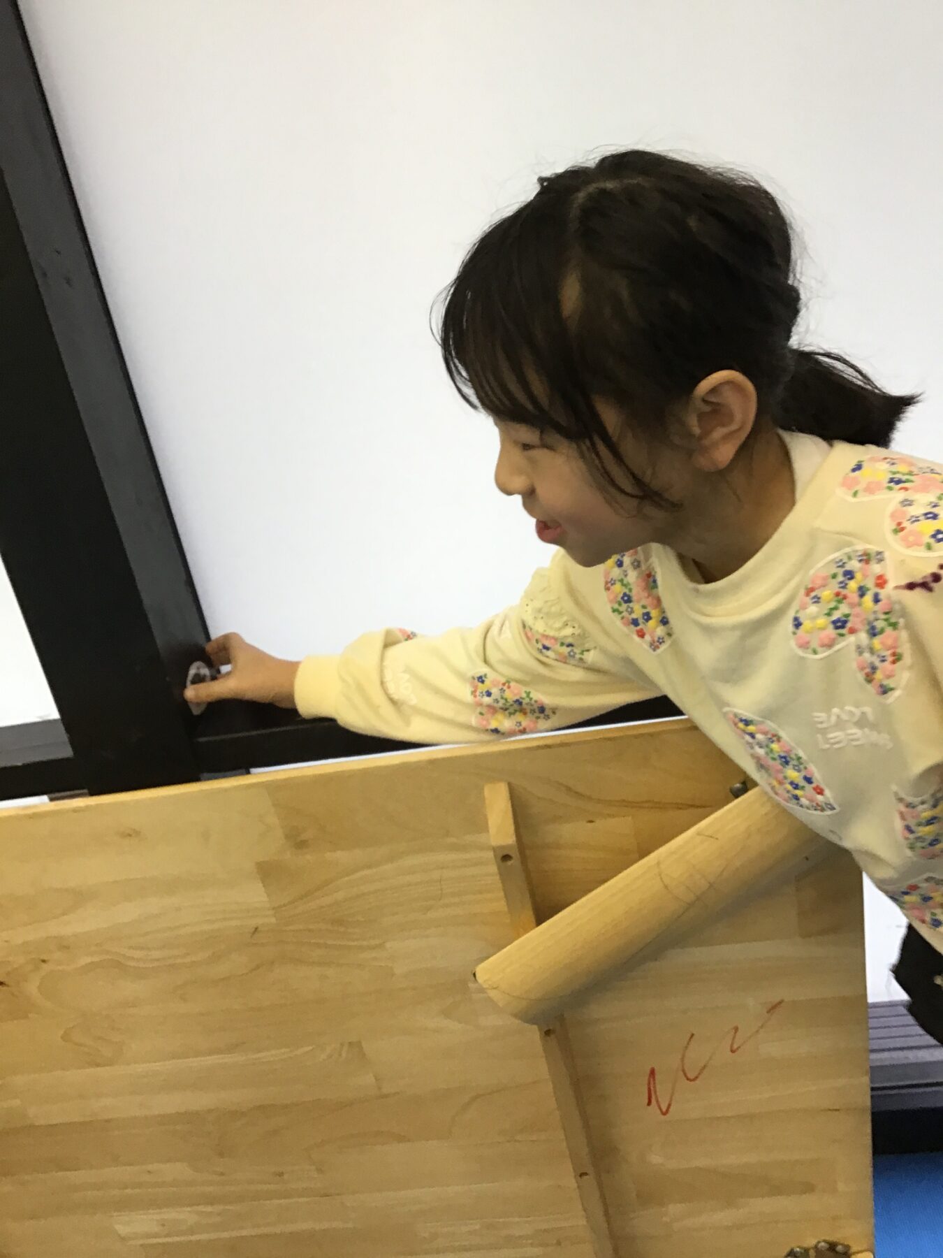 ホワイトボードの予定を見て、チャレンジタイムの準備をするお友達も多くなりました。