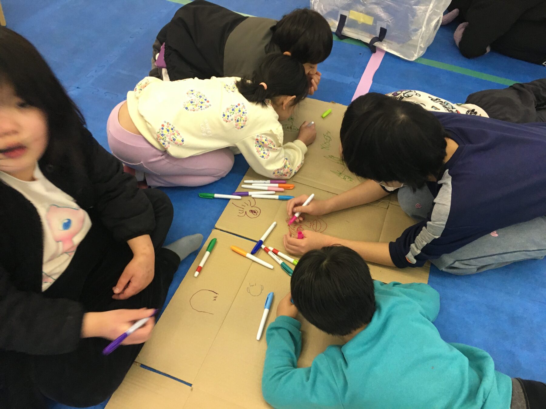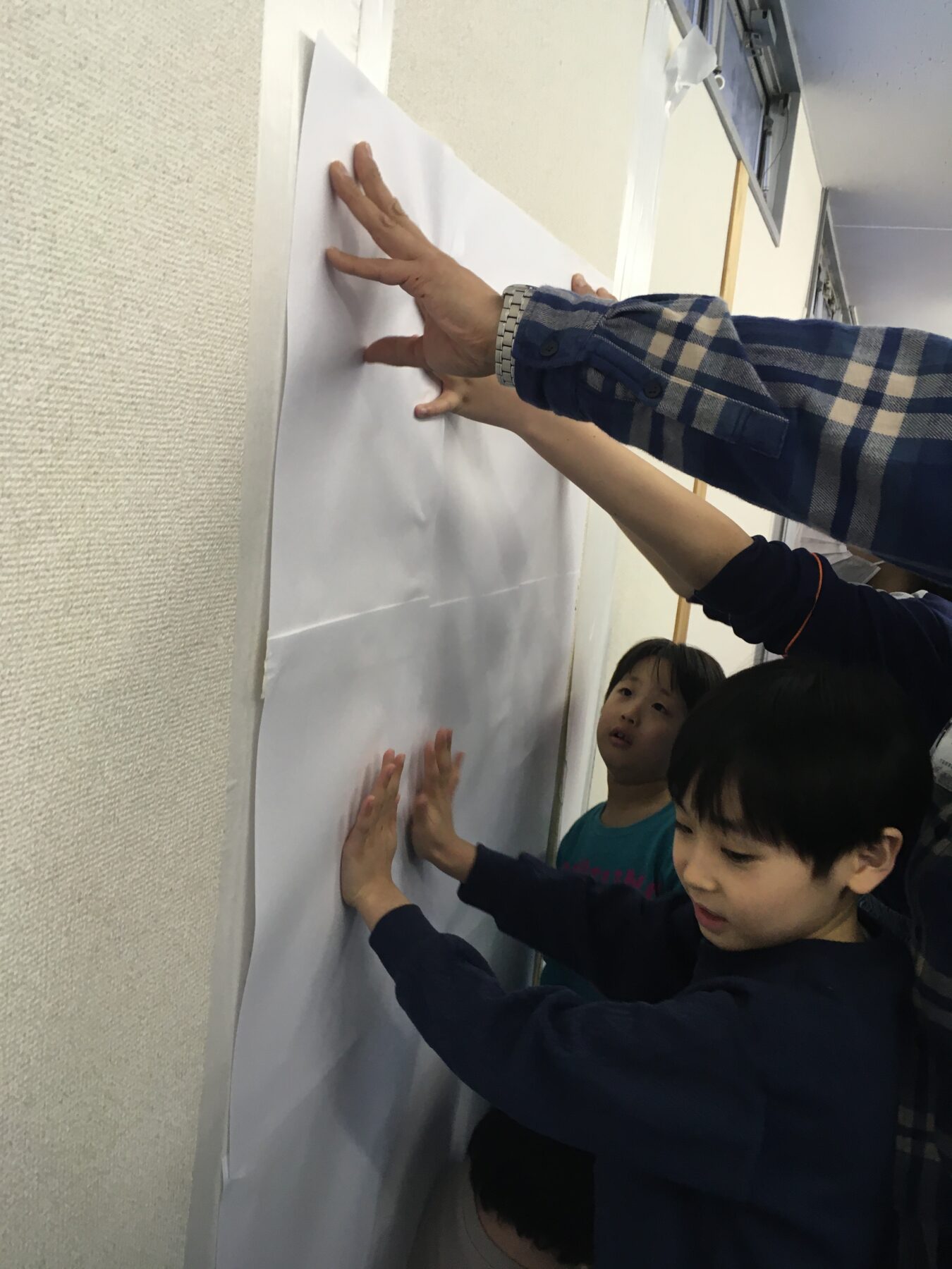 見つけたカードは、白い大きな紙にみんなで協力して飾りました。
