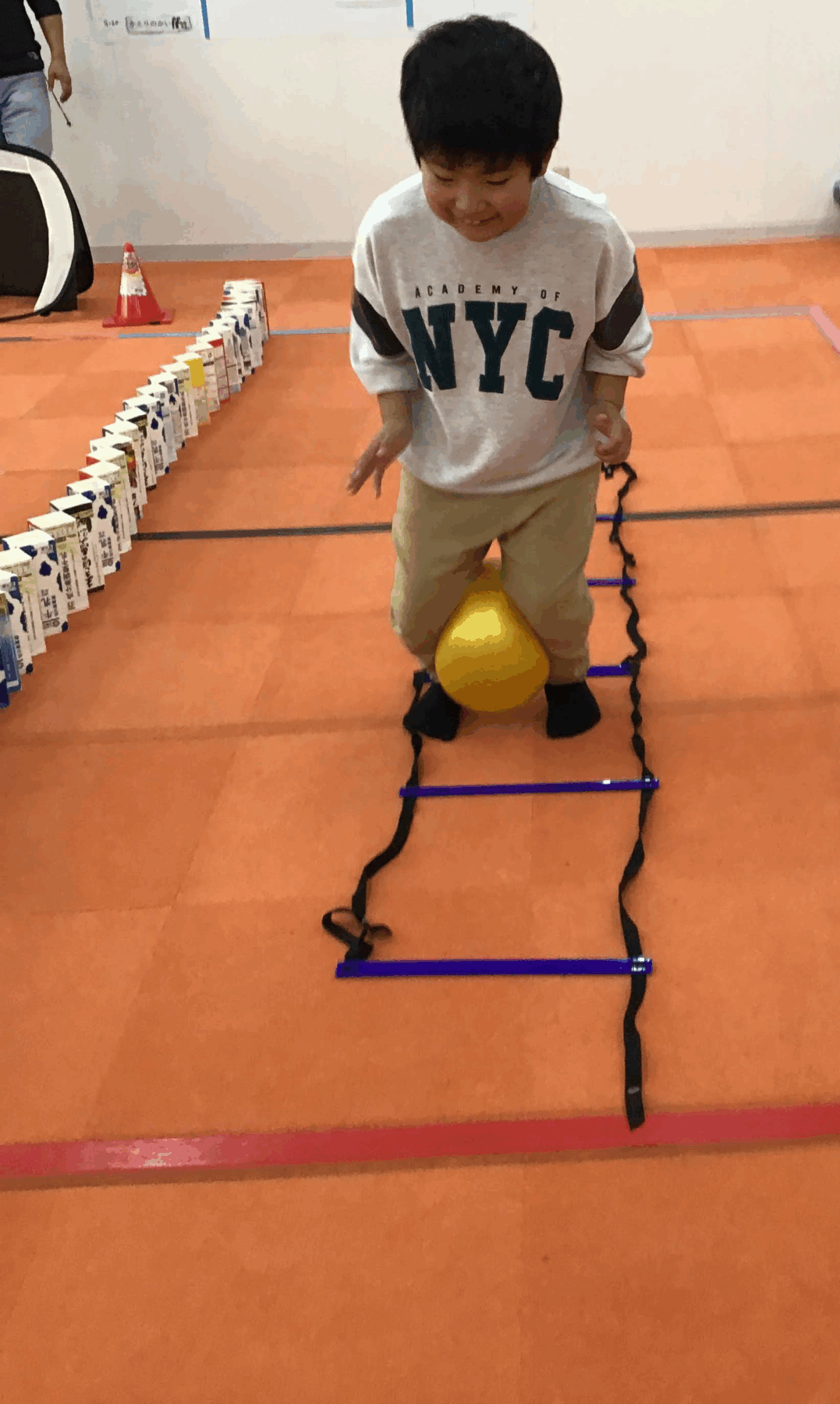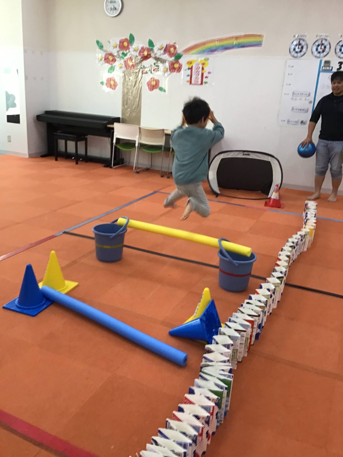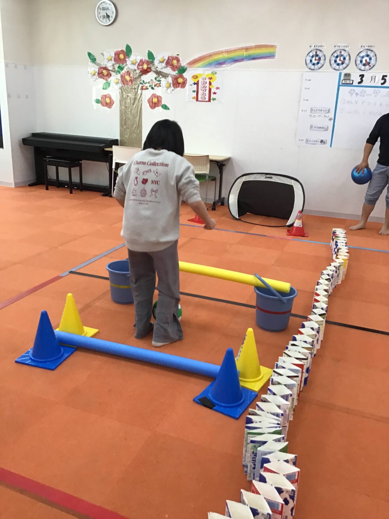 身近な素材(バケツ、カラーコーン、ラダー、スポンジ丸棒)などを使って、コースを作ってみよう!!
