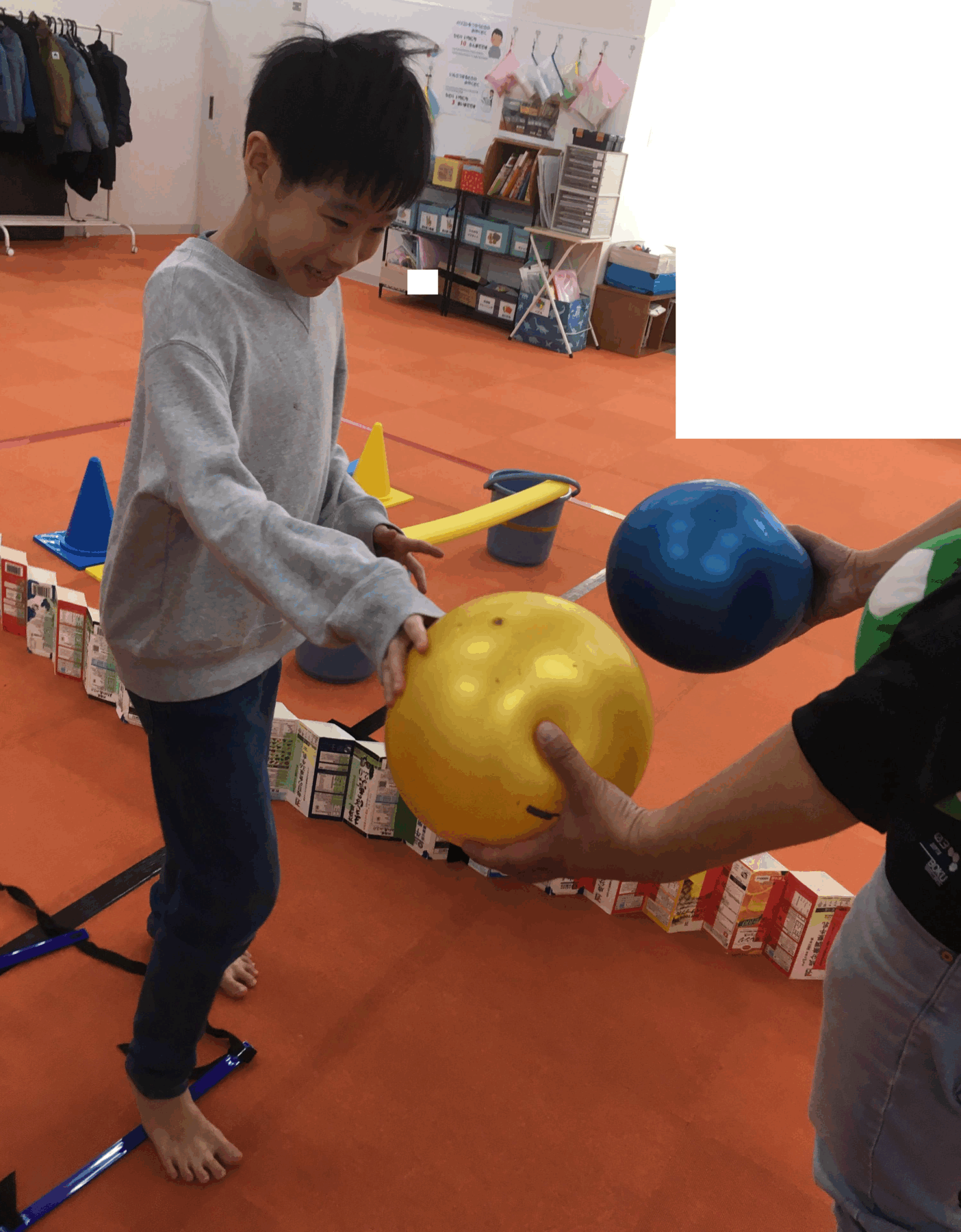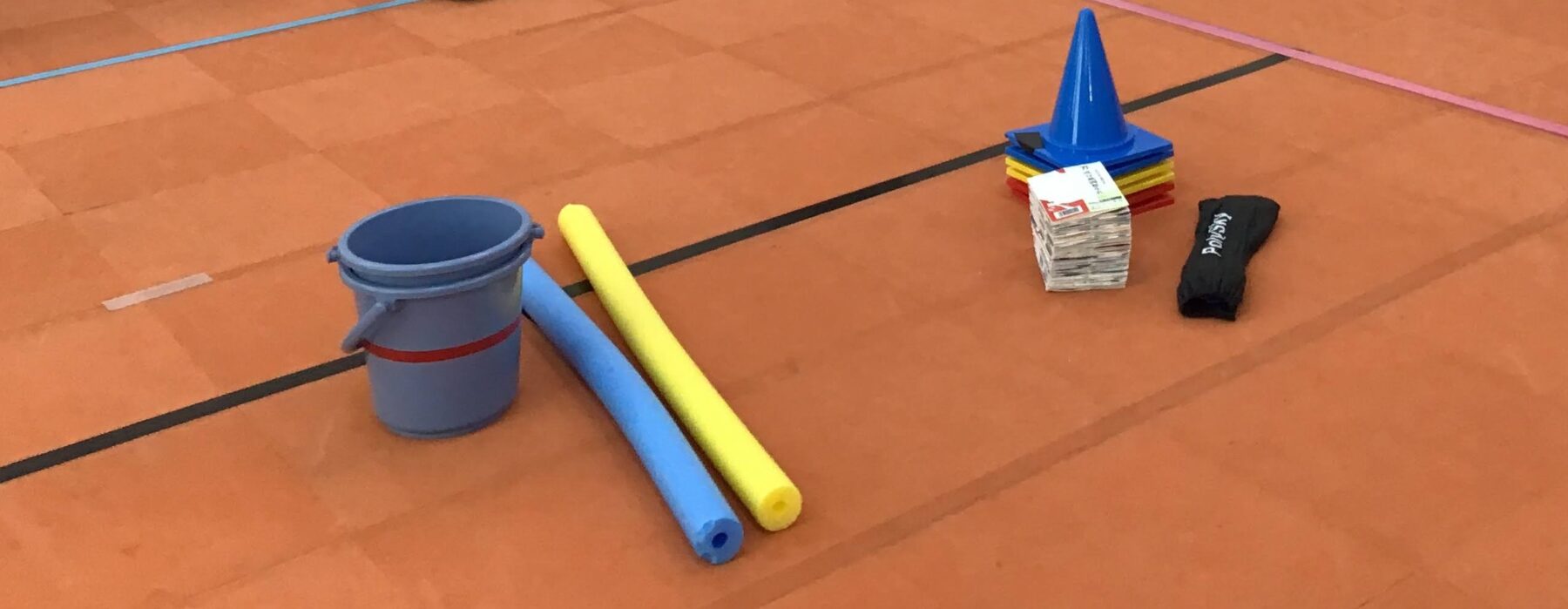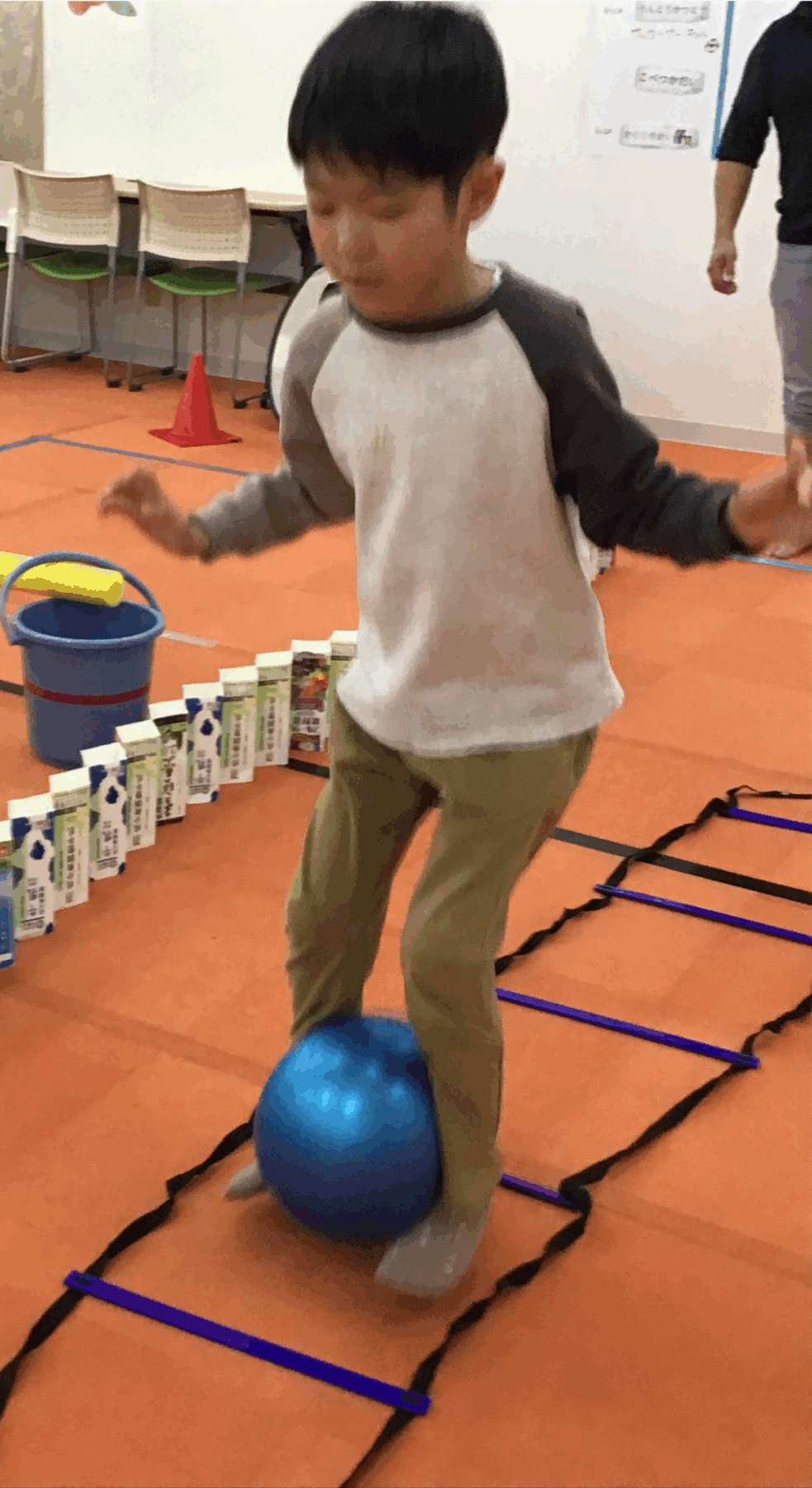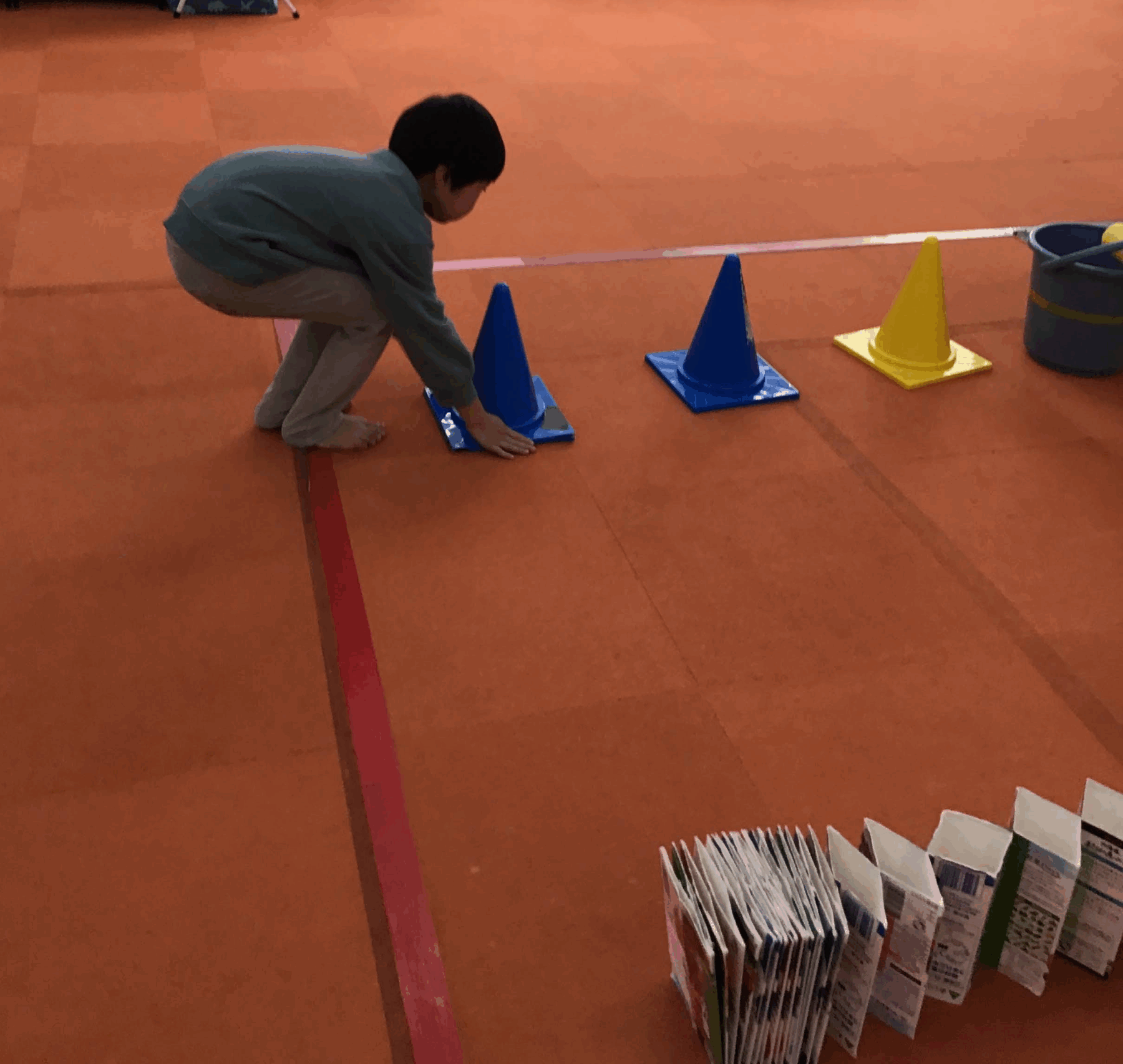 身近な素材(バケツ、カラーコーン、ラダー、スポンジ丸棒)などを使って、コースを作ってみよう!!