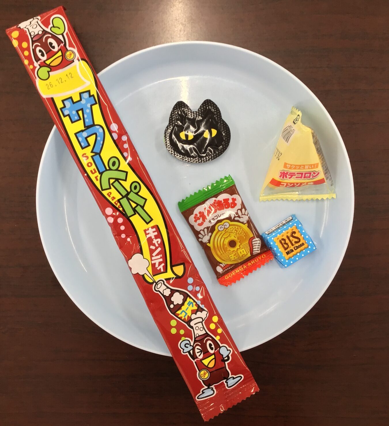 サワーペーパー・ポテコロン・にゃんとかしてケロ・チロルチョコ・ごえんがあるよチョコレート