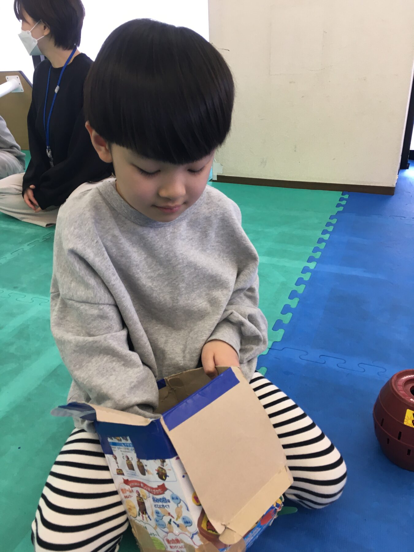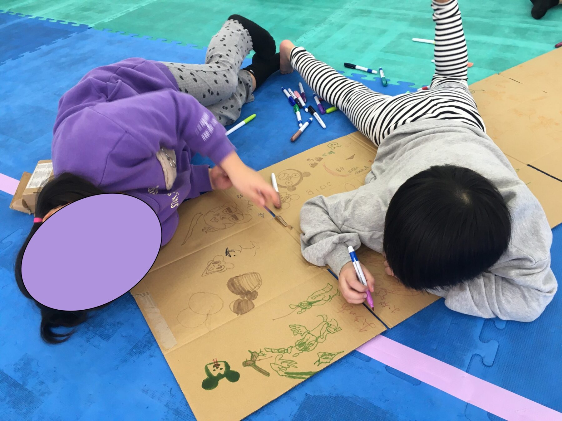 ダンボールに自由にお絵描きをする姿もあり、思い思いの遊びを楽しんでいました。