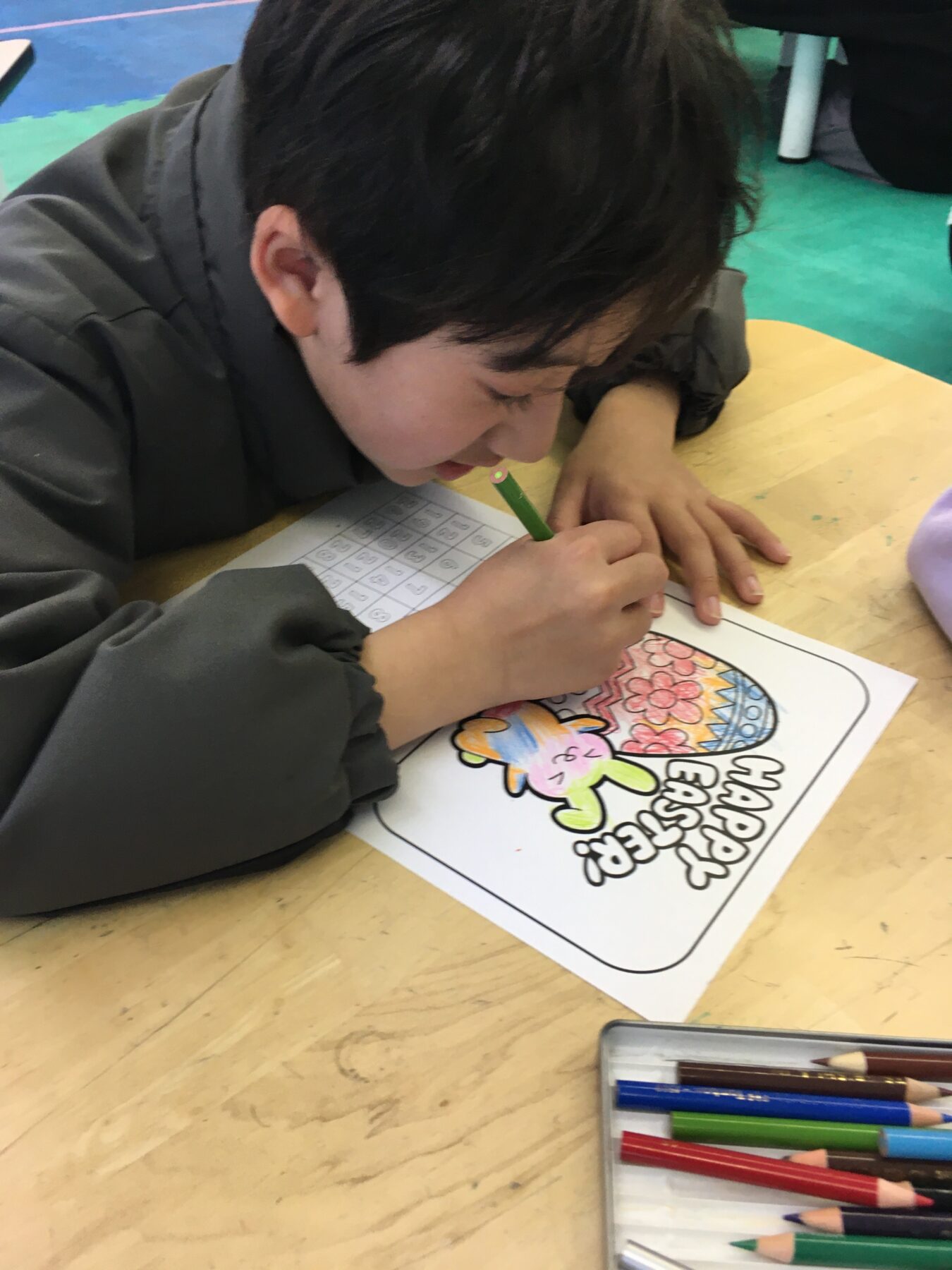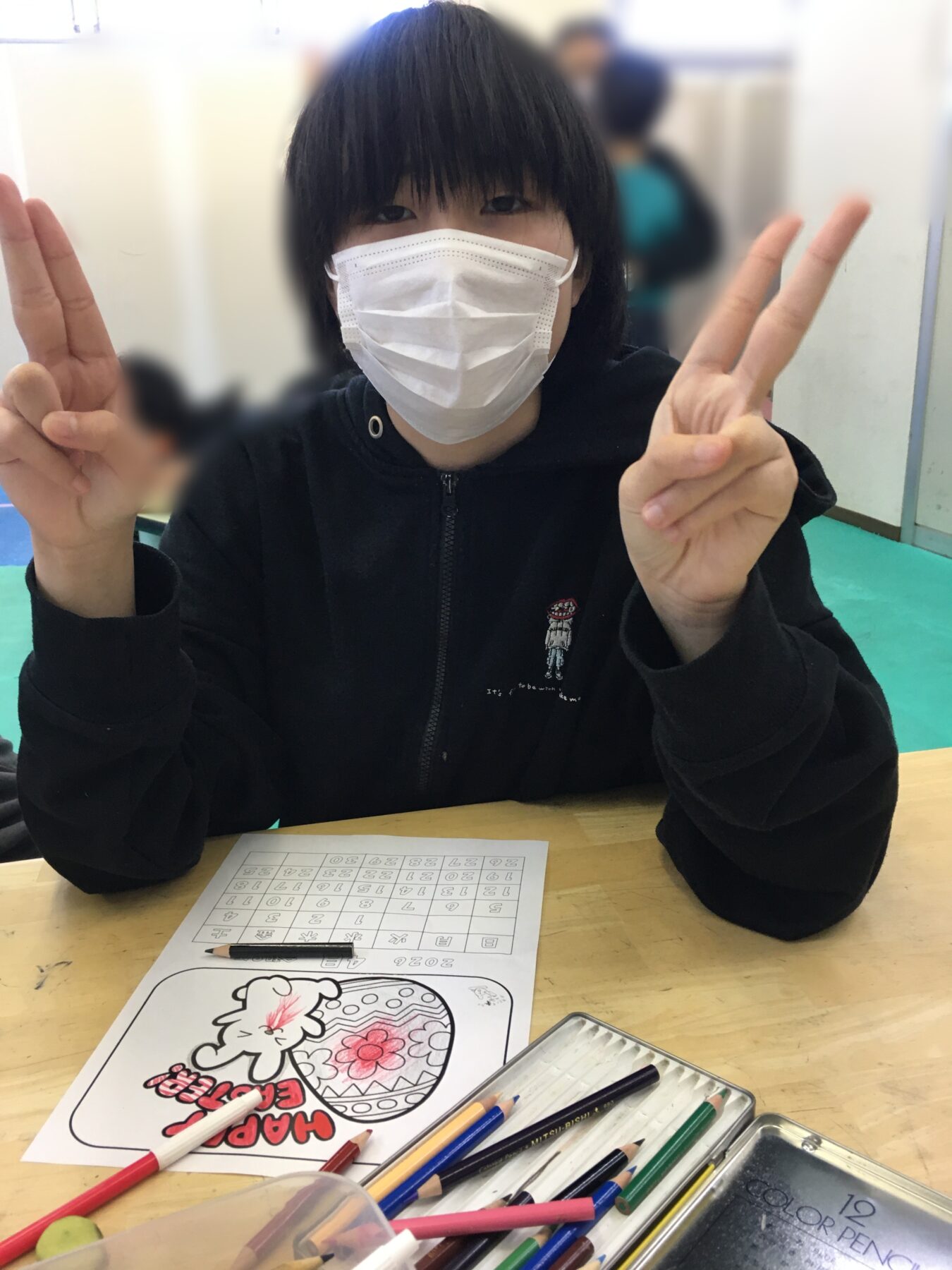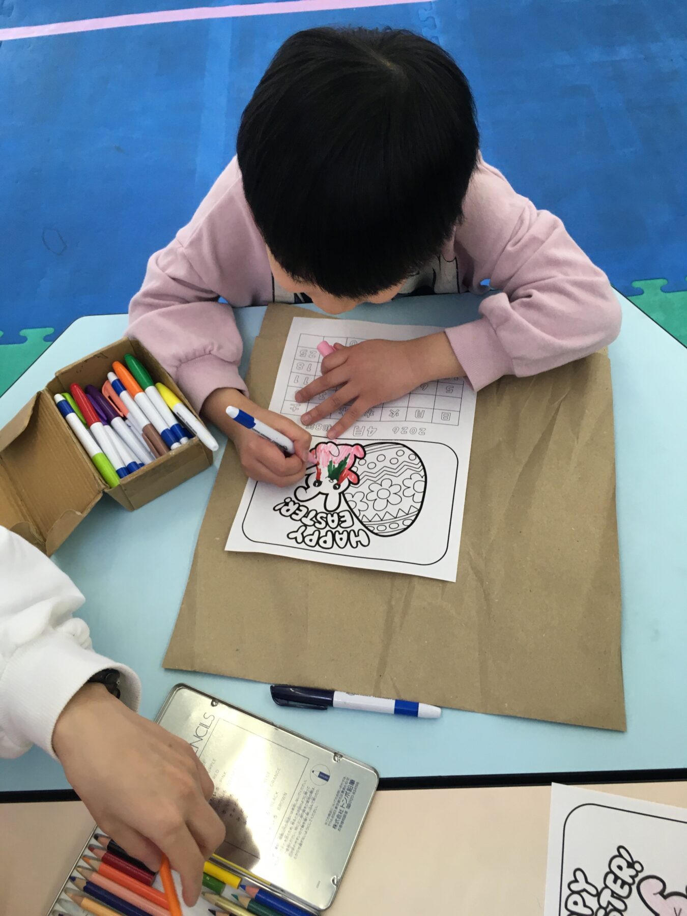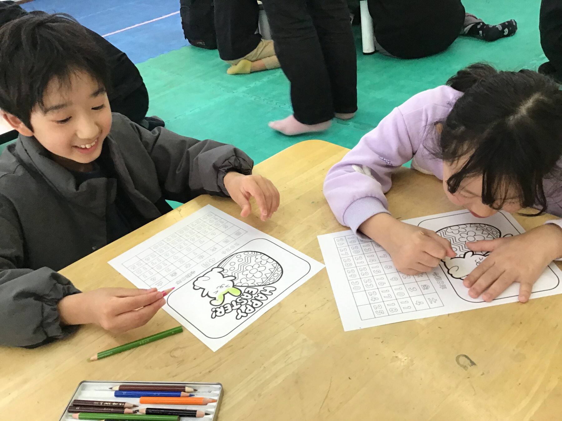 テーマは“イースター”ということで、かわいいタマゴやうさぎの塗り絵に挑戦しました🐰🥚