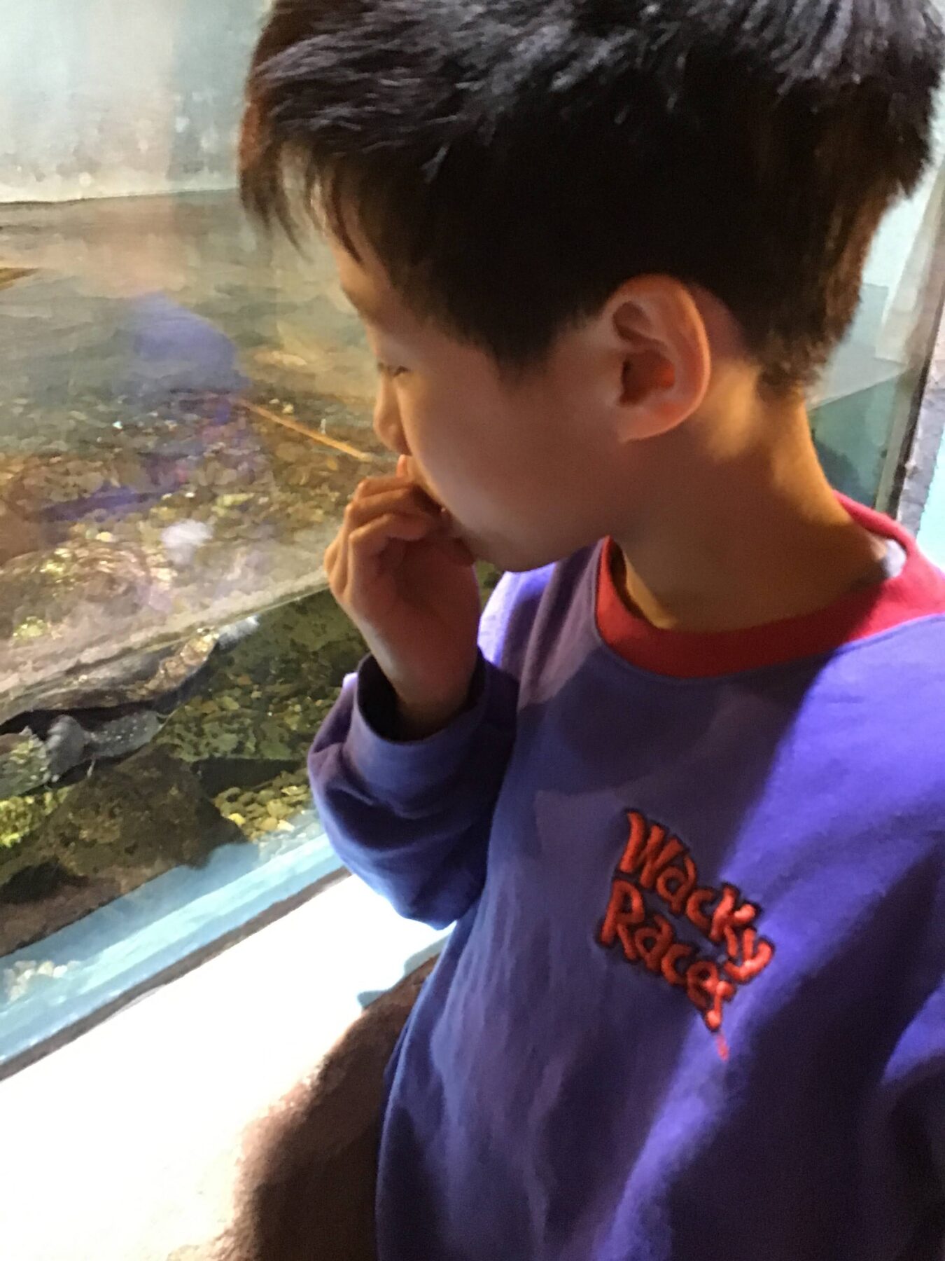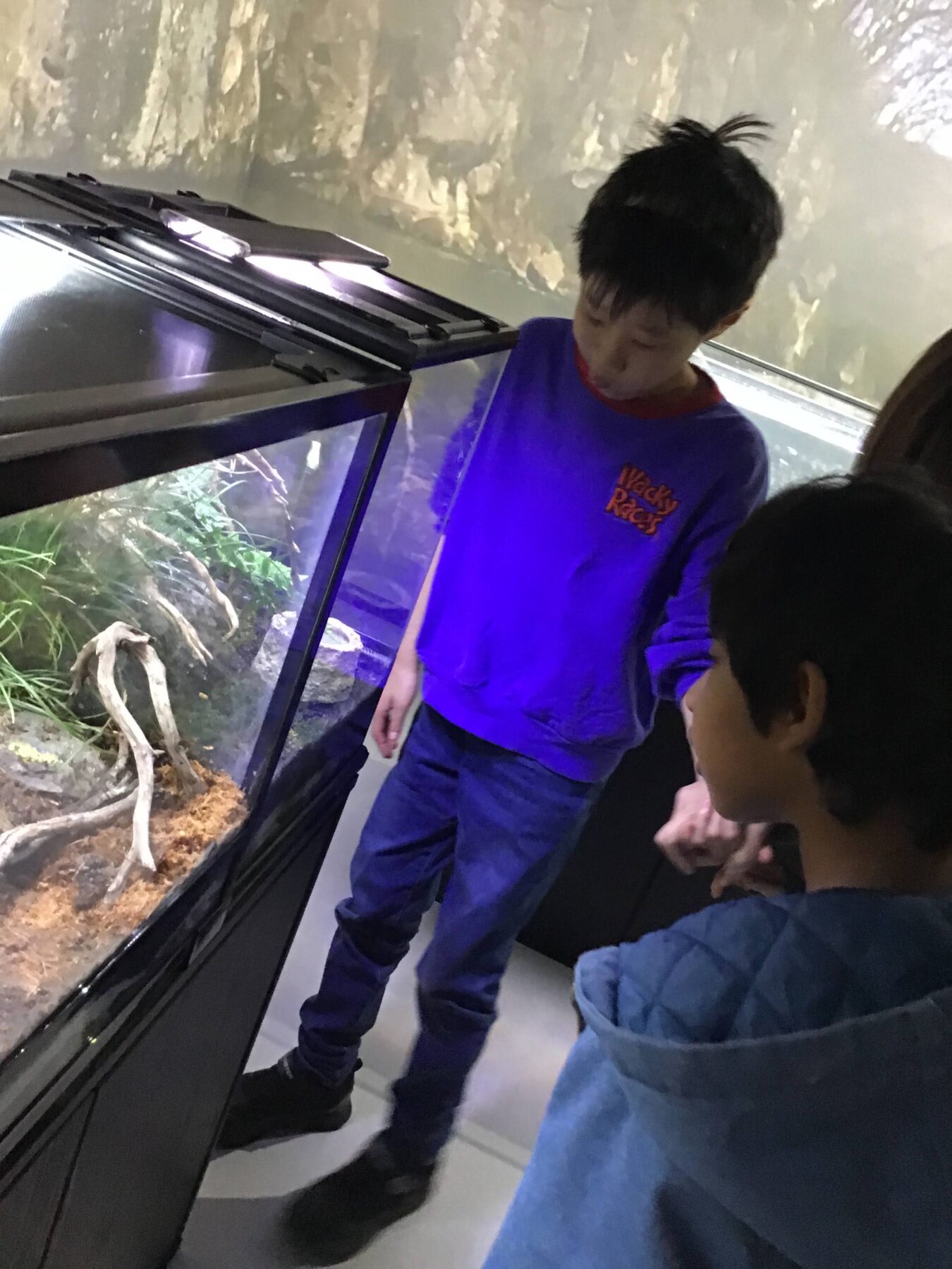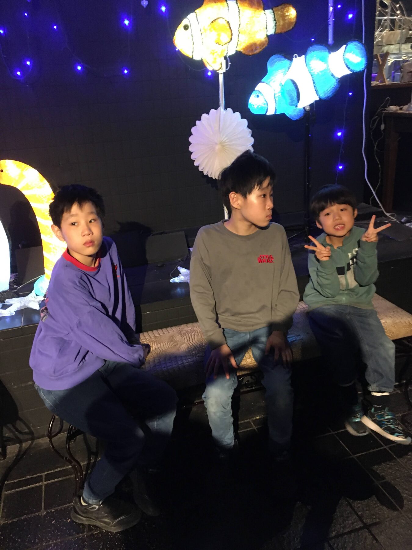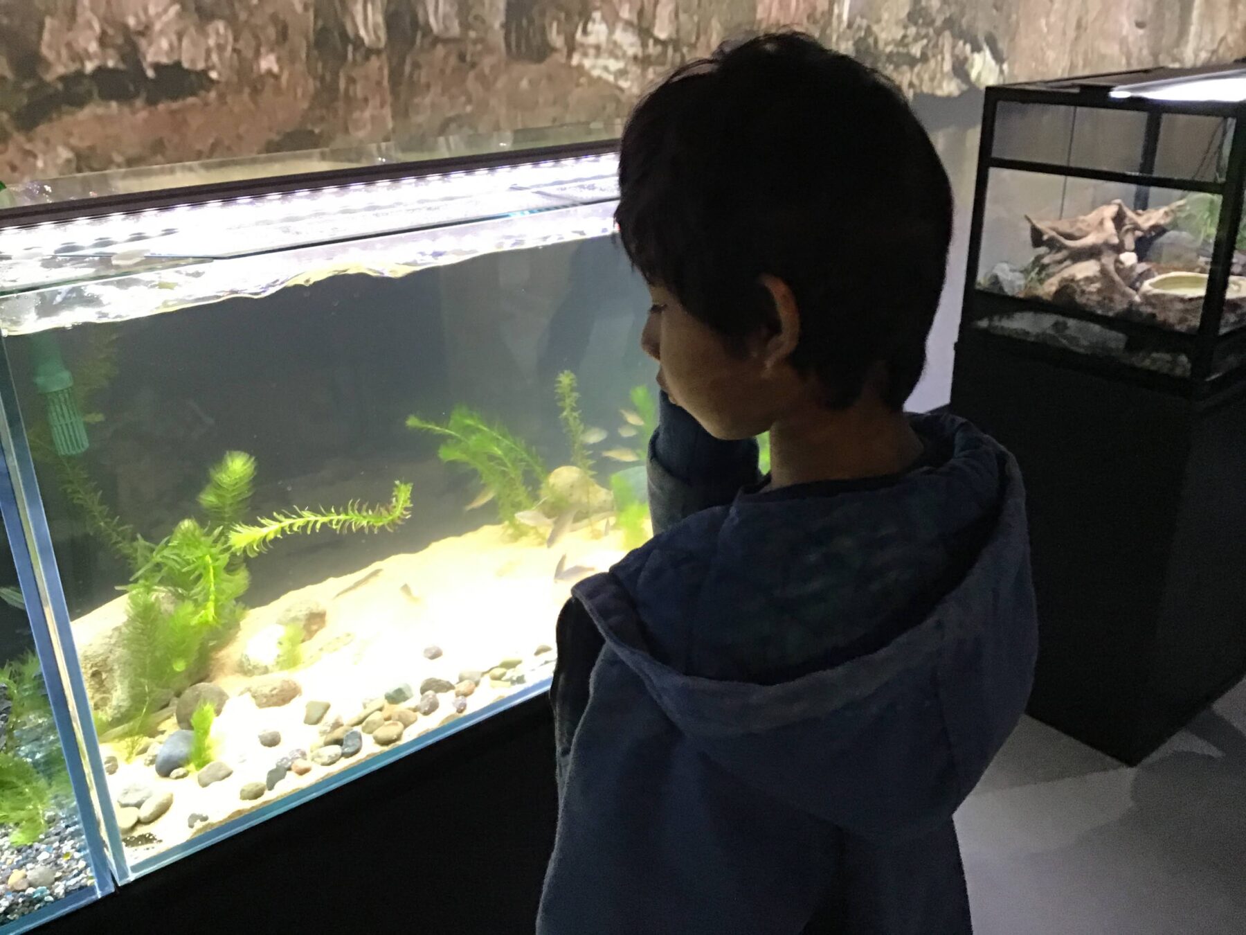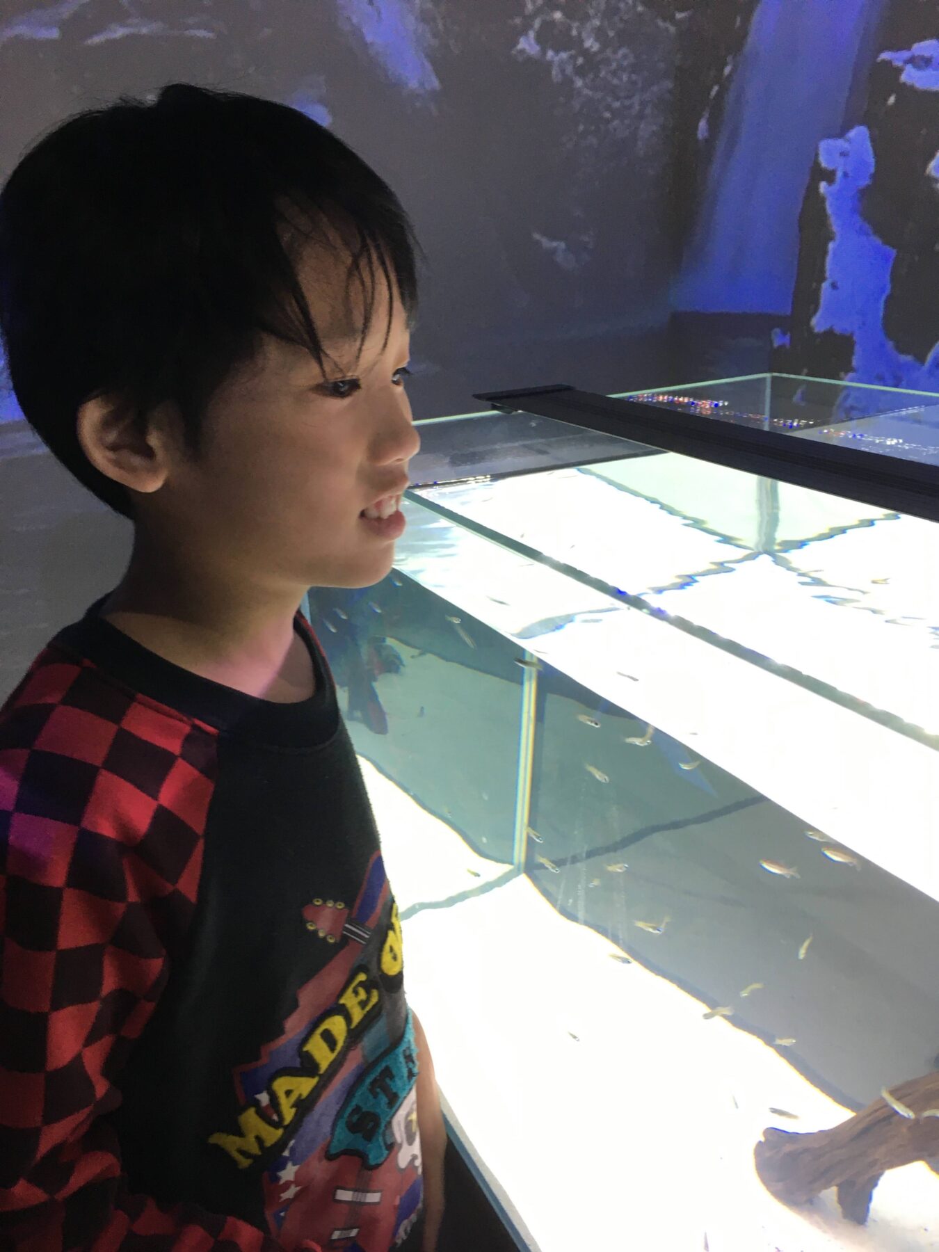 水槽の中にいる、魚たちに興味津々のお子さんたちでした👀